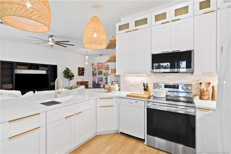 Step in??id? this b??ut??full?? u??d?ted CBS home in the de??ir?ble gated community of Mariner Village. With impressive upgrades, this TURNKEY 3 bed 2 bath home offers peace of mind and stylish living. Upgrades include a brand new roof, A/C, and LVP flooring (All 2025). The heart of the home is the FULLY remodeled 2024 kitchen featuring quartz countertops, and designer Serena & Lily pendant lighting. New appliances oven/microwave (24), Bosch dishwasher, and built-in beverage cooler. A freshly updated laundry room (2024) adds both function and style. Enjoy relaxing or entertaining guests on the screened in patio overlooking the lush preserve, and peace of mind from storm security with full accordion shutters. This home is truly move-in ready, combining modern upgrades with the comfort and charm of South Stuart living.The low HOA dues include cable and lawn care, and community amenities (pool, pickleball, tennis) Location is superb for boaters, beach-goers, and golf.