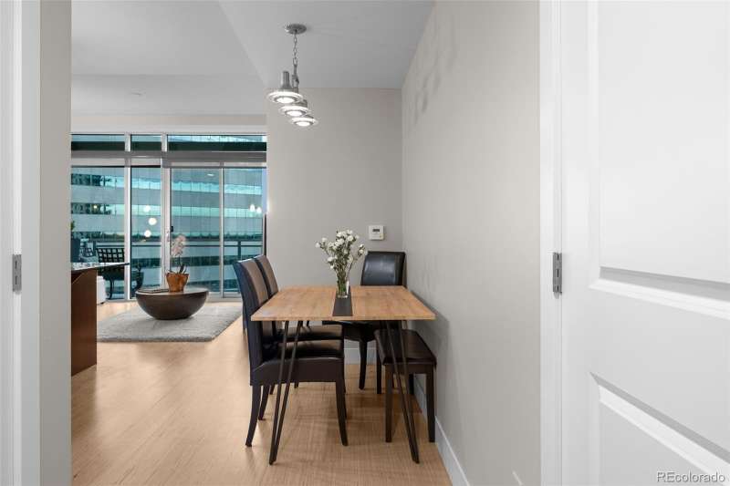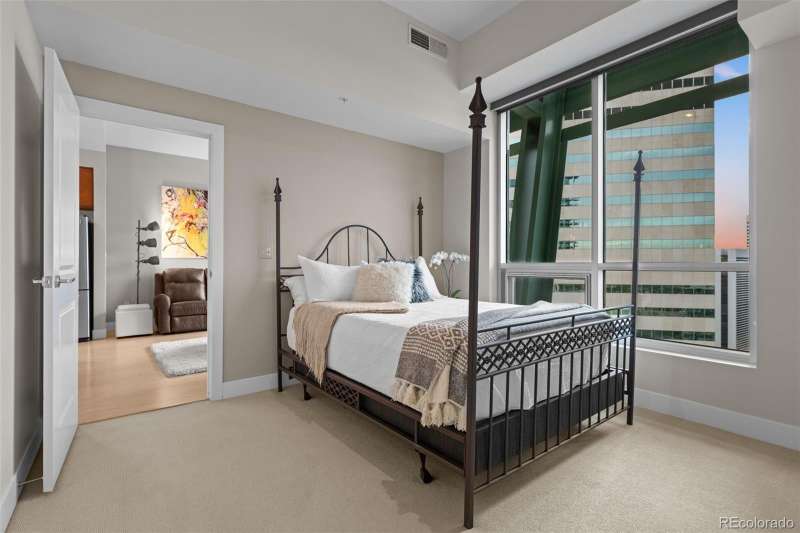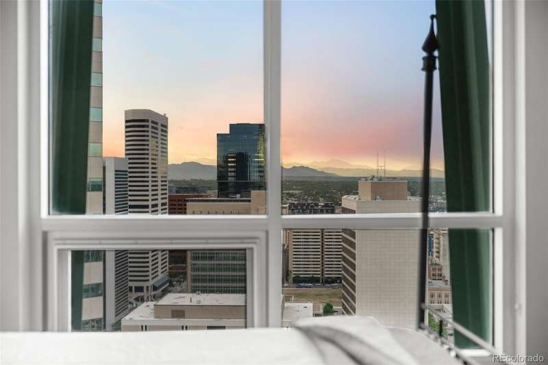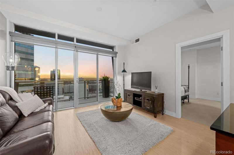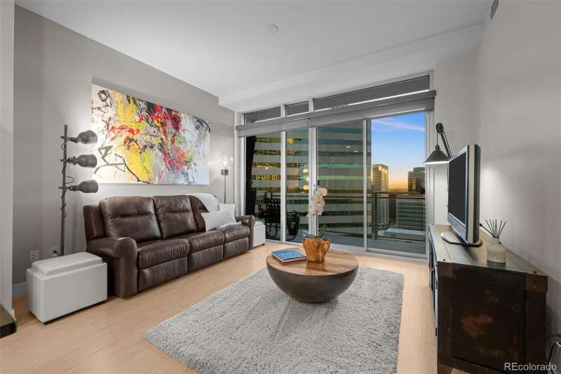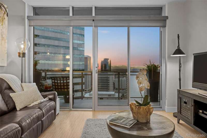 Back on the market due to Loan Availability. Incredible view! Perched high above the heart of downtown Denver, this 24th-floor sanctuary offers more than just a place to live — it invites you to immerse yourself in a lifestyle where urban sophistication meets the spirit of the Rockies. This stunning 1-bedroom, 1.5-bathroom high-rise condo is a showcase of natural light and dramatic views, with floor-to-ceiling windows that frame the city skyline and the distant, snow-dusted peaks. Every detail is designed to elevate your daily experience — from the open-concept living space to the carefully curated finishes that blend style with comfort. The gourmet kitchen features granite countertops, premium stainless-steel appliances, and a generous island that becomes the heart of the home — perfect for cooking, conversation, or casual dining. The primary suite is a serene retreat with a spa-inspired en-suite bath and an abundant walk-in closet. A second half bathroom adds flexibility and ease for guests. Enjoy the convenience of an in-unit laundry area with high-end appliances and step onto your private balcony, where mornings begin with fresh mountain air and evenings are spent savoring mountain sunsets and watching the city come alive. This residence is part of a building that offers resort-style amenities: a rooftop pool and hot tub with jaw-dropping views, a state-of-the-art fitness center, a stylish resident lounge and 24-hour concierge service to enhance your every day. Located in a neighborhood that celebrates all we love about Colorado — walkable access to green spaces, local art, world-class dining, major league sports, and cultural experiences — this is where mountain energy and metropolitan ease come together. With light rail access nearby, adventure is always just around the corner, whether you're heading into the foothills or across the city. This isn’t just a home — it’s a high-altitude haven crafted for those who crave beauty, balance, and connection.