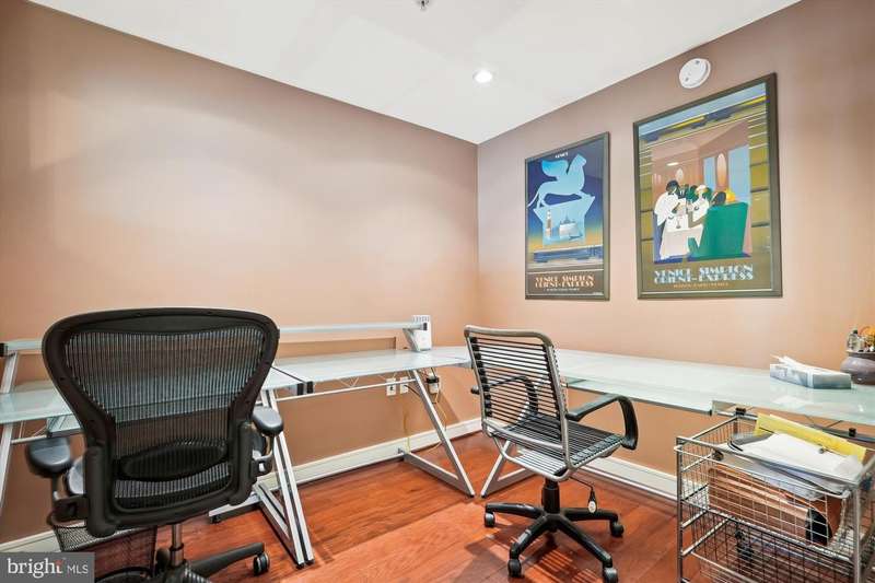 Welcome to The ADAGIO, a luxurious boutique condominium where elegance and functionality merge in the heart of Bethesda! Featuring expansive outdoor space, this exceptional 2 Bedroom/Den, 2.5 Bath condo is truly a rare find! Entertain your family & friends on the spacious patio that includes a gated access to the adjacent Community Terrace, complete with beautiful gardens and ample seating. This unique 2nd floor unit is one of only four condos in the building to have direct access to the Community Terrace on the back side of the building where you can absorb the tranquility of nature. Lovingly cared for and updated by the original owner, this condo features floor to ceiling windows, a dreamy Chef's Kitchen with top-of-the line stainless steel appliances, Poggenpohl cabinets, granite countertops, glass block backsplash and breakfast bar complete with bar stools that convey. An inviting and airy living room and dining room combination seamlessly flows from the open kitchen to the entire wall of windows with a peaceful view of the spacious terrace. The gas fireplace serves as a focal point of the living area, offering both beauty and ease. The Owner's Suite showcases 3 custom closets, ceiling fan, Marble En-Suite bath with separate shower, soaking tub, double vanity with granite countertop and private water closet. The second bedroom suite offers multiple closets, full bath with large ceramic shower and a single vanity with granite countertop. A thoughtfully situated Den/Office is located just off the marble foyer ensuring privacy & seclusion, as well as access to the powder room and private laundry room with full size washer/dryer. Conveniently located on the 2nd floor close to the mail room, 24 hour fitness center, a guest suite which cost only $100/per night and the management office. The recent renovations to the Adagio Lobby and hallways radiate a contemporary sense of sophistication and style. This lovely unit conveys with two separately deed parking spaces B5 -28 & B5- 29 (not tandem) and a storage closet located at B5- #1. Enjoy the perfect blend of urban convenience and the serenity of nature at your doorstep. Trader Joe's is located across the street for groceries and explore the many restaurants, shopping areas and nightlife of Bethesda that are just a blocks away. Very conveniently located near the Capital Crescent Trail for walking, jogging, cycling in nature. Friendship Heights/Chevy Chase is only a mile away and another vibrant city to explore.
