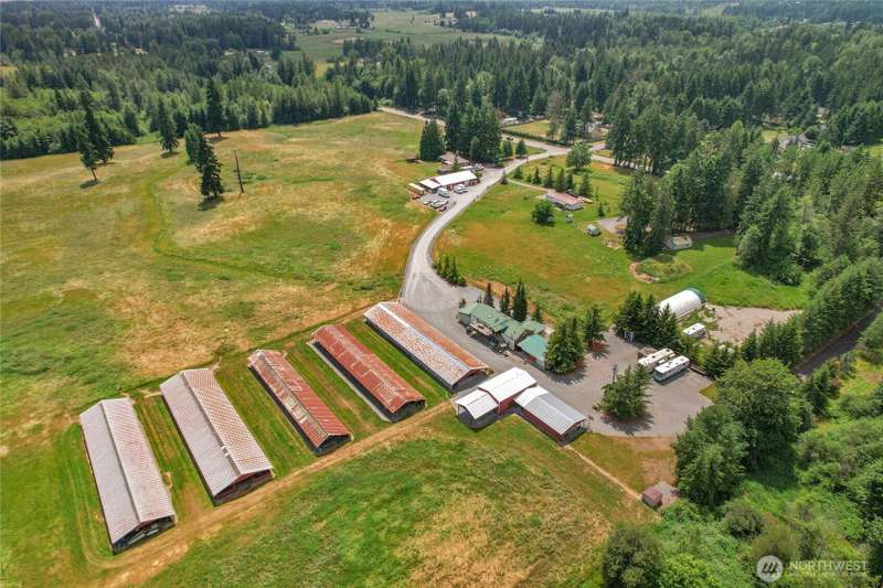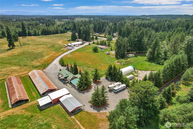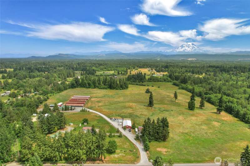Income-producing 38-acre farm with stunning Mt. Rainier views and seller financing available. The property is currently generating $188K annually with upside potential. Features 4 rented homes, a 2,880 SF commercial building, a shop, and 72 covered storage/parking stalls—20 currently rented at $150/month each. Hay production generates an additional $26K/year, and two wells have recent pump upgrades. All structures are fully leased, providing strong cash flow from day one. A turnkey investment opportunity on level, scenic land.