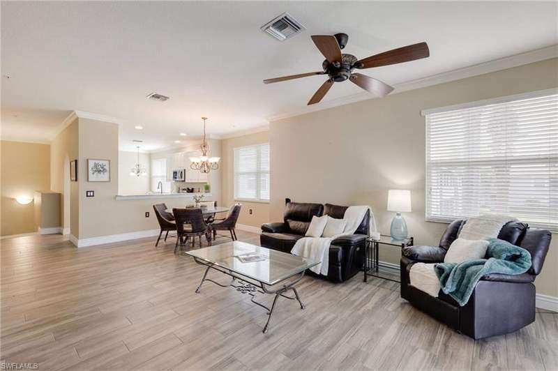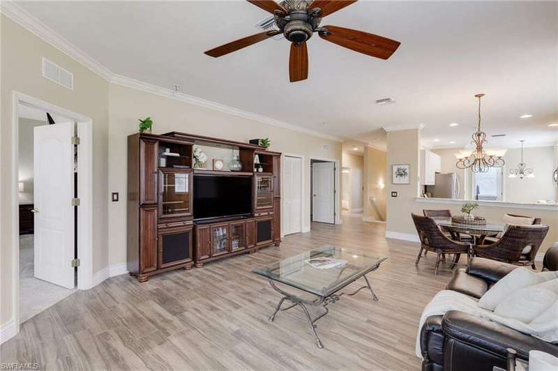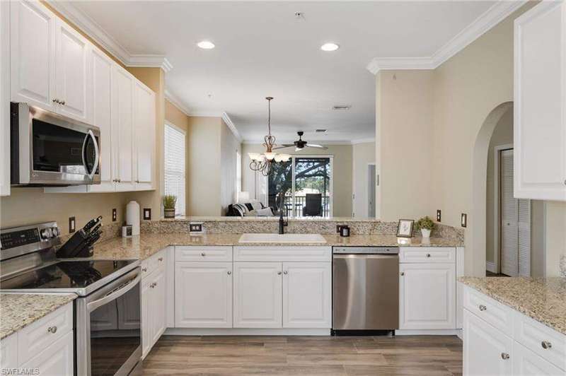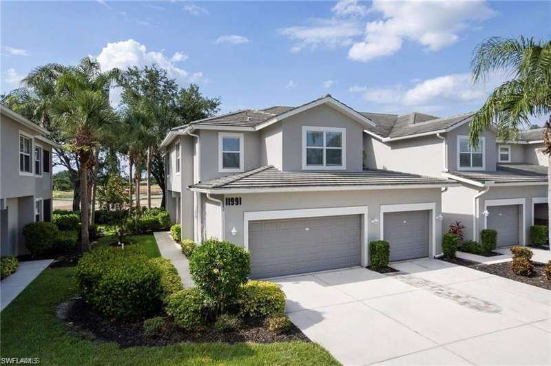 This is one of those properties you simply have to experience in person. Perfectly positioned along the 10th hole of the Tom Fazio-designed golf course, this 3-bedroom, 2-bath luxury condo with a 2-car garage is being offered fully renovated and sold turnkey. Move in with confidence knowing a brand-new roof is on the way, the HOA reserves are more than solid, and no upcoming assessments in sight! Inside, the updates shine: porcelain wood-look tile flows through the main living areas, complemented by new higher-end carpet in the bedrooms and on the entry stairs. The bathrooms are showstoppers, featuring frameless glass showers, quartz counters, full-height custom tile, and high-boy toilets. The kitchen offers timeless white cabinetry, granite countertops, and a farmhouse sink-all freshly updated and freshly painted. Enjoy peace of mind with a full one-year home warranty included. The location is unbeatable-just steps from The Club at Gateway clubhouse, within walking distance of shopping, dining, and entertainment, 10 minutes to RSW International Airport and I-75, and a quick drive to Fort Myers Beach, Sanibel, and Captiva. The Club at Gateway is a true lifestyle hub, offering golf, tennis, two pools, a playground, dog park, and miles of sidewalks. Golfers will love that the championship course, which is ranked among Golf Digest's Top 100 and recently renovated. HOA dues conveniently cover water, WiFi, and cable; you'll only need to cover electricity. This is the type of home that blends luxury, convenience, and lifestyle in one unbeatable package.