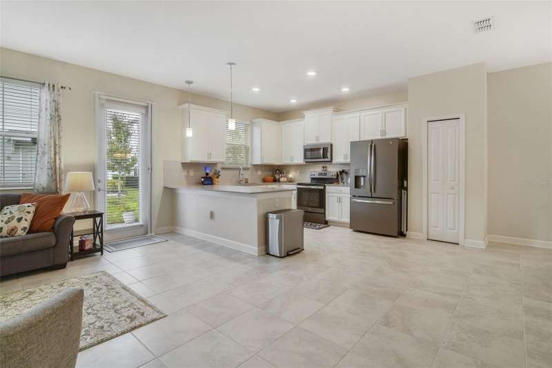 **Seller may consider buyer concessions if made in an offer**Welcome to this beautifully maintained townhouse in the DESIRABLE STOREY LAKE COMMUNITY of Kissimmee! Built in 2018 and offering over 2,000 SQUARE FEET of modern living space, this home feels nearly brand new with LUXURY FINISHES, an open concept design, and RESORT-STYLE AMENITIES just minutes from world-famous attractions. Inside, you’ll find EASY-TO-MAINTAIN ceramic tile flooring throughout the main level, creating a clean, cohesive look that complements the home’s high ceilings and open layout. The chef-inspired Kitchen is both elegant and functional, featuring WHITE 42-INCH CABINETRY, quartz countertops, stainless steel appliances, a breakfast bar, and a pantry for added storage. The Kitchen overlooks the SPACIOUS living area, where natural light fills the room and a FLEX SPACE offers the perfect nook for a home office, reading corner, or play area. A separate Dining area provides an ideal spot for gathering with family and friends, and a HALF BATH completes the first floor for convenience. Upstairs, the split-bedroom floor plan offers privacy and versatility. The Primary Suite is a true retreat, highlighted by a TRAY CEILING, walk-in closet, and a beautifully designed en suite bath with dual sinks, a GARDEN TUB, step-in shower, and private water closet. Two additional bedrooms share a spacious second full bath, and the LAUNDRY ROOM, complete with washer and dryer, is conveniently located on the upper level—making daily life a breeze. All bedrooms feature PLUSH CARPETING and plenty of natural light. Step outside to a small private back patio, where you can enjoy your morning coffee, relax in the evening, or take in the Florida sunshine year-round. Living in Storey Lake means every day feels like a vacation. This gated, MASTER-PLANNED, RESORT-STYLE community presents an incredible list of FAMILY-FRIENDLY AMENITIES, including a tropical pool with lazy river, waterslides, splash pad, fitness center, clubhouse with café/bar, mini-golf, kayak rentals, sports courts, and playgrounds. Whether you’re lounging poolside or exploring the beautiful walking trails, there’s something for everyone to enjoy. LOCATED JUST MINUTES from Walt Disney World, Universal Studios, SeaWorld, and the Orlando International Airport, you’ll also enjoy proximity to The Loop Shopping Center, fine dining, and major roadways like SR 417, Osceola Parkway, and I-4 for EASY COMMUTING. With its luxury finishes, spacious floor plan, and ACCESS TO WORLD CLASS AMENITIES, this beautiful townhouse offers the ultimate combination of comfort, convenience, and Central Florida lifestyle—WELCOME HOME to Storey Lake!