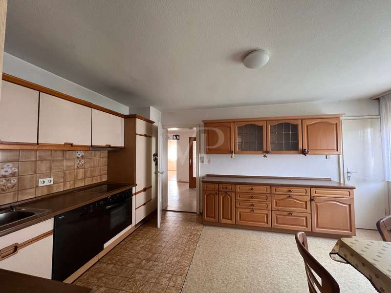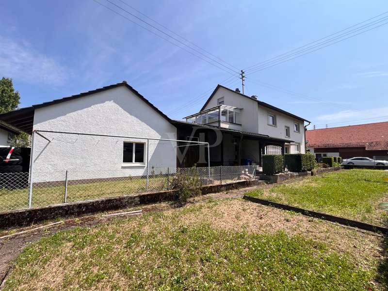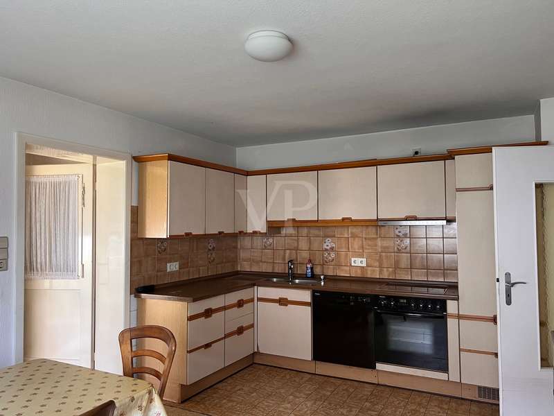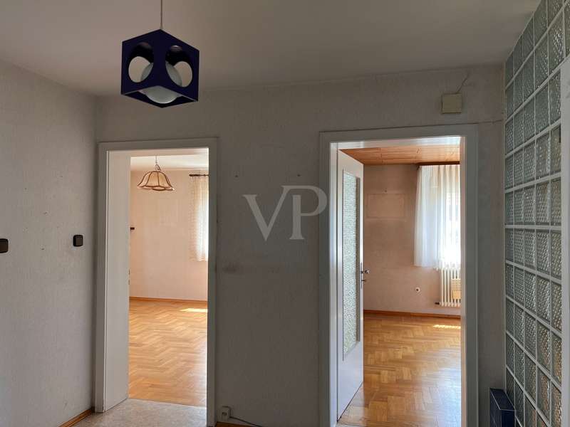 Welcome to your future home, a two-family house with a generous living space of approx. 160 m², situated on an estate of approx. 782 m².with a total of six rooms, including four bedrooms and two bathrooms, this property offers enough space for families or a combination of living and working. The house was built in 1958 and is in need of partial renovation, giving you the opportunity to add your own personal touch to the property. The roof of the house has been insulated, while some of the windows have already been replaced with modern plastic windows with double glazing. In addition, there are also wooden windows with double glazing. The living area offers parquet flooring as well as carpeting and tiled floors, which give the rooms a cozy atmosphere. A highlight of the house is the conservatory on the upper floor, which offers additional space for relaxation or as a dining area. The separate entrance to the first floor from the inner courtyard, which is partially covered, provides discreet access. Both residential units also have their own storage rooms, which creates additional storage space. A fitted kitchen on the first floor with an integrated pantry and daylight bathrooms round off the living space. In addition to combined oil and wood heating, central heating ensures a comfortable living environment. The property includes three cellar rooms for extended storage options. The utility room has direct access to the outside area, which makes housework easier. The outdoor area of the property boasts a large kitchen and ornamental garden, which is fully fenced and offers space for a variety of uses. Here you will find space for leisure activities as well as gardens for growing your own plants or relaxing in the open air. An additional outbuilding offers functional additions: three garages, which provide ample space for vehicles or hobby workshops, as well as further storage space. Practical outside connections for water are also available, making it easier to manage the garden or smaller outdoor projects. The versatile room layouts and existing infrastructure offer you flexibility for a wide range of living requirements. Whether you are looking for a new home for your family or a property that combines living and working, this house provides the right foundations. Please do not hesitate to contact us for more information or to arrange a viewing. We will be happy to assist you on the way to your new home.