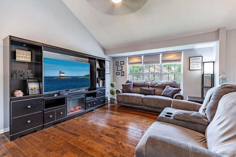 : Cedar Lake home with CROWN POINT DISTRICT SCHOOLS!!!!!! This beautiful bi-level home offers 3 spacious bedrooms including a master suite with a spa-like bathroom! Bonus room on the lower level, perfect for a home office, gym, or additional living space. You'll love the open-concept layout, featuring soaring 9-foot ceilings and rich BAMBOO plank flooring. The home includes newer matching Samsung STAINLESS STEEL appliances, washer and dryer, and a SPACIOUS 2.5 car garage, possible 3 car garage. Step outside to your huge backyard with a deck, perfect for entertaining, relaxing! Located just minutes from vibrant downtown Cedar Lake and nestled just minutes from the lake! This home has it all. Don't miss your chance - schedule your private showing today!