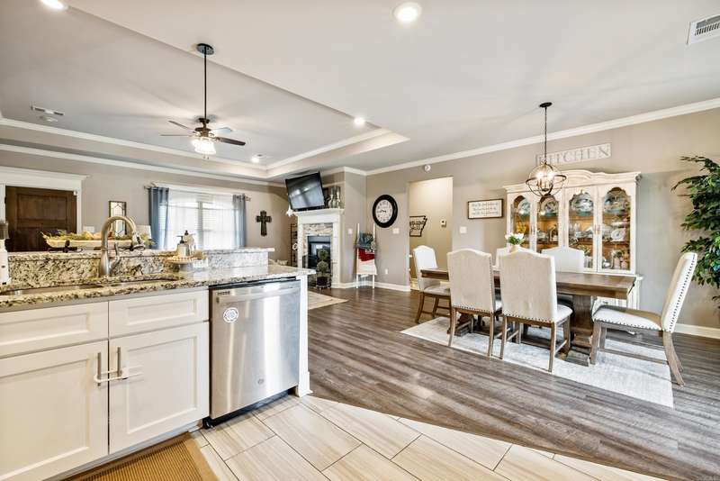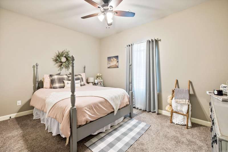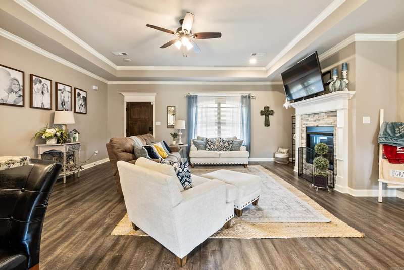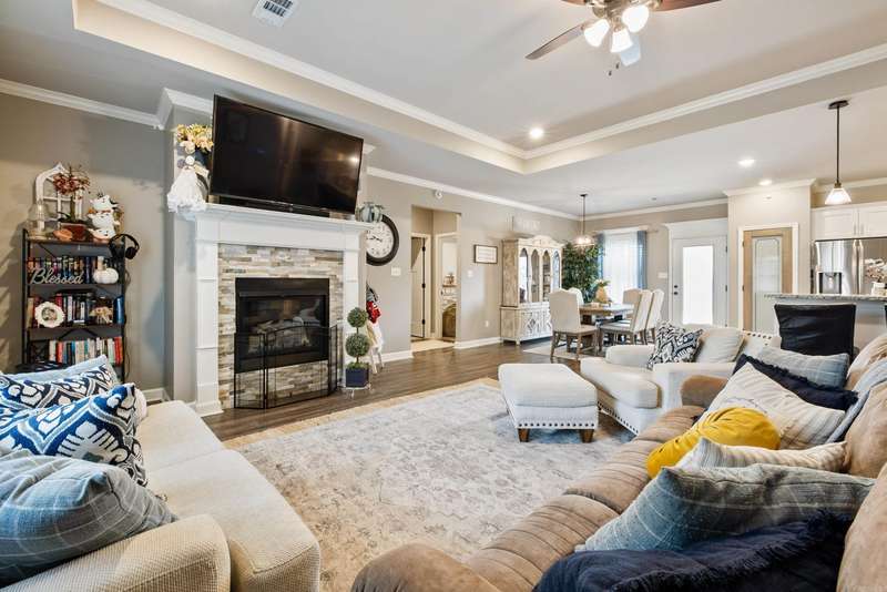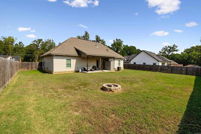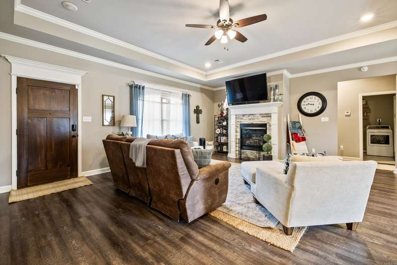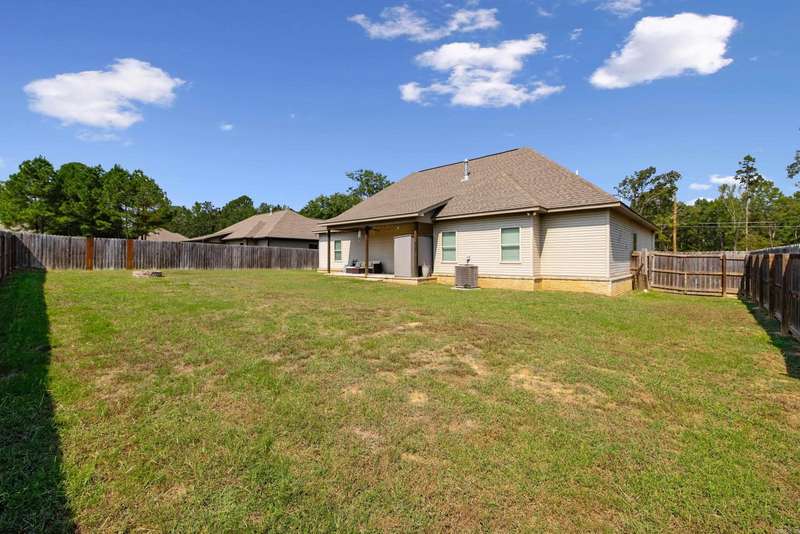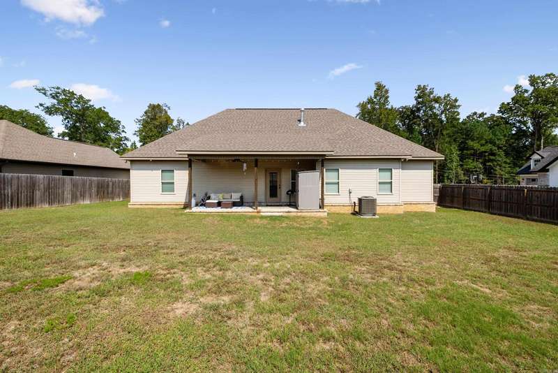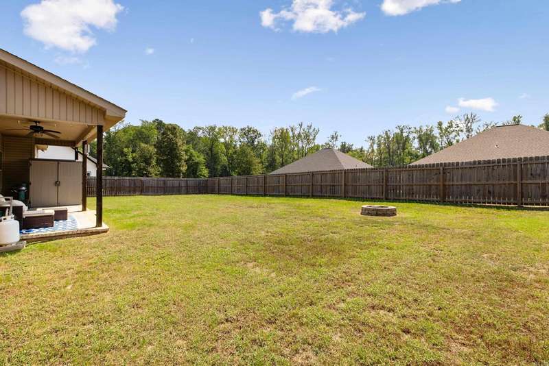 This like-new home is a must-see! Nestled in a quiet neighborhood, it welcomes you with a covered front porch and an open layout inside featuring tall ceilings, a cozy gas fireplace, and a spacious kitchen with granite countertops, breakfast bar, dining nook, and pantry. The master suite boasts tray ceilings, a soaking tub, double vanity, and large walk-in shower, while the oversized laundry room adds everyday convenience. Out back, a covered patio overlooks the fully fenced, flat yard—perfect for relaxing or entertaining.