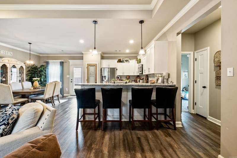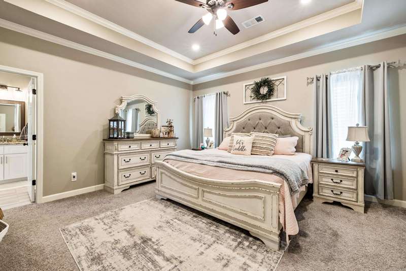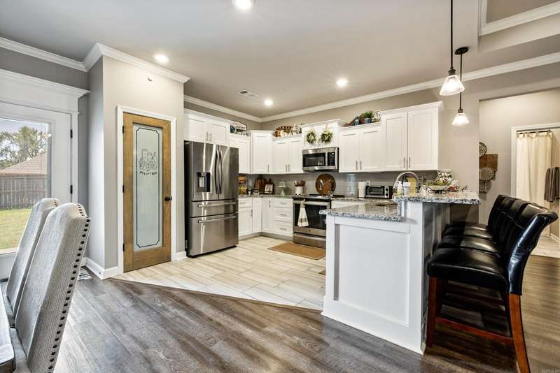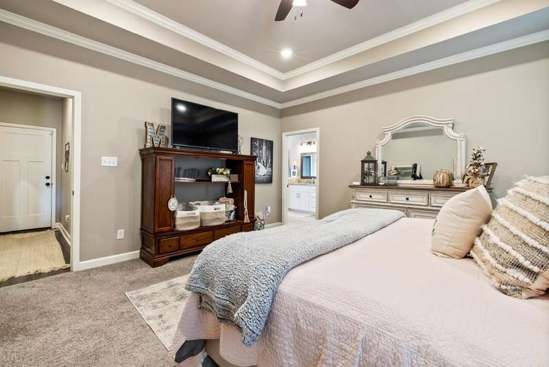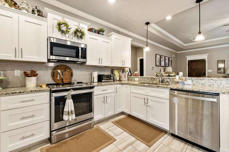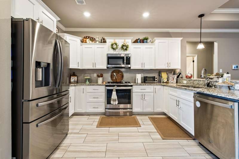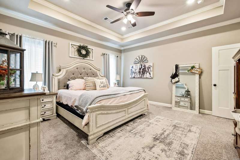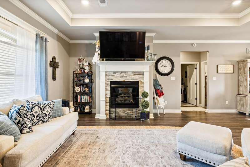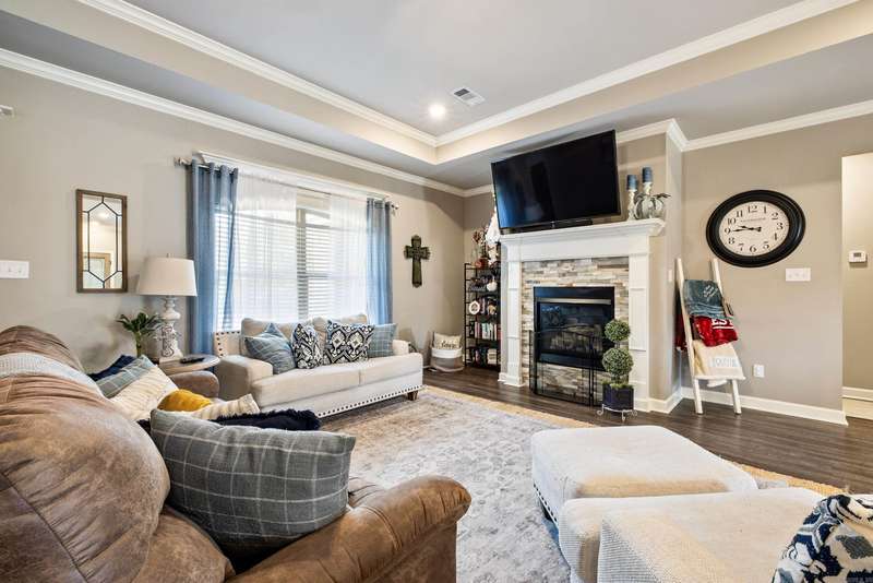 This like-new home is a must-see! Nestled in a quiet neighborhood, it welcomes you with a covered front porch and an open layout inside featuring tall ceilings, a cozy gas fireplace, and a spacious kitchen with granite countertops, breakfast bar, dining nook, and pantry. The master suite boasts tray ceilings, a soaking tub, double vanity, and large walk-in shower, while the oversized laundry room adds everyday convenience. Out back, a covered patio overlooks the fully fenced, flat yard—perfect for relaxing or entertaining.