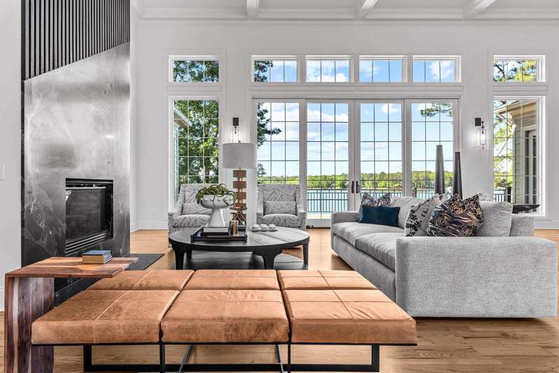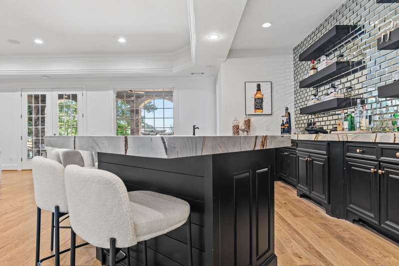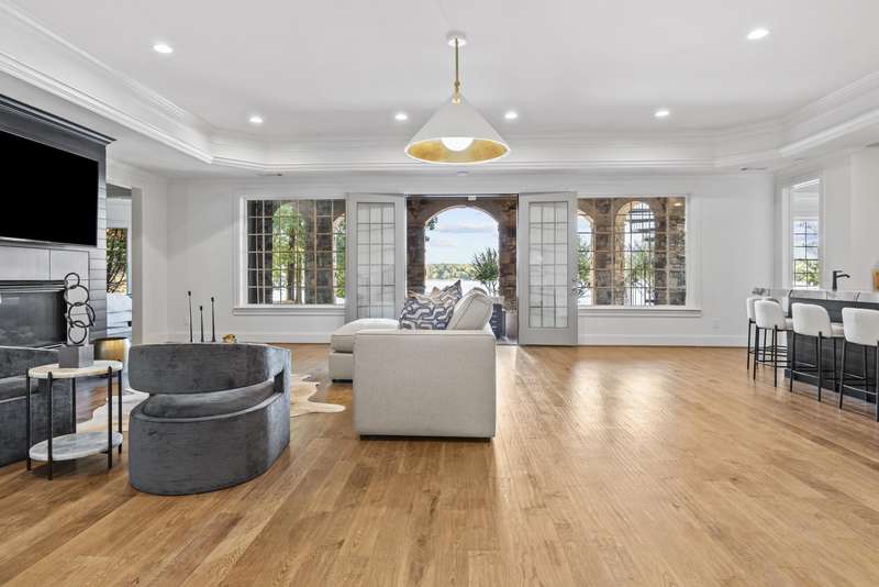 STUNNING, MOVE-IN READY LAKEFRONT HOME JUST STEPS FROM THE RITZ-CARLTON AND LAKE CLUB. Skip the hassle of building or renovating! This completely reimagined home was finished in 2024 and is ready for immediate enjoyment. Located in Reynolds Lake Oconee with panoramic lake views, this property features a sleek open concept layout, state of the art fixtures, top tier appliances, and expansive glass doors and windows that flood the home with natural light. An additional apartment with a full bath, sitting area, and kitchenette sits above the garage, perfect for guests or extended stays. From the moment you step into the grand foyer with soaring ceilings, you're greeted with unobstructed lake views through floor to ceiling French doors that open to a spectacular lakefront patio. The spacious new great room flows seamlessly into the dining area and chef inspired kitchen, complete with double islands, custom cabinetry, and high end appliances. A screened porch with its own fireplace offers a serene lakeside retreat. The luxurious master suite includes lake views, a beautifully detailed ceiling, a newly designed spa like bath with designer tiles and fixtures, and a generous walk in closet. The home also features a spacious laundry room with a built in desk, while the terrace level is an entertainer’s dream with a fireplace, glass enclosed wine cellar, and full designer bar. Three additional bedroom suites offer comfort and privacy for guests. Enjoy life outdoors with a resort style pool deck, lakefront patio, fire pit, and private dock ready for sunset cruises. Rarely does a lakefront home of this caliber become available, especially one that’s already fully updated and move in ready. Membership available.