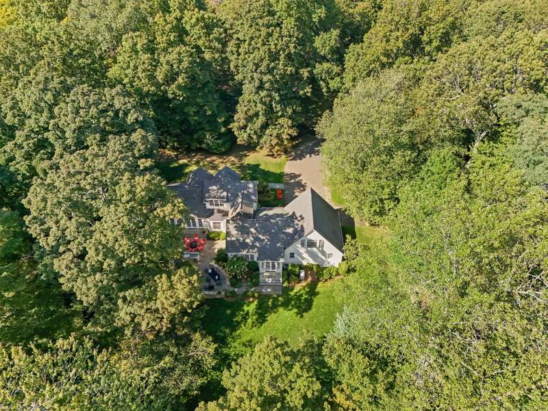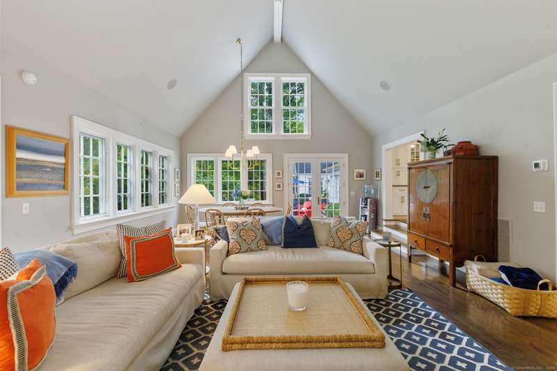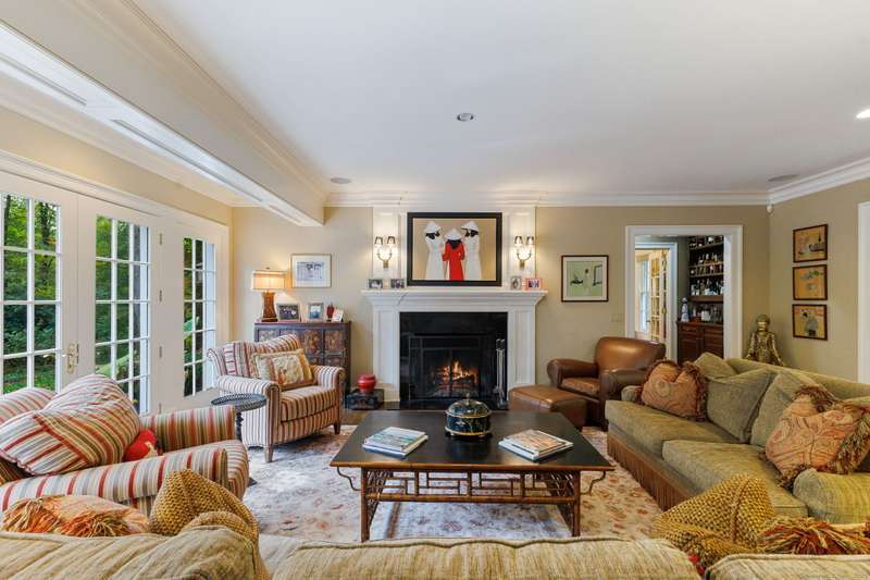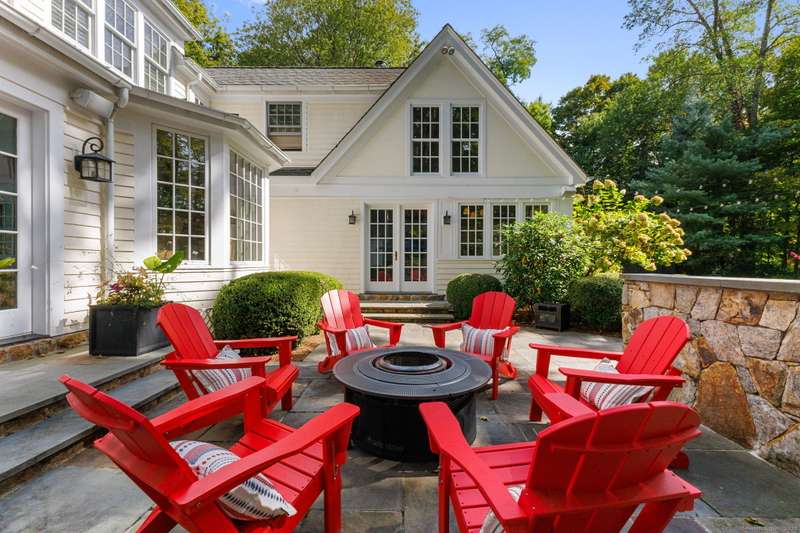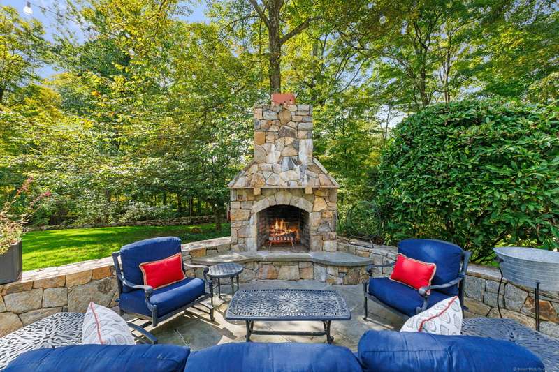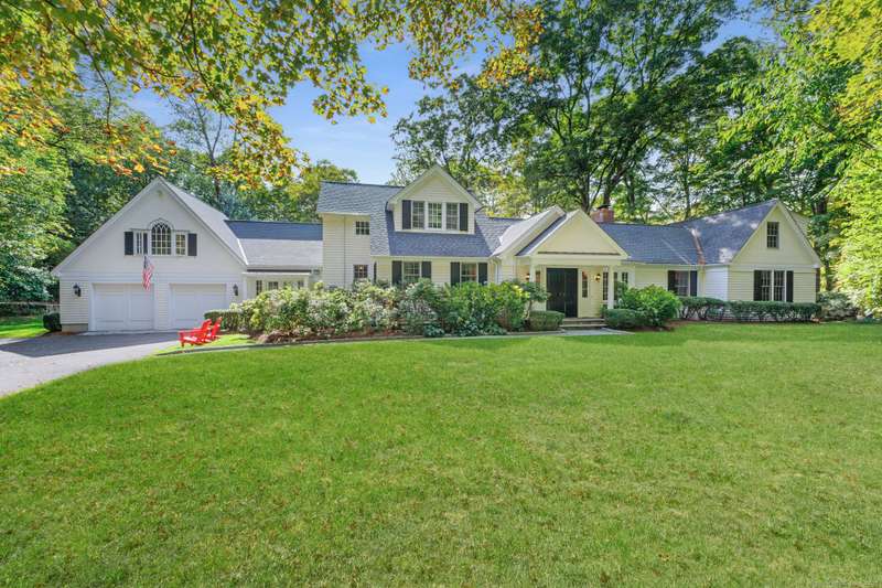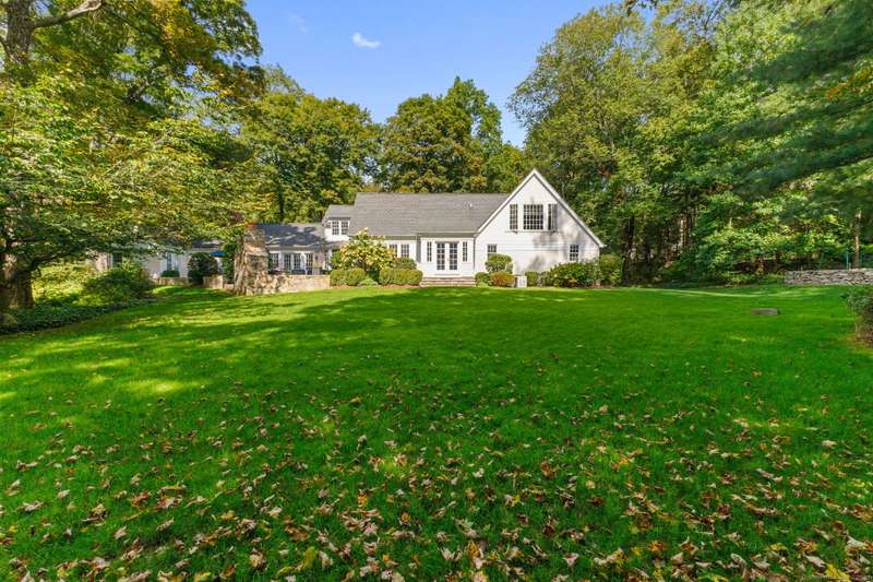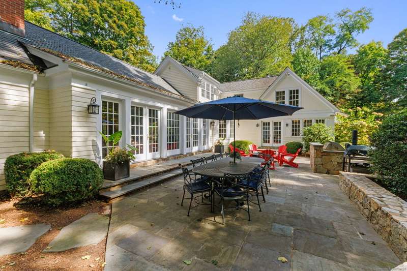 Nestled at the end of a private lane off the sought-after Smith Ridge Road, this enchanting 1924 Cape exudes unbeatable charm and timeless elegance. Spread across 2.2 lush acres, this beautiful property offers a serene retreat with spacious grounds perfect for relaxation and entertaining. The home features a chef's kitchen equipped with top-notch appliances and quartz countertops that provide both beauty and functionality. The kitchen flows seamlessly into the family room, creating an inviting space ideal for entertaining and family gatherings. The spacious living room is adorned with French doors that open to reveal a breathtaking park-like setting outside, with built-in outdoor grill and fireplace. Enter the primary bedroom through a cozy sitting room which creates a warm and inviting atmosphere. The sitting room, featuring a charming fireplace, serves as a perfect retreat for relaxation before heading into the personal sanctuary of the bedroom. There are an additional four beautiful