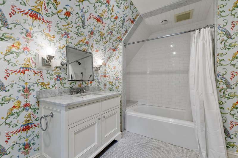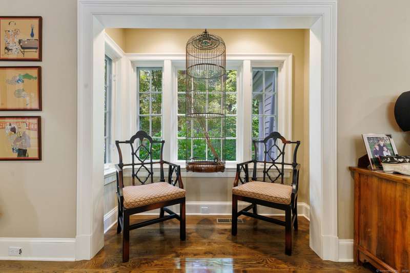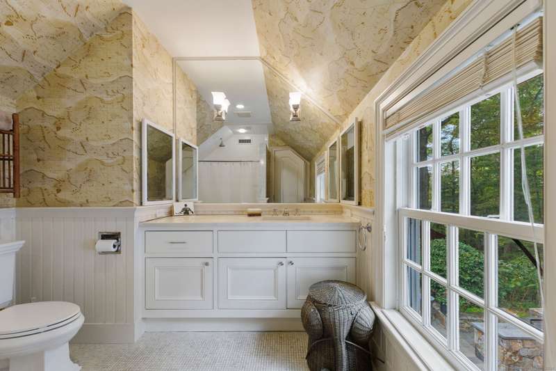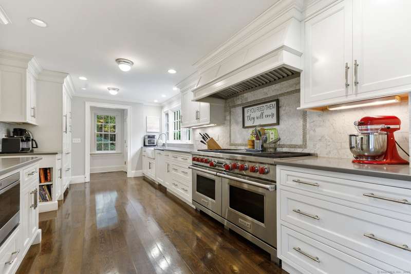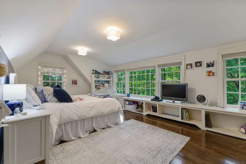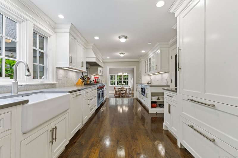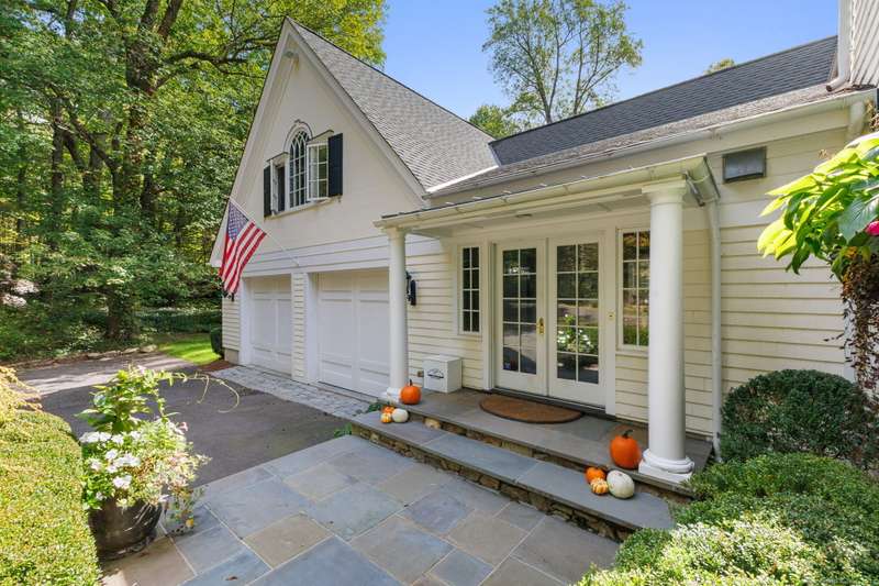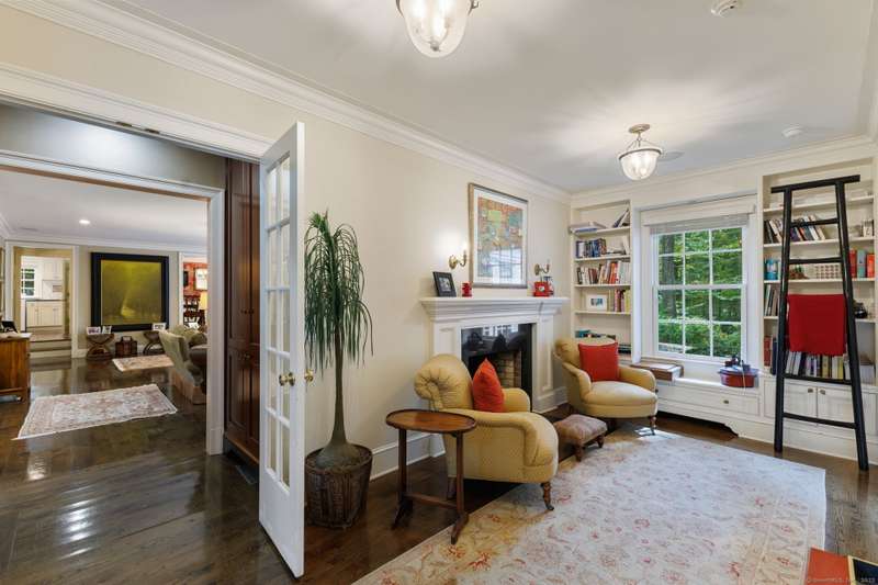 Nestled at the end of a private lane off the sought-after Smith Ridge Road, this enchanting 1924 Cape exudes unbeatable charm and timeless elegance. Spread across 2.2 lush acres, this beautiful property offers a serene retreat with spacious grounds perfect for relaxation and entertaining. The home features a chef's kitchen equipped with top-notch appliances and quartz countertops that provide both beauty and functionality. The kitchen flows seamlessly into the family room, creating an inviting space ideal for entertaining and family gatherings. The spacious living room is adorned with French doors that open to reveal a breathtaking park-like setting outside, with built-in outdoor grill and fireplace. Enter the primary bedroom through a cozy sitting room which creates a warm and inviting atmosphere. The sitting room, featuring a charming fireplace, serves as a perfect retreat for relaxation before heading into the personal sanctuary of the bedroom. There are an additional four beautiful