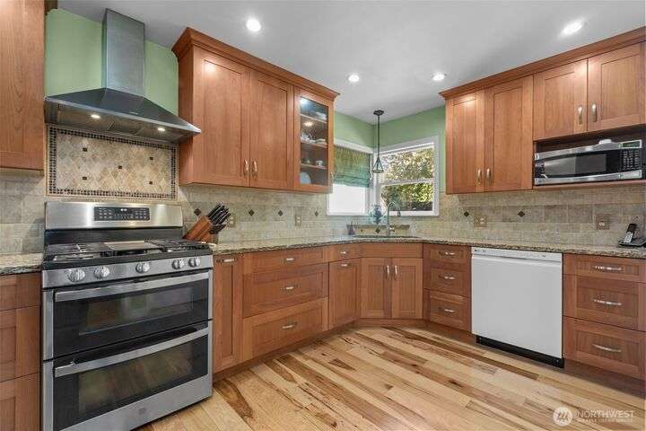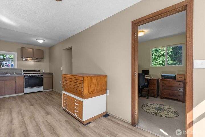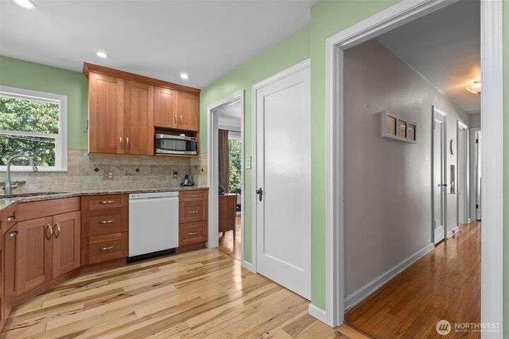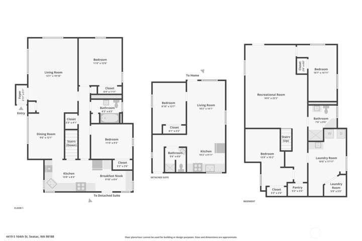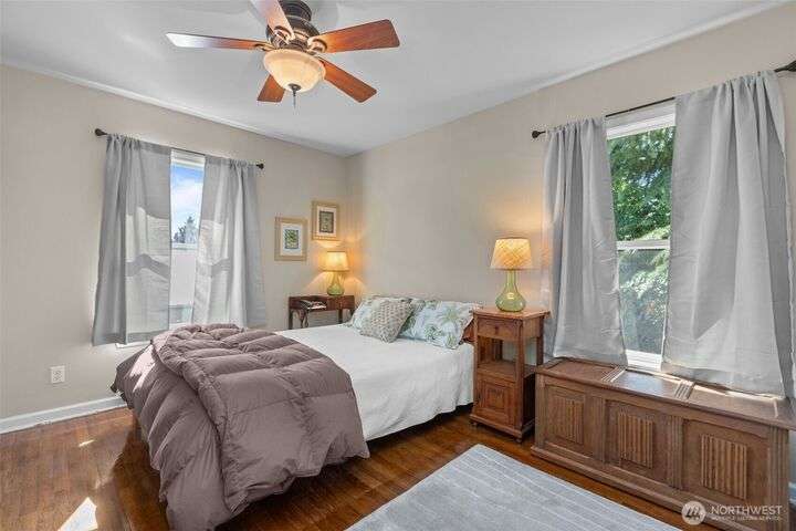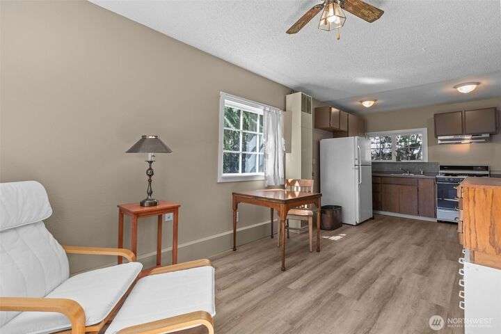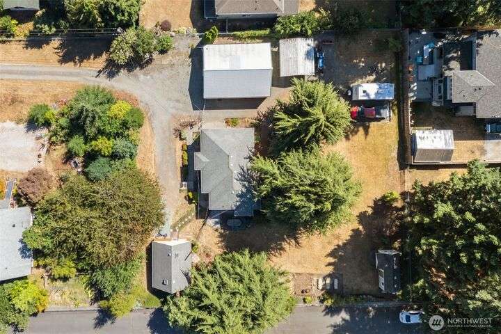 Generous living meets city convenience! Relax in light-filled living room & gather in dining room, each replete w/vintage character. Well-appointed kitchen boasts timeless aesthetic w/ample storage & dining nook. Main level includes primary bedroom w/partial mtn view & additional bedroom. Lower level features 2 bedrooms, large laundry room & spacious rec room. Enjoy flexibility galore; design dream home office or hobby room. Inviting 480 sq.ft. DADU guest house w/1 bedroom & 3/4 bath expands possibilities. Shop, carport, outbuilding, RV parking offer even more potential. Large yard ready for entertaining, gardening & your creativity! Down the street to Safeway, dining, Crestview Park. 5 min to schools, freeways, Southcenter, SeaTac Airport.