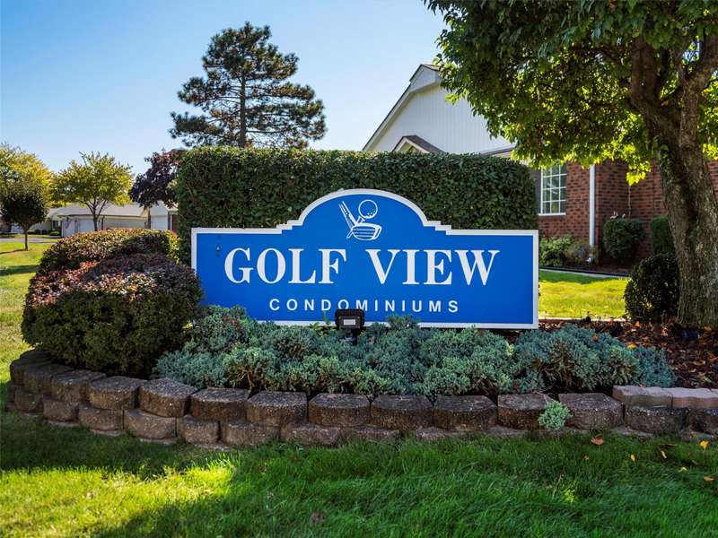 Explore this charming Ranch Condo located in the sought after Golf View Condos within a wonderful golf course community. This meticulously maintained unit features an inviting open living room with a door wall leading to a cement patio, complemented by newer vinyl flooring and fresh paint throughout. The dining area has a lovely window that provides a view of the front yard. The updated kitchen boasts granite countertops and includes all essential appliances such as a stove, refrigerator, dishwasher, and microwave. Convenience is key with first floor laundry that includes extra cabinets and granite counters, along with a washer and dryer. The primary bedroom benefits from a generous window overlooking the backyard, a spacious walk-in closet, and a ceiling fan with remote. The second bedroom also offers a window and a ceiling fan. Enjoy granite countertops in both the full and half baths. Additional features include a newer furnace and an attached two car garage. The monthly maintenance fee covers snow removal, water, sewer, trash pickup, and exterior maintenance. Don't miss the opportunity to stroll to the gazebo and pond! One Dog or one cat are allowed. See Handbook for more details.
