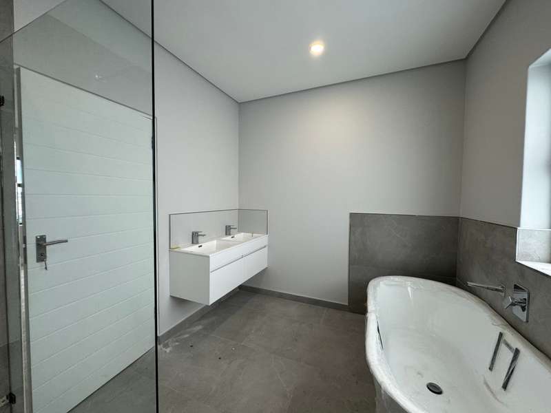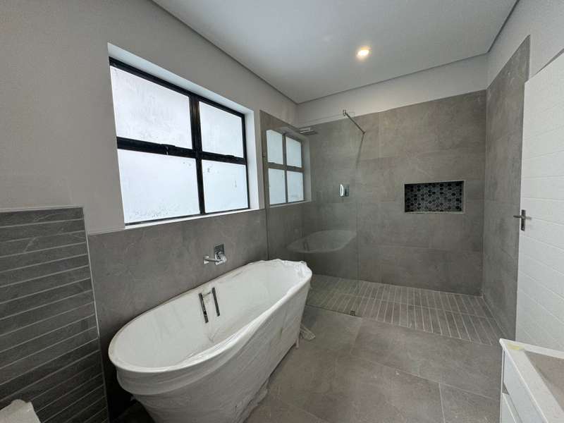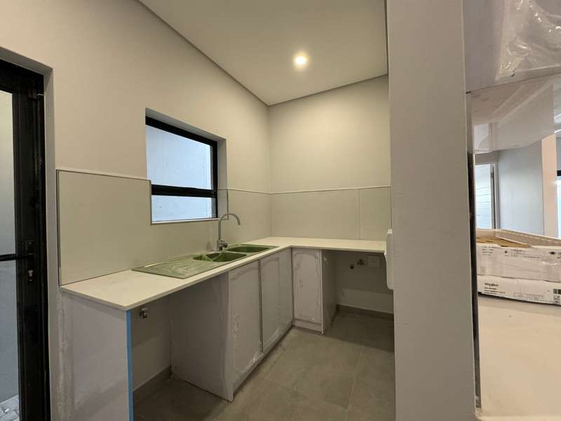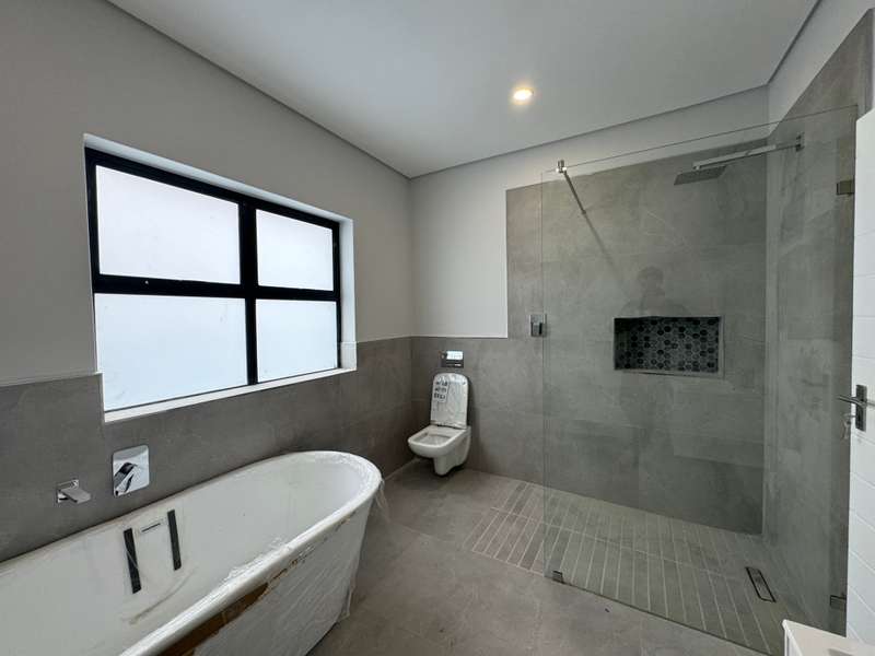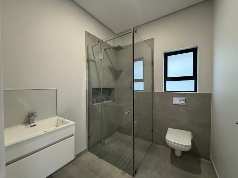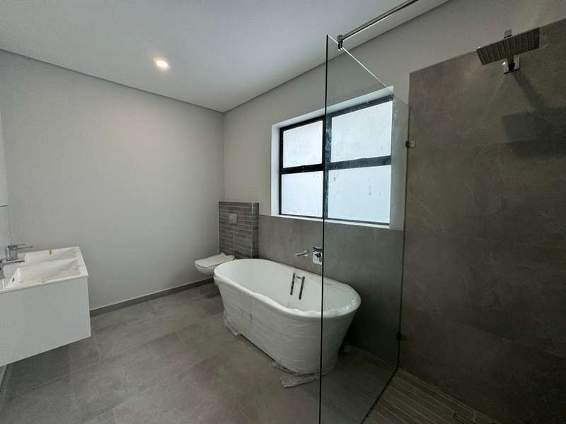 Boasting 4 bedrooms and 4 bathrooms, this residence is a sanctuary of tranquility and style. As you enter, you are greeted by a spacious and inviting living area, with an abundance of natural light accentuating the contemporary design. The ground floor features a conveniently located bedroom with an adjacent guest bathroom, complete with a shower. Perfect for accommodating guests or providing a private retreat, the bedroom also offers a separate sliding door leading to the meticulously landscaped outside yard. The heart of the home is undoubtedly the sleek and stylish modern kitchen, equipped with state-of-the-art appliances and a central island that serves as a focal point for both culinary enthusiasts and social gatherings. A scullery, plumbed for a washing machine and dishwasher, adds a practical touch to this culinary haven, ensuring seamless functionality. The open-plan design seamlessly connects the kitchen to the dining and living areas, creating an inviting space that encourages social interaction and entertaining. Expansive glass doors lead to the outdoor entertainment area, where a built-in braai and countertop await, providing the perfect setting for al fresco dining and relaxation. Ascend the staircase to discover the upper level, where the three additional bedrooms await. Each bedroom is a private retreat, featuring its own en-suite bathroom, exuding luxury and comfort. The master suite, in particular, boasts a lavish sanctuary with impeccable finishes, offering a private haven for relaxation. For added convenience, this residence includes an automated double car garage, ensuring secure parking and easy access to your luxurious abode. With attention to detail evident in every corner, this home seamlessly combines functionality, style, and comfort to create a haven that is both sophisticated and welcoming. Indulge in the lifestyle of your dreams – a blend of contemporary design, thoughtful architecture, and luxurious amenities. This property stands as a testament to the art of fine living and awaits the discerning homeowner ready to embrace the pinnacle of modern elegance. Welcome home to a life of unparalleled luxury!