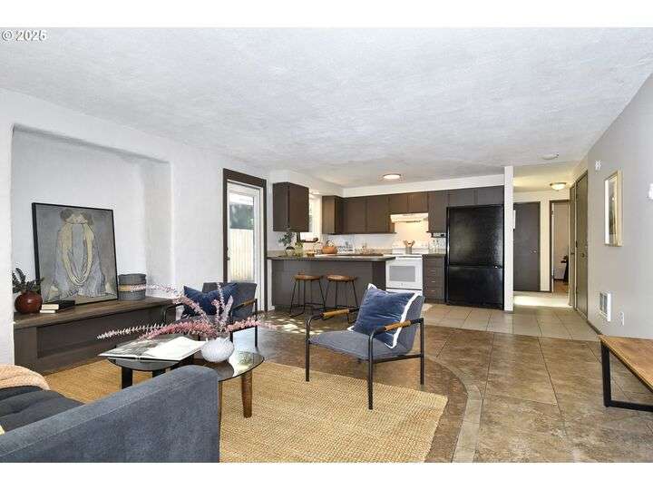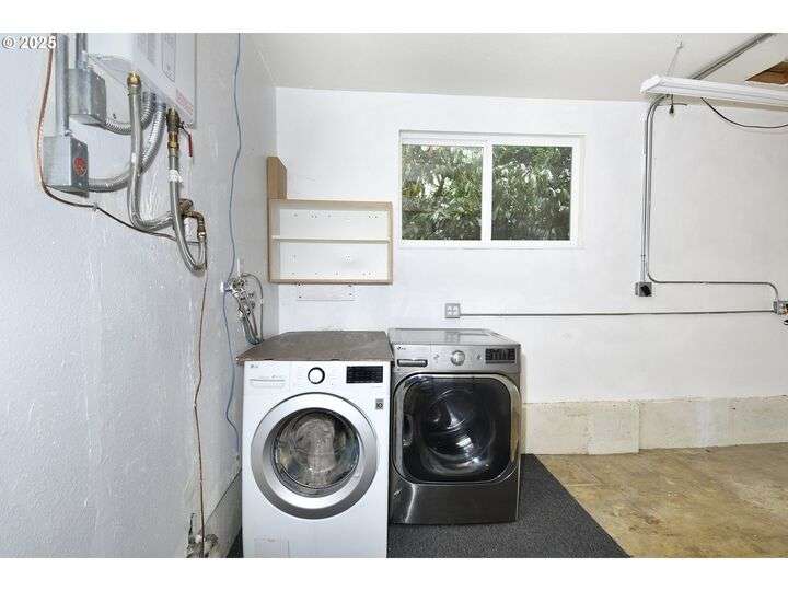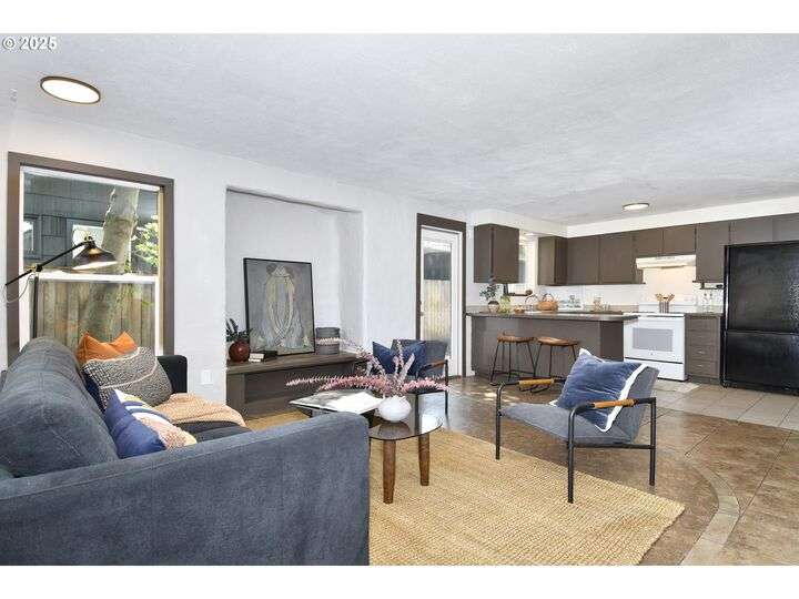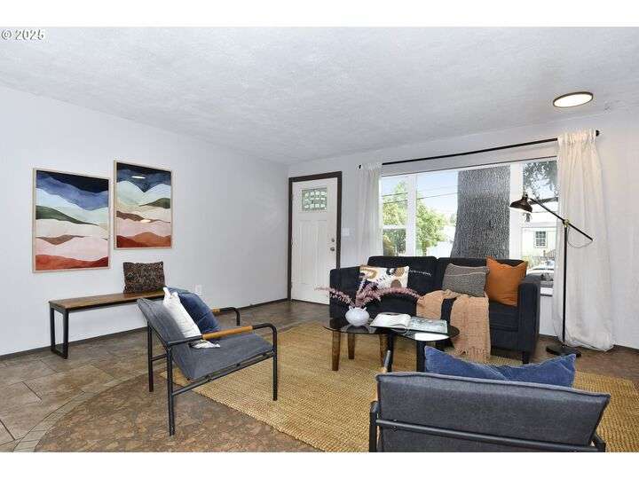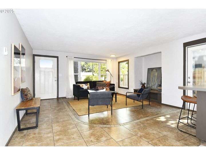 This charming home offers 3 bedrooms and 2 full baths, including 2 bedrooms on the main level. Upstairs, you'll find the primary bedroom and a generous bonus room - perfect for an office, playroom, and possible 4th bedroom. Enjoy the outdoors with a spacious backyard, ideal for BBQs, relaxing, or gardening. The yard features fig and apple trees. The long driveway provides ample off-street parking, and the garage offers additional storage space. For added comfort and energy savings, this home is equipped with a tank-less water heater and newer washer/dryer. Conveniently located just minutes from the vibrant Dekum Street shops and restaurants, including Tamale Boy, Firehouse, and Breakside Brewery. You'll also be close to Woodlawn Park, Alberta Park, and all the amenities along Dekum and Alberta Streets. Commuters will appreciate the proximity to a bike boulevard, bus lines, and easy access to I-5. Don't miss the opportunity to make this wonderful home yours.