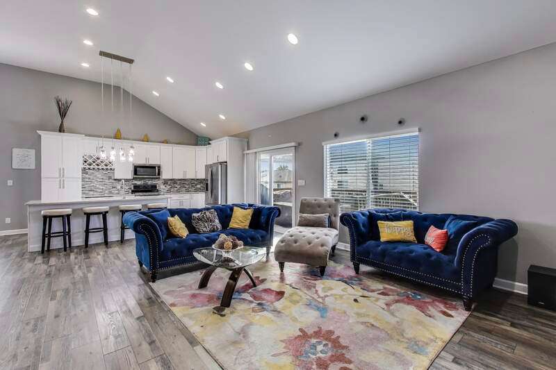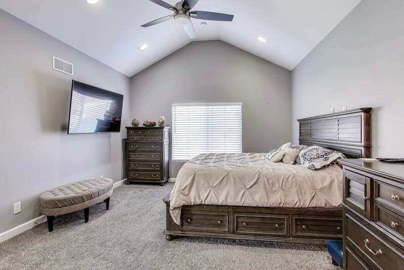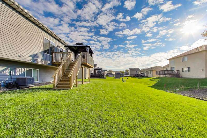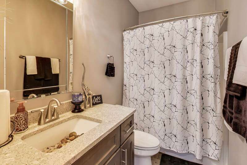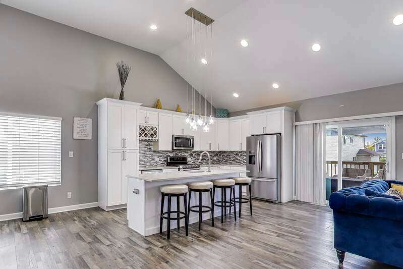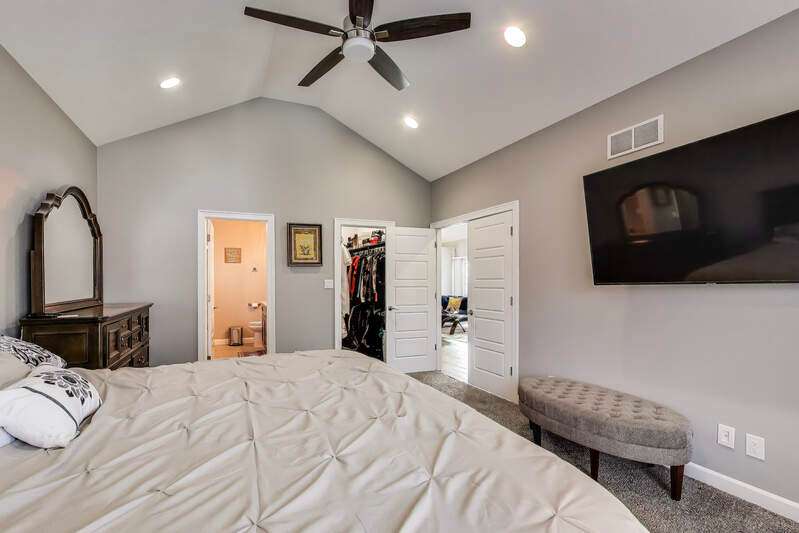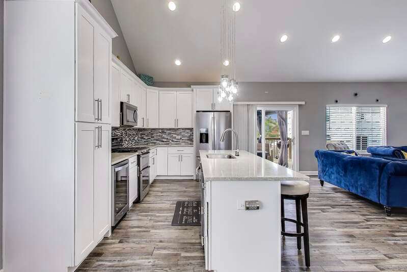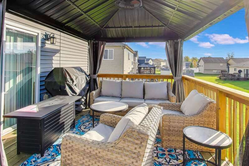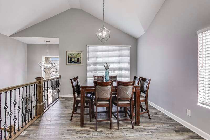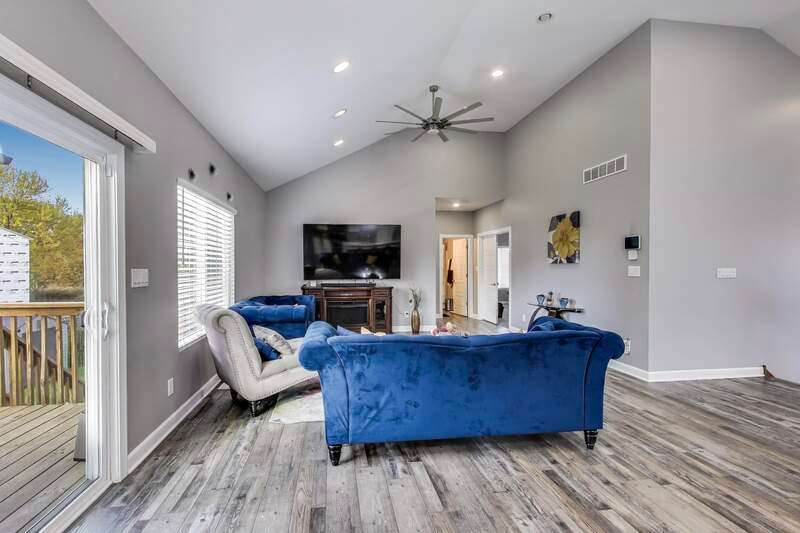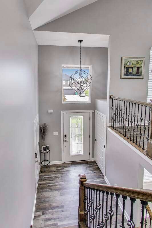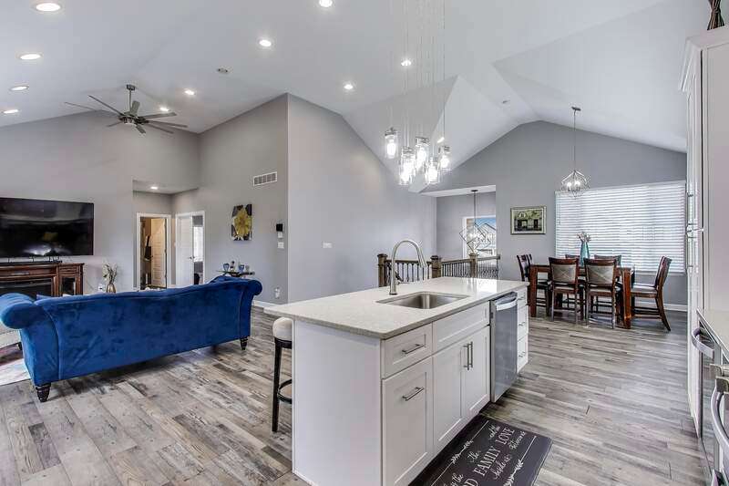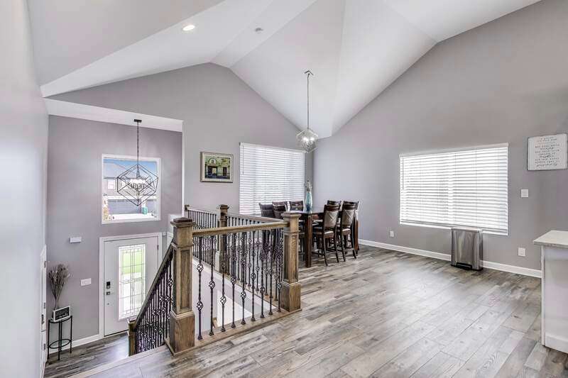 Beautiful 4-bed, 3-bath home with open floor plan, cathedral ceilings, recessed lighting, and ceiling fans. The kitchen features a large breakfast bar, birch wood cabinets with soft-close drawers, quartz countertops, stainless steel appliances, custom wine rack, and built-in beverage cooler. Primary suite with whirlpool tub, sit-down shower, double vanity, and walk-in closets. Lower-level great room with carpet and fireplace. Enjoy 3-car garage, two-zone furnace & A/C, solar panels, irrigation system, invisible pet fence, Bluetooth bathroom speakers, deck with gazebo, and storage shed. Modern upgrades and luxury features make this Merrillville home a must-see!