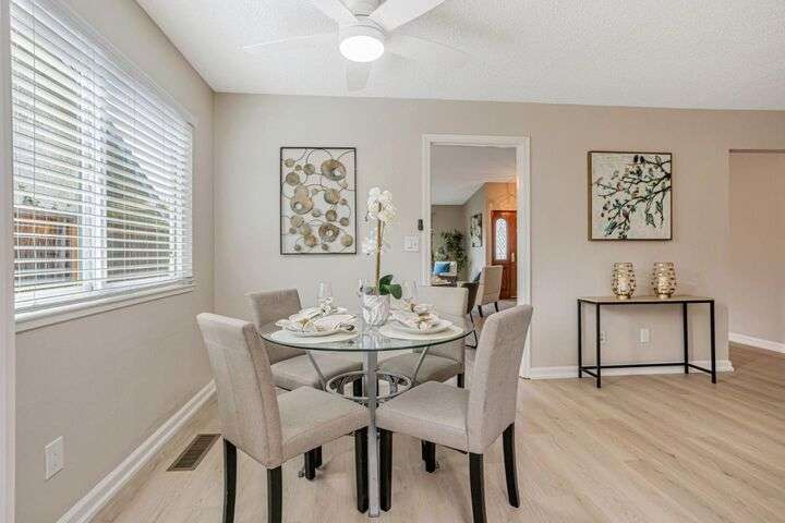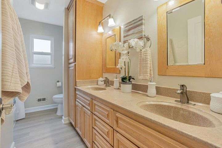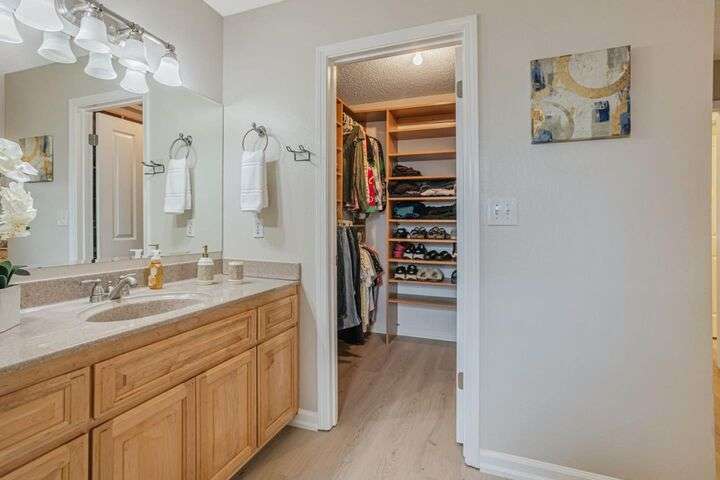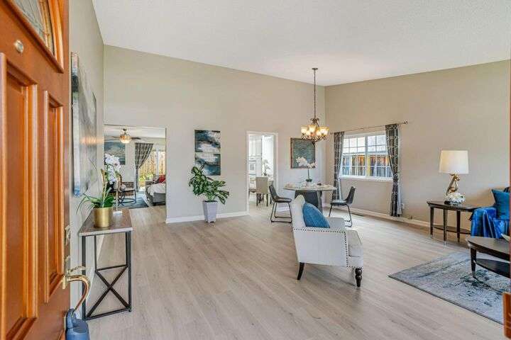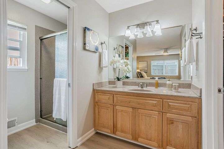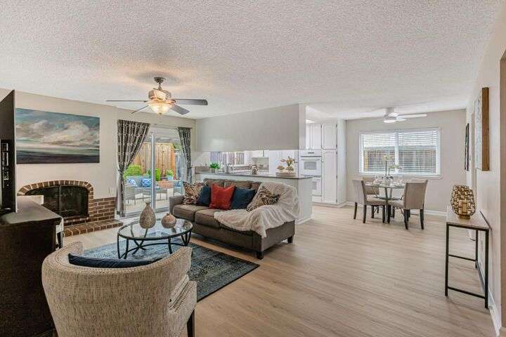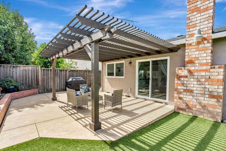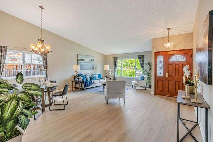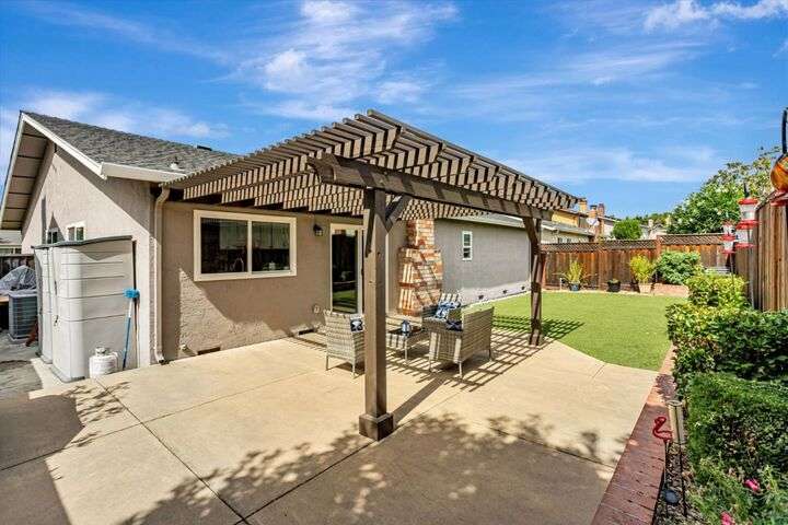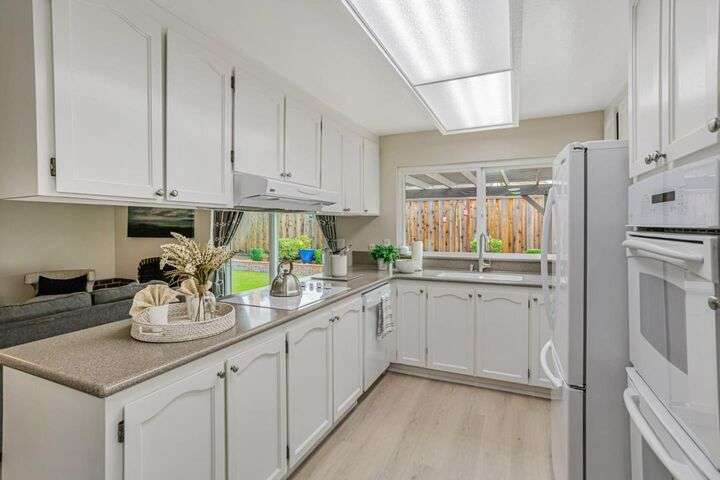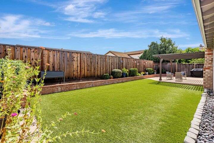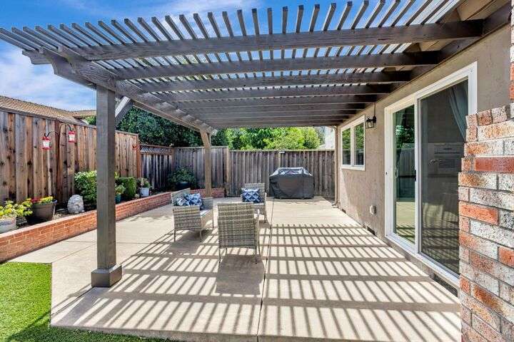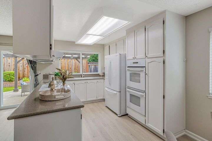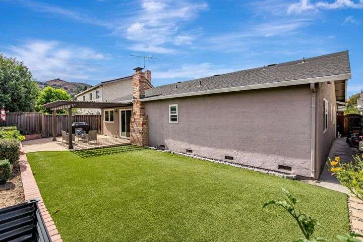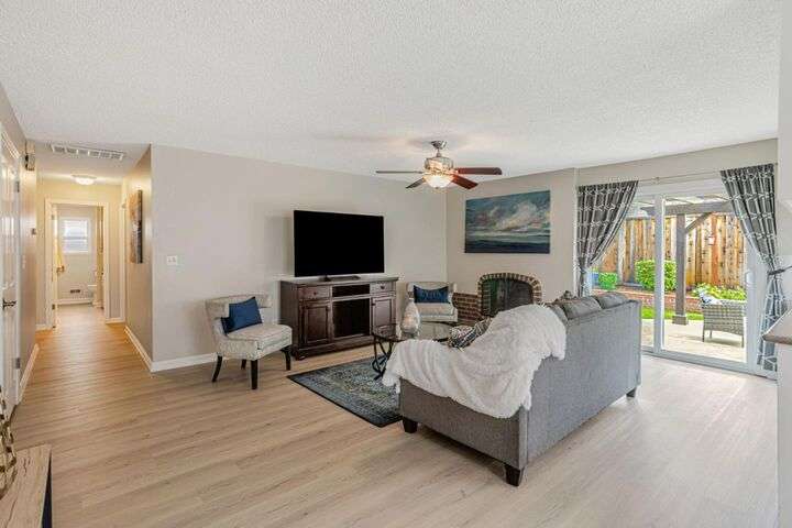 Discover this charming 3-bedroom, 2-bathroom home on the edge of San Jose & the Santa Teresa Hills, County Park & Golf Course. Spanning 1,722 sq ft, this residence offers a spacious and inviting atmosphere with a vaulted ceiling that enhances the open living areas. Enjoy cooking in the well-appointed kitchen featuring ample counter space, white cabinets, double ovens, solid surface counters, & a refrigerator. The living room, dining area and spacious family room provide ample space for gatherings and relaxation. The home boasts new LVP flooring & baseboards throughout, ensuring easy maintenance and a contemporary look. Cozy up by the fireplace on cooler evenings or enjoy the comfort of central AC and ceiling fans on warmer days. The spacious primary suite includes a remodeled bathroom with a stall shower & closet organizer for your convenience. Practical amenities include an in-utility room washer and dryer, and a two-car garage. Located within the Morgan Hill Unified School District, this home is ideal for those seeking quality education options for young learners. Don't miss the newer electrical panel, fencing, & doors, automatic drip & sprinkler system, gazebo style cover over the large patio perfect for entertaining. Access to 81,85,87,101, stores, Kaiser Med, Costco,Library