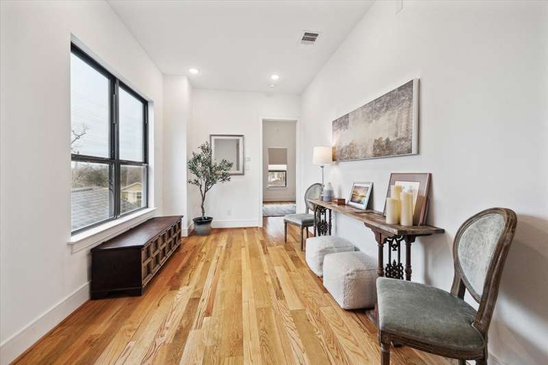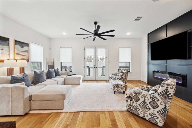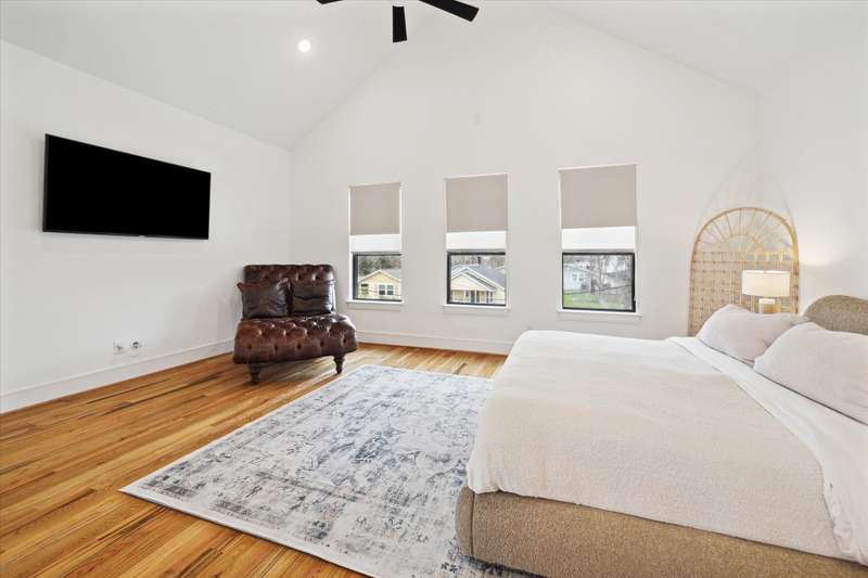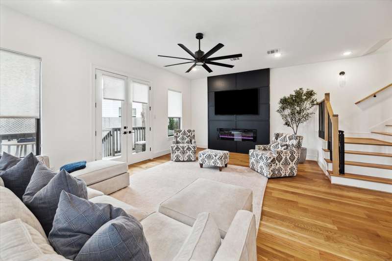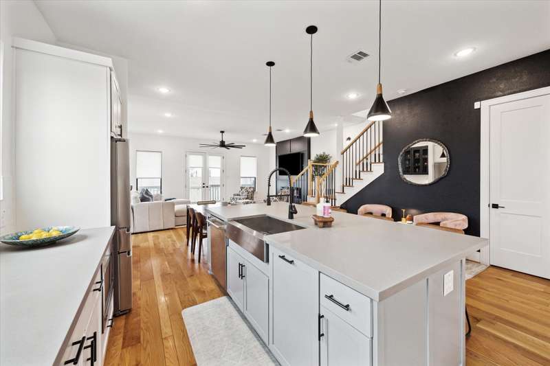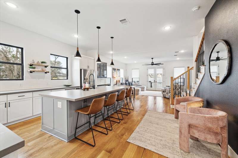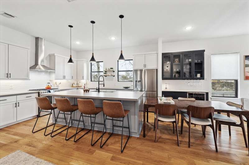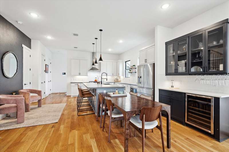 Gorgeous modern farmhouse built in 2022 by DC Pines Homes, loaded with upgrades. This 3-bed, 2.5-bath home features high ceilings, 8-ft doors, reclaimed solid hardwood floors, and an open layout perfect for entertaining. The kitchen offers GE Café appliances and sleek finishes, flowing into the living, dining, and bar areas. Extras include an iron front door, wood/iron staircase, game room or office, cozy sitting area, and a spacious primary suite with double sinks and a large vanity. Seller upgrades: epoxy garage floors, electric fireplace with custom trim, privacy fence, mosquito system, turfed yard, and generator-ready setup. Prime location near Downtown and The Heights. All info per seller