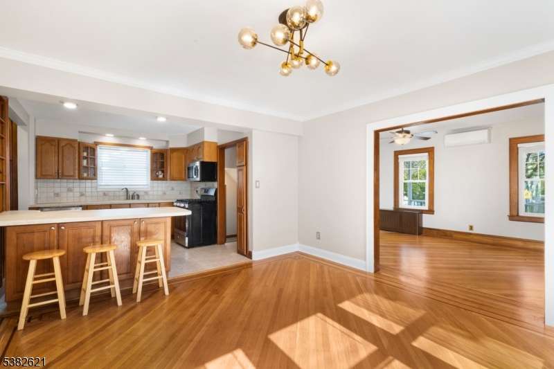 Welcome to this charming colonial that perfectly blends timeless character with modern updates. From the moment you arrive, you'll be greeted by the inviting front porch (newly done in 2024), the perfect spot to relax and unwind. Ideally located in a desirable Nutley neighborhood, this home offers easy access to dining, shopping, schools, and commuter routes. Inside, natural wood details and trim add warmth throughout, complemented by abundant natural light. The main level features a spacious living room with a beautiful brick wood-burning fireplace, a formal dining room with sliders leading to a nicely sized backyard and large deck, a powder room, and a bright, roomy kitchen with brand-new appliances (2024). Upstairs, you'll find three comfortable bedrooms, a full bath, and a walk-up attic accessible from one of the bedrooms ideal for storage or potential future expansion. The unfinished basement offers even more potential or can serve as excellent storage as-is. Additional highlights include a new furnace (2023), fresh paint (2025), and a driveway with ample parking. With its perfect combination of old-world charm and modern upgrades, this home truly is "Home Sweet Home.