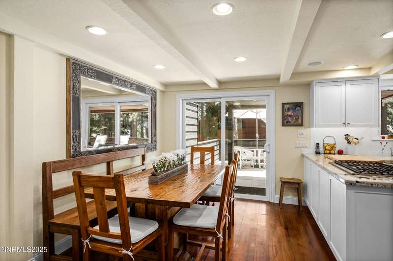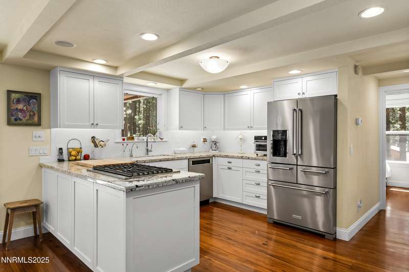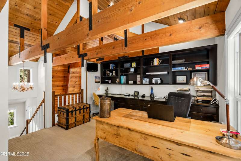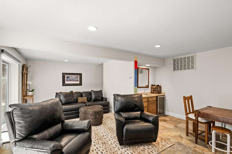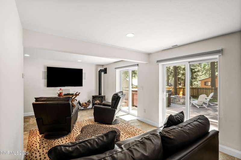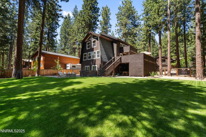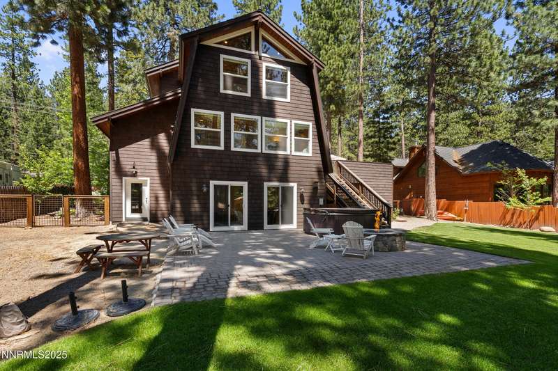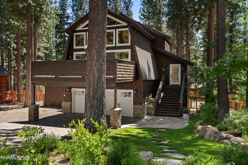 This stunning mountain home offers an ideal blend of luxury and comfort. Situated on a landscaped, level lot, featuring gourmet kitchen with granite counters. Welcoming living room with gas fireplace provides warmth and relaxation, a spacious recreation room opens to a patio with a firepit, ideal for outdoor gatherings year-round. The expansive backyard includes a large grass area, perfect for family activities and enjoying the serene mountain surroundings. High vaulted ceilings and marble floors in the primary bathroom add elegance. Features three full bathrooms, located on separate levels, along with an office offering deck access and a gym. Finished garage with epoxy-coated flooring and paver driveway adds functionality and beauty. Conveniently located near IVGID beaches and the Hyatt, with easy access to local amenities while offering a peaceful retreat in the heart of the mountains. The listing agent is related to the seller, and the seller is a NV broker.