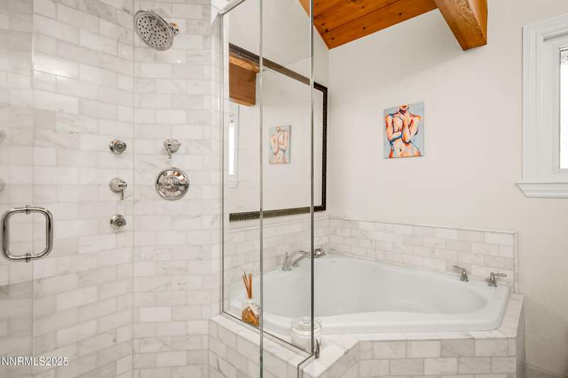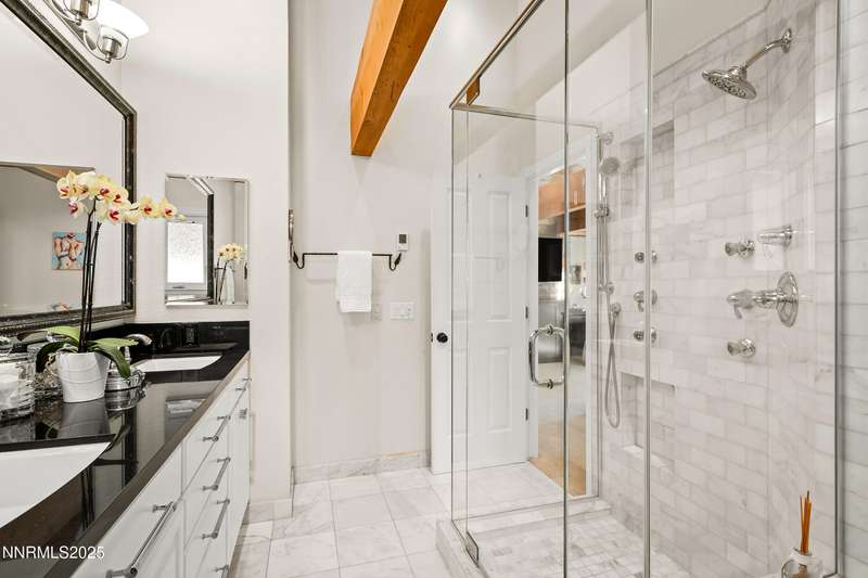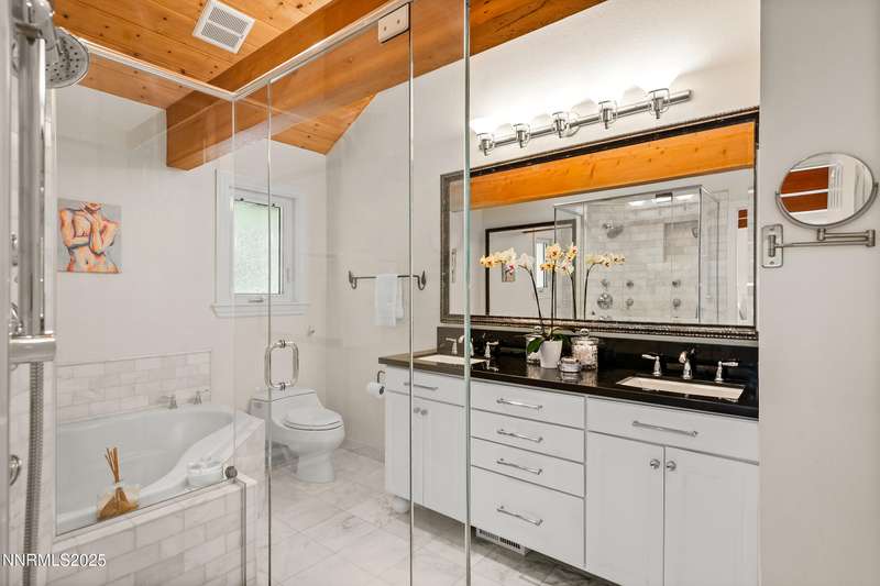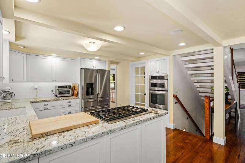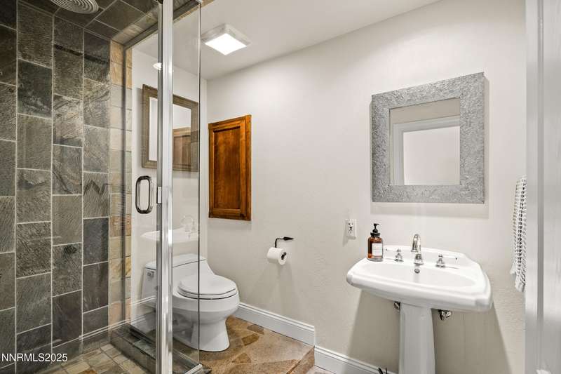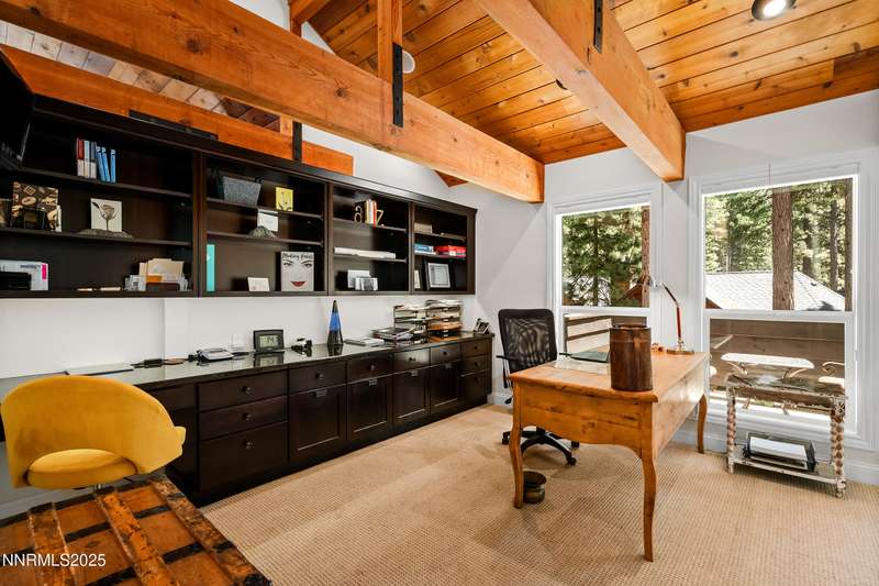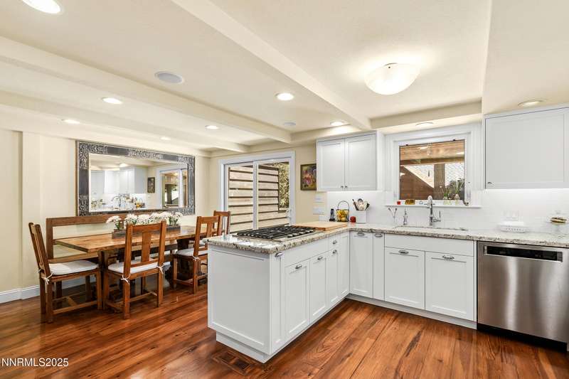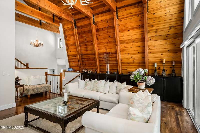 This stunning mountain home offers an ideal blend of luxury and comfort. Situated on a landscaped, level lot, featuring gourmet kitchen with granite counters. Welcoming living room with gas fireplace provides warmth and relaxation, a spacious recreation room opens to a patio with a firepit, ideal for outdoor gatherings year-round. The expansive backyard includes a large grass area, perfect for family activities and enjoying the serene mountain surroundings. High vaulted ceilings and marble floors in the primary bathroom add elegance. Features three full bathrooms, located on separate levels, along with an office offering deck access and a gym. Finished garage with epoxy-coated flooring and paver driveway adds functionality and beauty. Conveniently located near IVGID beaches and the Hyatt, with easy access to local amenities while offering a peaceful retreat in the heart of the mountains. The listing agent is related to the seller, and the seller is a NV broker.
