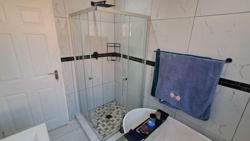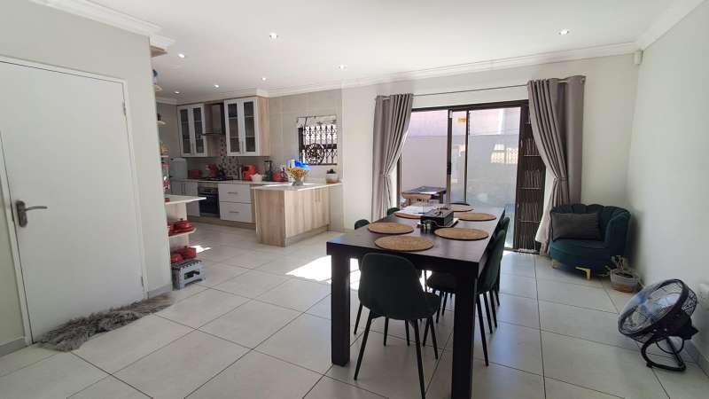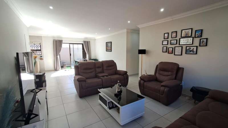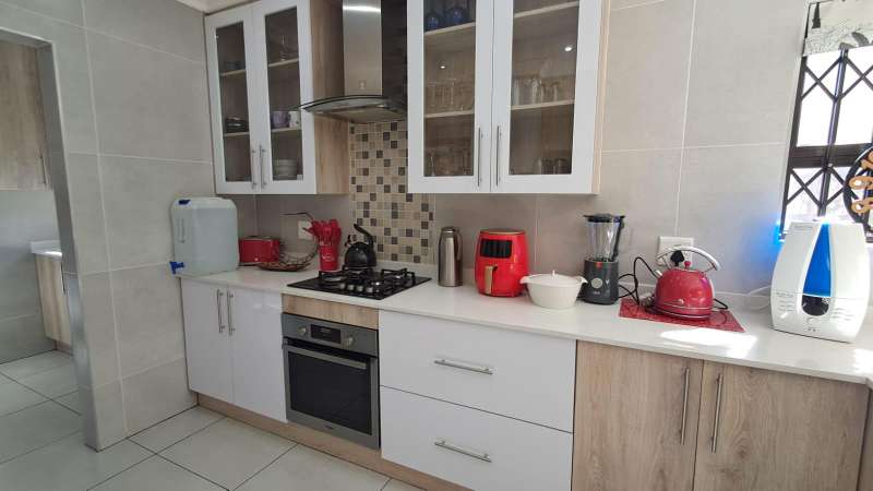 These beautiful clusters were developed recently. Modern with exquisite finishes. Enter into this bright and shiny living space. Open plan lounge with dining area. Kitchen with beautiful cupboard space, granite tops and gas stove. Separate scullery area for convenience and neatness. Tiled floors throughout and security x-panda bars on the windows and doors. Three spacious bedrooms with modern built in cupboards. Two bathrooms both with shower cubicles. At the back is space for a trampoline and to sit outside and enjoy your pet. Double automated garage. Contact Anastasia for a viewing appointment.