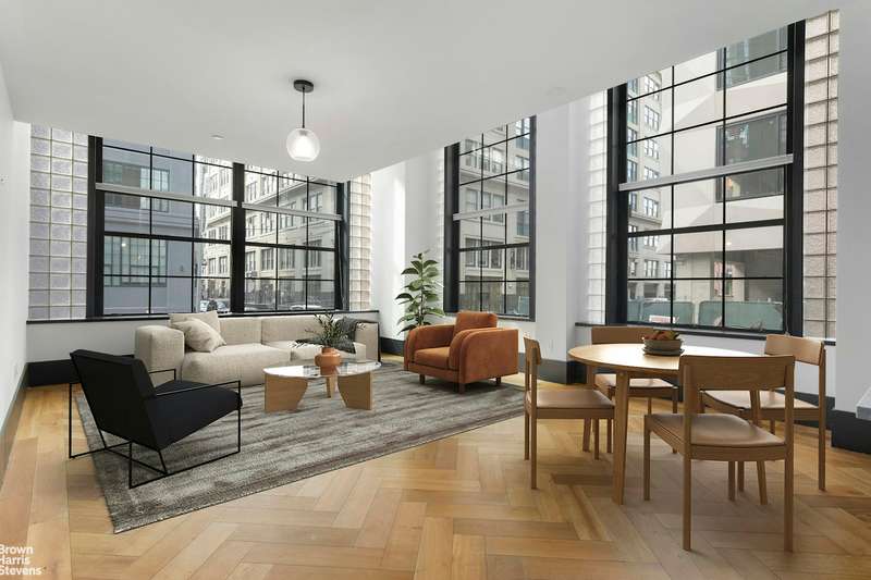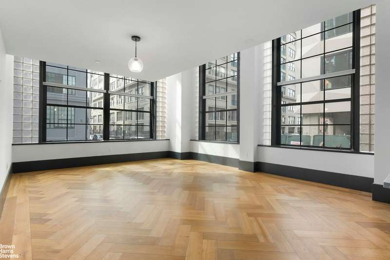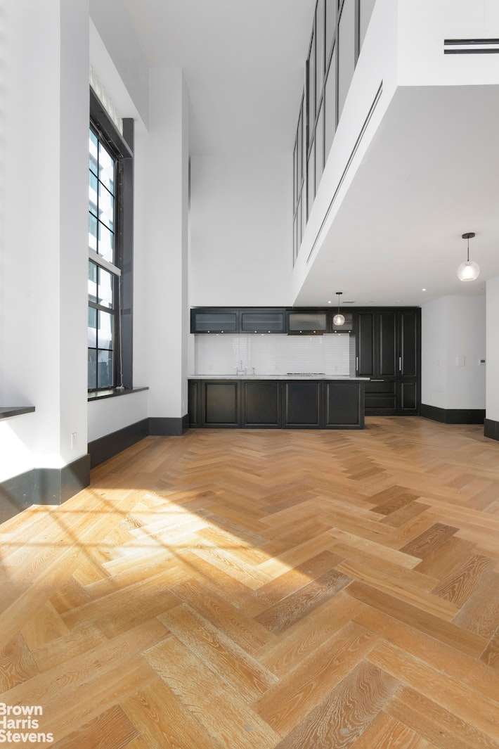 Intensive study went into creating this duplex loft that is both elegantly proportioned and highly functional, a rare combination in warehouse conversions. Looking out over Dumbo's historic streets, this duplex residence is spread over two spacious levels and is loft living at its finest. In a nod to the charm of its industrial roots, the living rooms feature dramatic, double-height ceilings, expansive casement windows, and oak herringbone floors. Bedrooms on the second