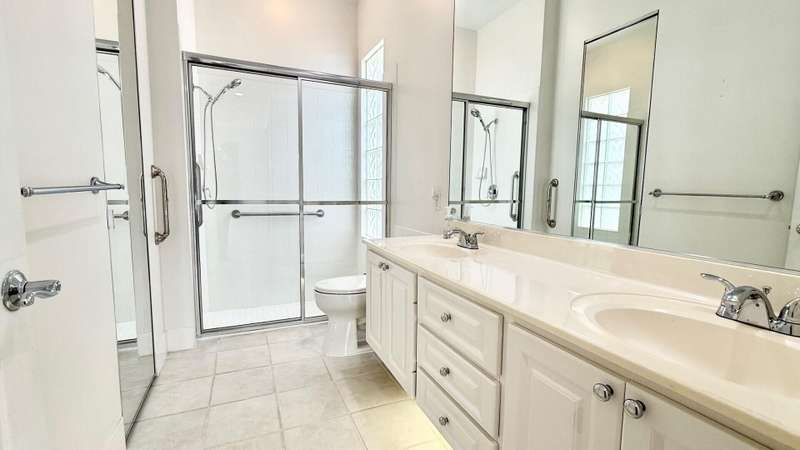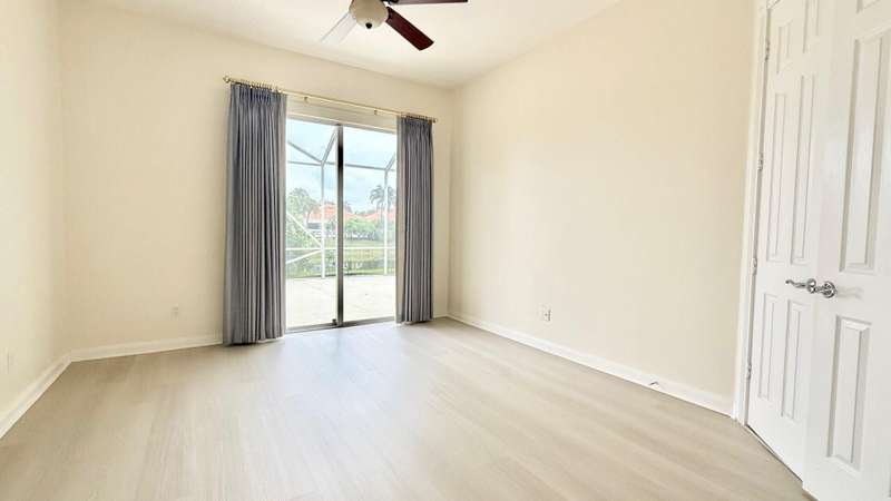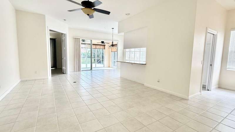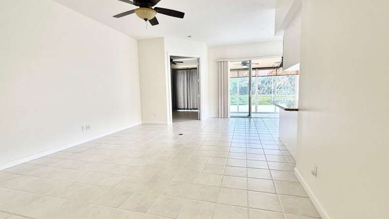 Meticulously maintained 3-bedroom, 2-bath single-family home featuring an open floor plan with 10 ft ceilings and abundant natural light. The spacious glass-enclosed lanai and large screened patio overlook a serene lake, perfect for relaxing or entertaining. Main living areas are tiled, with brand-new luxury vinyl flooring in all bedrooms. The kitchen offers granite countertops and ample storage. Additional highlights include an extra-wide side lot, laundry room with utility tub, accordion storm shutters, central vacuum, and alarm system. Major updates include a new AC (2020) and hot water heater (2021). A move-in ready home with both comfort and peace of mind.