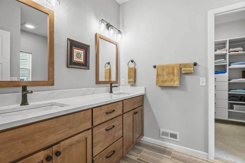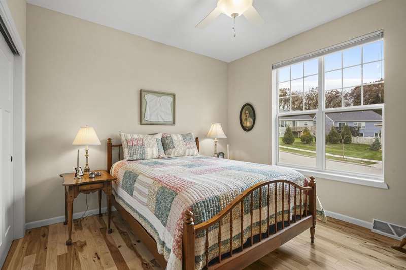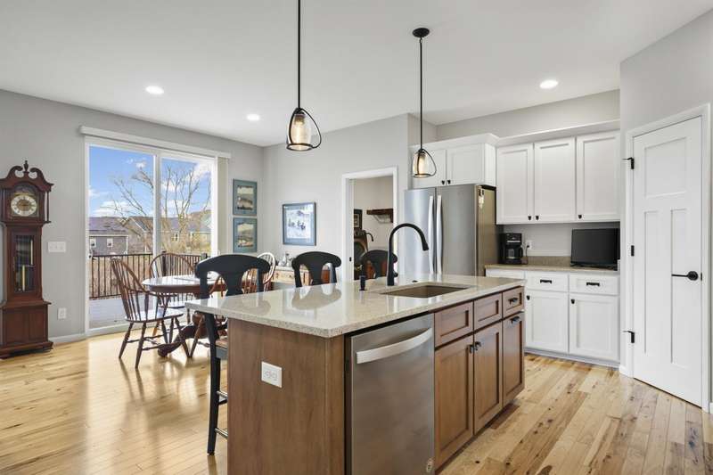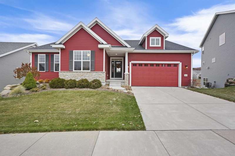 STUNNING best describes this fully upgraded 4BR/3BA ranch in The Village at Autumn Lake. Nearly 2700 sq ft with hickory floors, natural light, & open concept living room w/ gas fireplace. Gourmet kitchen offers quartz counters, pantry, SS appliances, & center island. Primary suite incls newly renovated tile shower, dual vanity, & walk-in closet w/ built-ins. Walkout and fully exposed lower level features a family rm w/ fireplace, 4th bdrm, den, & XL basement storage. Enjoy a maintenance-free deck, paved patio, fenced yard, & green space behind. Main level laundry w/cabinets & sink. Walk to park, lake and amphitheater, & dog park. Sun Prairie schools, close to shopping and easy commute. Expect to be impressed by the many upgrades this one owner has completed during ownership.