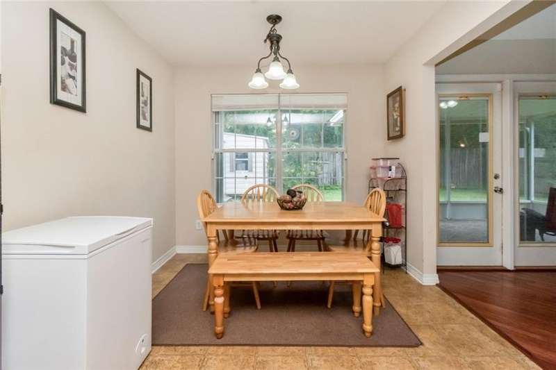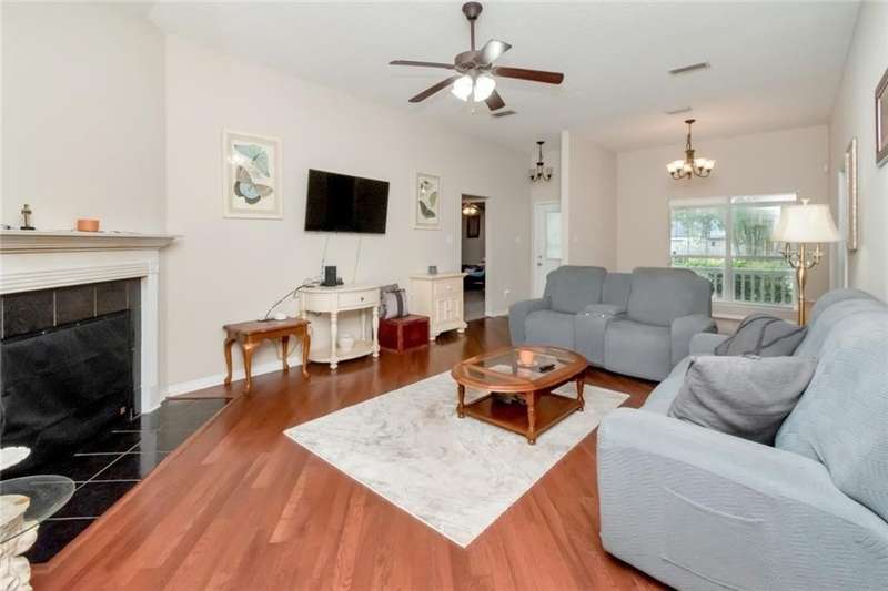 Terrific location in popular Spring Grove near schools, shopping, hospitals, entertainment and more. This home features a split bedroom plan, vaulted and tray ceilings, a gas fireplace, a kitchen with a pantry and a breakfast room - all in an efficient layout. You will love relaxing on the screened porch and the convenience of the additional space in the storage building in the back yard. Smart HVAC was installed in 2023. Home has hurricane shutters and power to the shed. The alarm system covers the house, garage, and shed and has a front door camera and a side yard camera. The third bedroom is currently being used as an office. The home warranty will remain in effect until late 2027. New stove recently installed. The dining room area would make a great reading nook or play area.