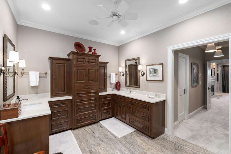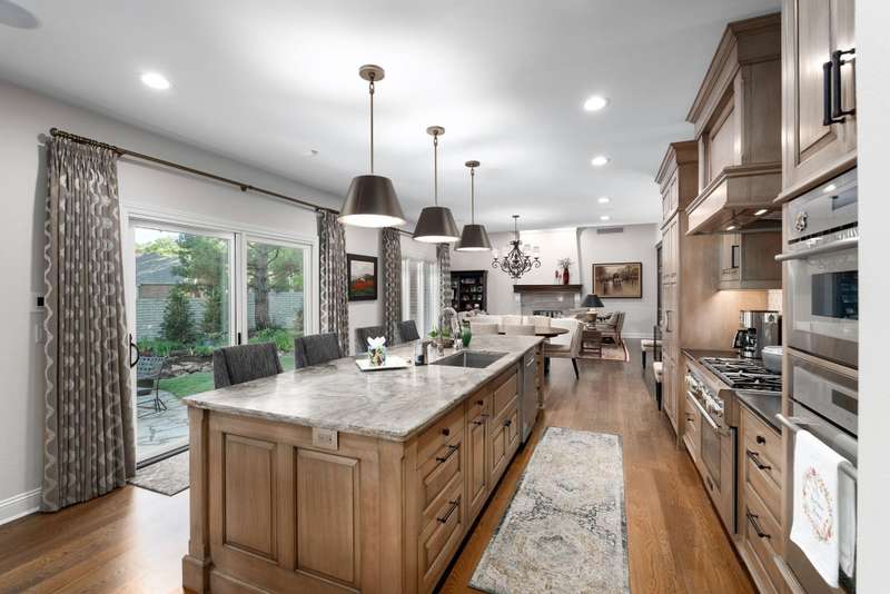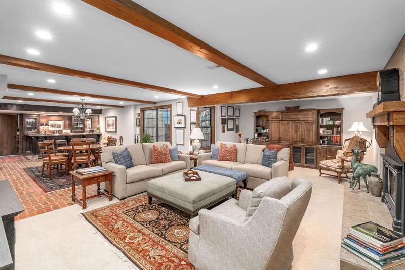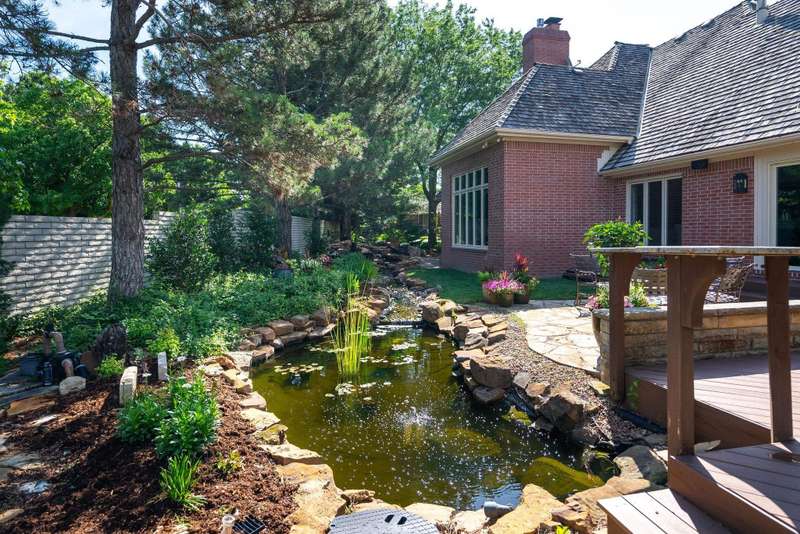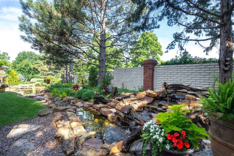 Welcome to this exceptionally updated 4-bedroom, 3.5-bathroom all-brick ranch, where elegance meets comfort in every detail. Nestled amidst lush landscaping in both the front and back yards, 9104 E. Killarney offers an inviting open floor plan designed for seamless living and entertaining. Step into the living room, where you'll find a cozy woodburning fireplace with gas log insert, crown molding, built-in speakers, large windows, and gleaming hardwood floors. The formal and informal dining areas provide versatile spaces for any occasion. The remodeled kitchen is a chefs dream, featuring an oversized island with a breakfast bar, honed quartzite countertops, Thermador appliances, and ample cabinetry. The master suite is a serene retreat, complete with built-in shelves, a TV nook, a fireplace, crown molding, and his and her walk-in closets. The large window frames a picturesque view of the backyard waterfall, creating a tranquil ambiance. The spa-like ensuite bathroom boasts double quartz sinks, a private commode, a walk-in tile shower with a rain showerhead, a tub, and abundant built-ins. A well-appointed laundry room with ample cabinet space, a bedroom with a private bathroom, and a half bathroom complete the main level. Downstairs, discover a spacious family room and a recreation room with charming brick flooring. The wet bar and generous space for your favorite game table make it an entertainer's paradise. Additionally, there's a climate-controlled wine room for your prized collection and a storage room for all your needs. Updates to the home include several key improvements: all windows on the main level were replaced, Medeco locks and keys, the entire main floor underwent a complete remodel with new insulation, new air conditioner, wiring and plumbing. A door and heater were added to the garage, new carpet and a fan were installed in the bonus room, an additional electrical panel was added, and a wine cellar with a cooler and humidifier was created. This home is a perfect blend of luxury and functionality, offering a serene lifestyle. Dont miss the opportunity to make it yours! Seller putting on a new presidential composite roof, new front window being replaced (on order now), and pond has been rebuilt with cinder blocks and should last another 30 years.