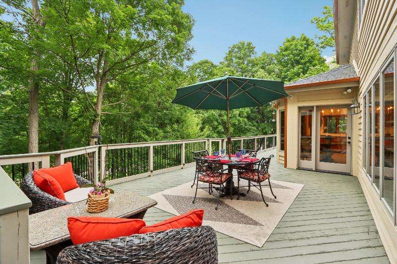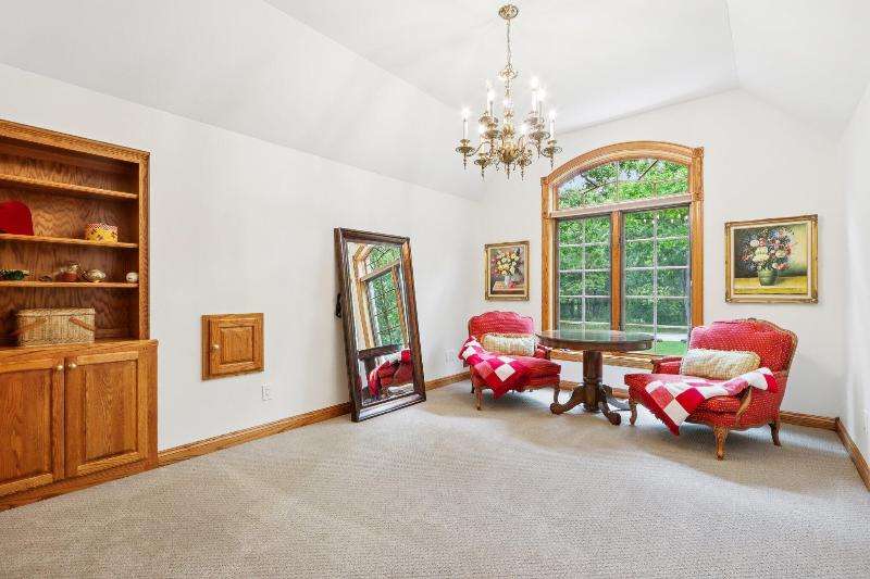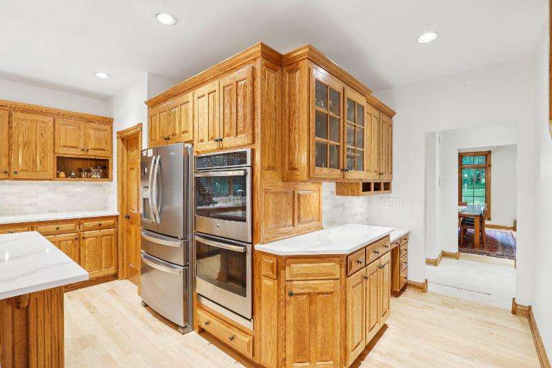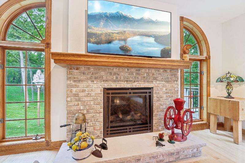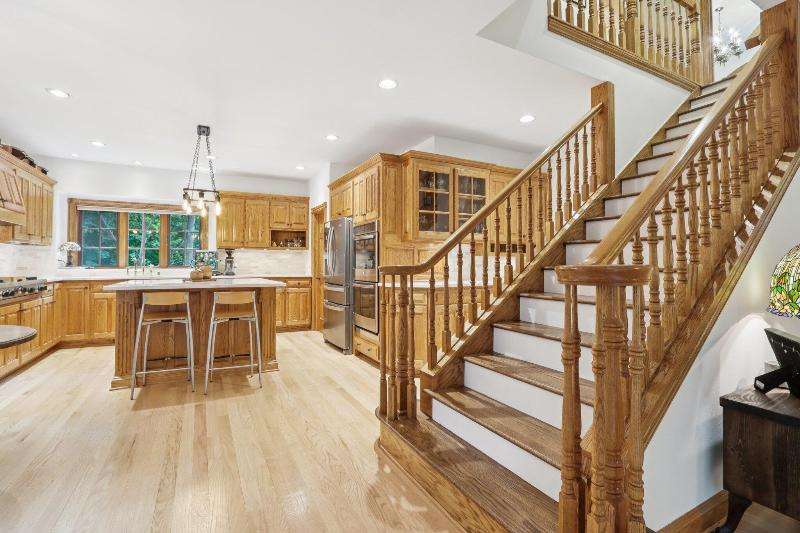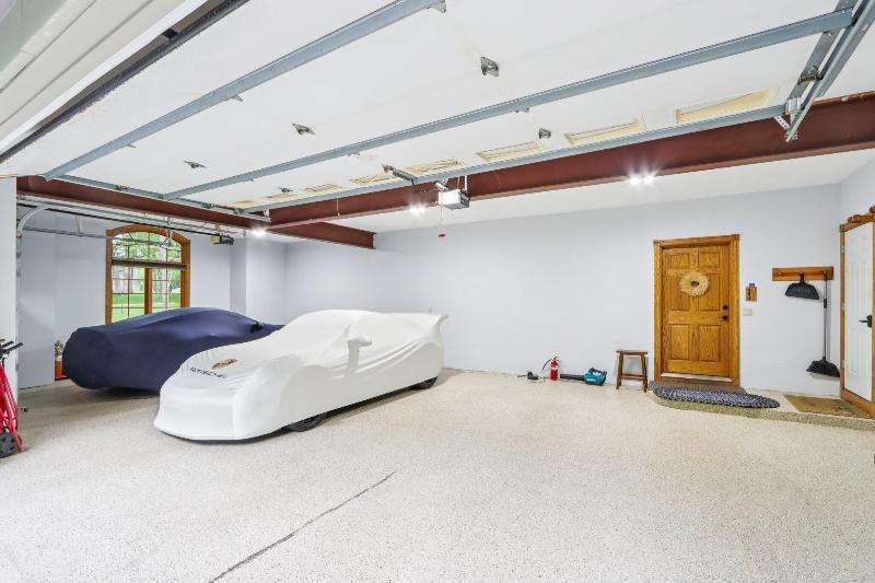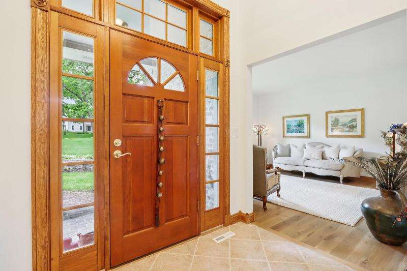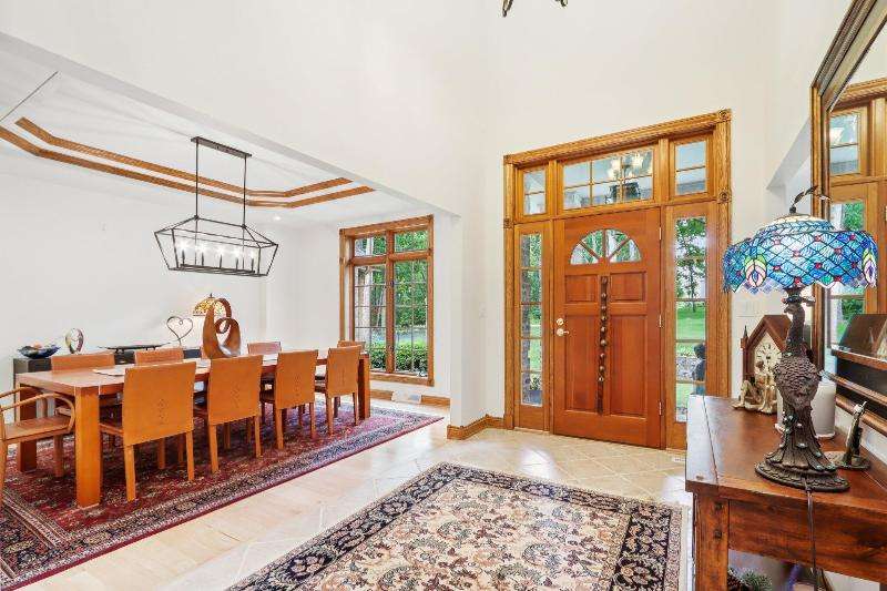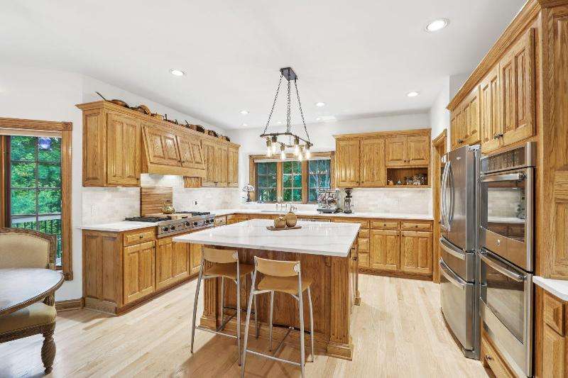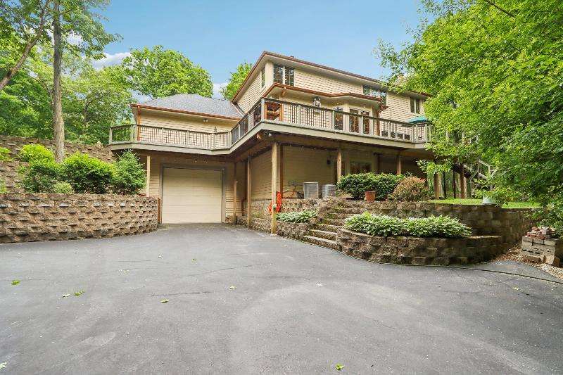 Executive wooded retreat boasts quality finishes in sophisticated tiles, rich woods and chic fixtures. Two-story entry into formal spaces. Large dining room, private office and formal sitting area. Chef-pleasing enter island kitchen with WI pantry, Quartz counters, and dinette with wooded private views of yard. Impressive entertaining spills out to large deck overlooking woods. Open concept design to FR with FP. Upper-level master suite lends loads of morning sunlight. Bedrooms 2, 3, and 4 share a large hall bath. Lower-level entertainment area complete with Billards room, second fireplace in rec room and third full bath. Collect your toys in the lower level 4 car heated garage in addition to the 3.5 car main level attached garage. Updated mechanicals and roof, this one aims to please.