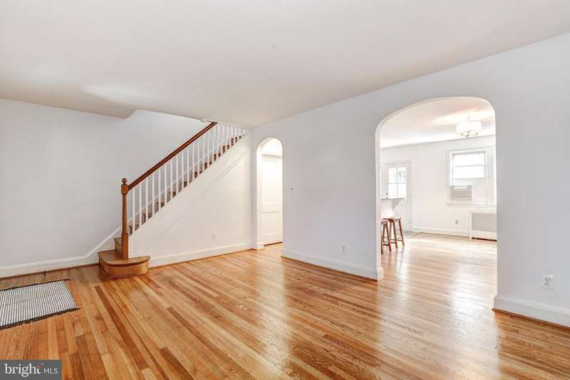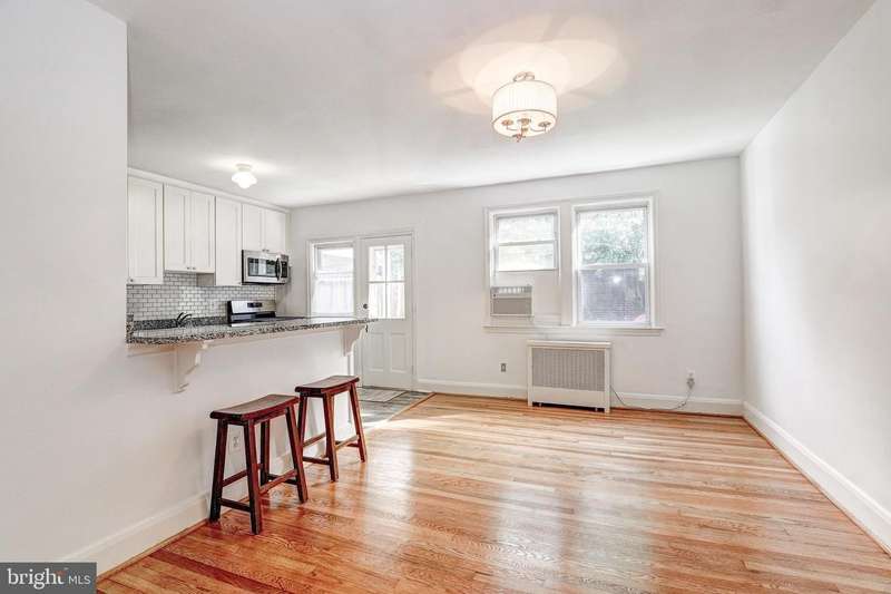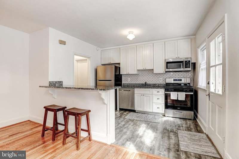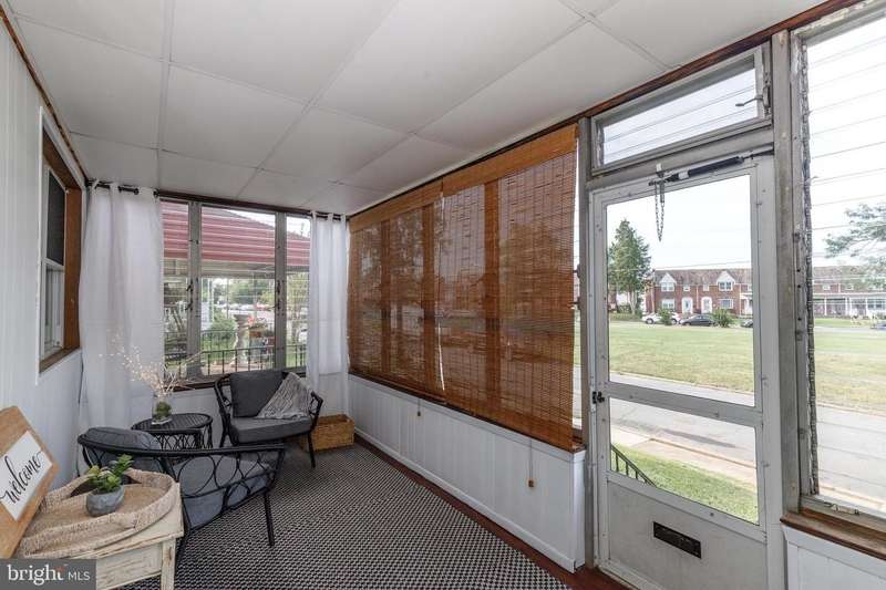 This charming Colonial townhouse in the heart of Dundalk offers a perfect blend of comfort and modern living. Facing the Fairway-Keyway Park, this home has been lovingly maintained and features a warm, inviting atmosphere throughout its spacious interior. Enter through the enclosed front porch with Jalousie windows. Inside you will discover beautiful hardwood floors and luxury vinyl plank flooring that enhance the open floor plan, creating a seamless flow between the living and dining areas. The eat-in kitchen is a culinary delight, equipped with stainless steel appliances, including a built-in microwave, gas range, and dishwasher. Enjoy casual meals at the kitchen island or in the cozy dining area, bathed in natural light from the replacement windows. Upstairs, you'll find three spacious bedrooms and a full bathroom with a tub shower, perfect for unwinding after a long day. The partially finished basement offers additional living space and laundry facilities, with easy access to the outside. Outside, the property boasts a private, fenced back yard . The detached garage and on-street parking ensure convenience for you and your guests. This home is ideal for those seeking a peaceful retreat while still being close to local amenities.