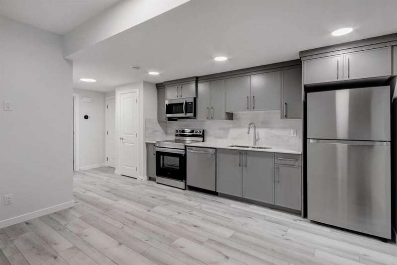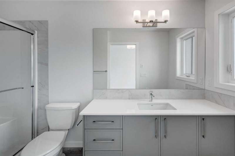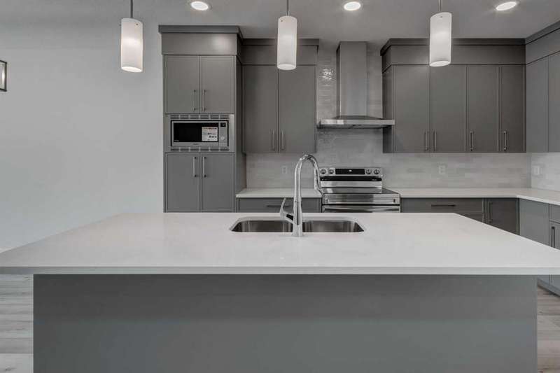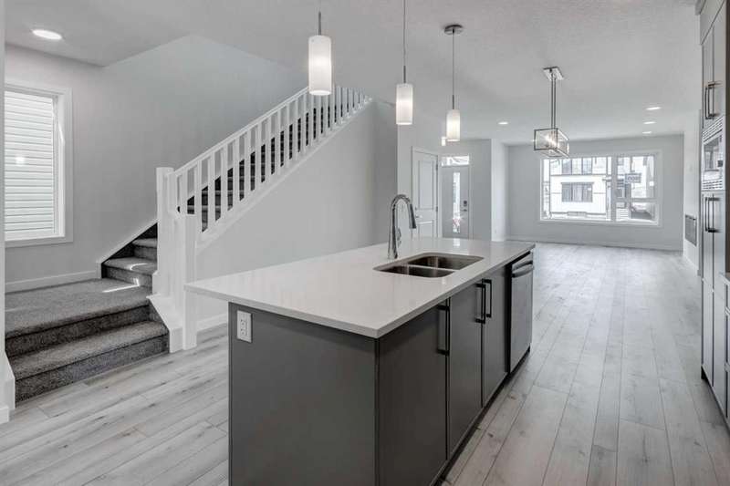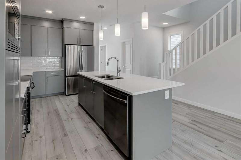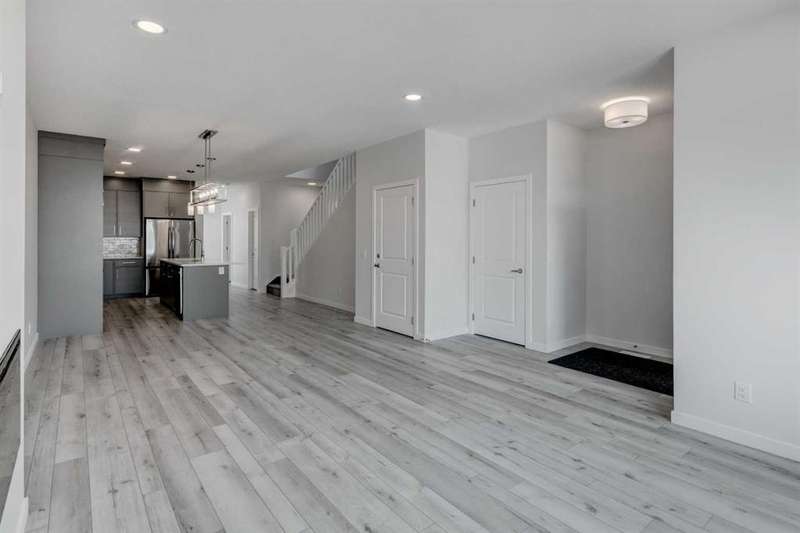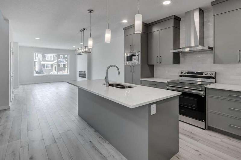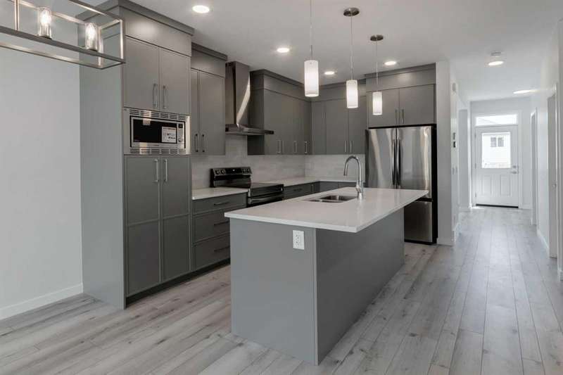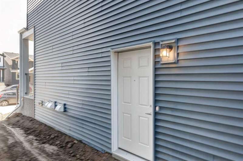 Introducing the COHEN: an amazing, BRAND NEW attached home by EXCEL HOMES offering 1748 SF above grade with a FULLY DEVELOPED, LEGAL SUITE, W/SEPARATE ENTRANCE, TWO BEDROOMS AND FULL KITCHEN. Nestled in the vibrant Northeast community of Livingston. Step into a life of luxury and convenience with this stunning residence, where every detail has been meticulously crafted for comfort and style. Enjoy the benefits of living in an established neighborhood that brings a plethora of amenities right to your doorstep, along with swift access to major highways. The COHEN offers a sprawling 1748 square feet of thoughtfully designed living space, perfect for both families and entertaining. The open floor plan, complemented by neutral designer tones, creates a welcoming atmosphere that is both elegant and comfortable. The chef-quality kitchen stands as the heart of the home, equipped with ceiling-height cabinets, two banks of pot/pan drawers, and upgraded stainless steel appliances, including chimney fan, and built-in microwave. The expansive engineered stone countertops, a large island with seating, and a convenient pantry make it a dream kitchen for those who love to cook and entertain. The main floor also features versatile luxury vinyl plank flooring On the main floor you'll also find a FLEX ROOM that can be used as a home office, guest bedroom or playroom. and half bath for convenience.. Ascend to the second level where leisure meets luxury in the large central bonus room featuring vaulted ceilings & pot lighting — ideal for movie nights and family gatherings. The primary bedroom is a true retreat, boasting a walk-in closet and a spa-like ensuite with stone vanity tops. Additionally, two more generously sized bedrooms provide ample space and easy access to the main bathroom. The convenience continues with a laundry room (w/folding counter), strategically located on the same floor. The possibilities extend into the FULLY DEVELOPED basement - SEPERATE SIDE ENTRY to your LEGAL TWO BEDROOM BASEMENT SUITE WITH FULL APPLANCE PACKAGE. Your suite is built to upstairs standards & offers TWO bedrooms, TWO FULL BATHS, full kitchen w/lots of storage cabinets, SS appliances, PRIVATE LAUNDRY, vinyl plank flooring. Step outside to a southeast-facing backyard that's perfect for relaxation and outdoor activities & your deck is already built. Don't miss the chance to own this never-lived-in gem with quick possession available. Experience the blend of luxury, comfort, and convenience in Livingston—welcome to your new dream home at the COHEN. This home will include front & back yard sod and a 20x20 gravel parking pad. Also includes complete interior sprinkler system to main and upper floors!
