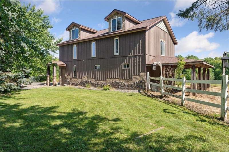 STUNNING 9.97-ACRE HORSE & HOBBY FARM LOCATED IN MAPLE GROVE!!! Bring your horse and hockey skates and enjoy all that this unique property has to offer. As you enter through the wrought iron gate you’ll be greeted by the impressive stone fountain, beautiful brick home and gorgeous nature views. The exquisite detail and craftmanship is evident in each room of this home. From the soaring vaults, custom oak woodwork and high-end finishes, this home has so much to admire. Enjoy relaxing on the deck while overlooking the serene nature views of the pasture or unwind under the covered porch or gazebo with trellis. Imagine skating on your very own ice rink complete with hockey boards and a warming house. The barn is the real showstopper in which every detail has been carefully planned and executed. A shed large enough for all your equipment and toys is a bonus. This home is a must see for anyone wanting to live in the country with all the conveniences Maple Grove has to offer.