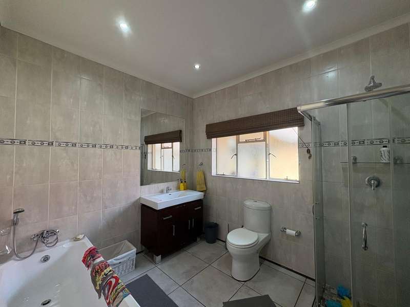 WE?ÇÖER LOOKING FOR THAT - Special New Owner . This Stunning 5-Bedroom Family Home ensures comfort for the whole family BONUS - Solar system with 10 panels, 2 inverters, and 2 batteries - Solar geyser plus 2 electric geysers - JoJo water tank for backup water supply - Computerized irrigation system - Water cooling system and ceiling fans THIS PROPERTY OFFERS ?Çó 5 Bedrooms ?Çó 3 Bathrooms. ?Çó Stylish Kitchen ?Çô Modern open-plan design with granite tops, gas hob, electric oven, scullery, and pantry ?Çó Laundry ?Çó Study ?Çó Open-Plan Living ?Çô and dining areas with seamless flow to the garden ?Çó Sparkling swimming pool, and entertainment spaces. ?Çó Inviting braai area overlooking the pool ?Çó Lush garden with computerized irrigation system ?Çó Double garage with electric motors. This Property is fenced and secured with Electric Fencing and alarm system Phone us to view this Property Don?ÇÖt miss this opportunity to make Monument Heights your home!