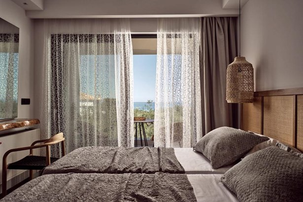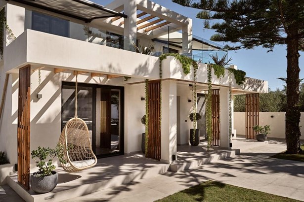 Located on Zakynthos' serene eastern coast, this stunning 5-bedroom, 5-bathroom villa offers 300 sqm of elegant living on a 1,700 sqm plot. Designed for up to 10 guests, it features a spacious open-plan living area, a fully equipped kitchen, and en-suite bedrooms, including a master suite with a sea-view balcony and private jacuzzi.