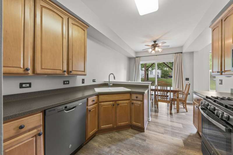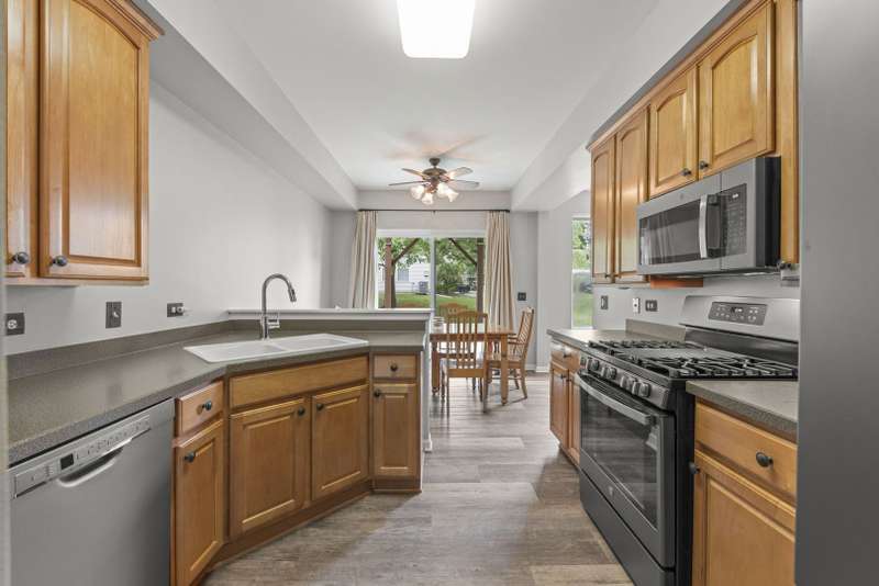 Spacious First-Floor Condo with Modern Updates and 2-Car Garage! Welcome home to this beautifully updated first-floor condo offering 2 bedrooms, 1 full bathroom, and an attached 2-car garage. With 1,188 square feet of living space, this home combines comfort, convenience, and style. Step inside to find an inviting open layout with new wood laminate flooring throughout the main living areas and fresh paint (2025). Both bedrooms feature brand new carpet, creating a warm and cozy retreat. The kitchen was completely remodeled in (2020), boasting modern cabinetry, updated flooring, and stainless-steel appliances, perfect for cooking and entertaining. Washer and Dryer replaced in (2020). Major mechanicals have all been recently replaced for peace of mind, including a new furnace and A/C (2023) and a new water heater (2023). The building itself has seen significant upgrades: new siding and gutters (2023), a new roof (2024), and a freshly replaced asphalt driveway (2025). Conveniently located near shopping, dining, and everyday amenities, this home is move-in ready with nothing left to do but enjoy.