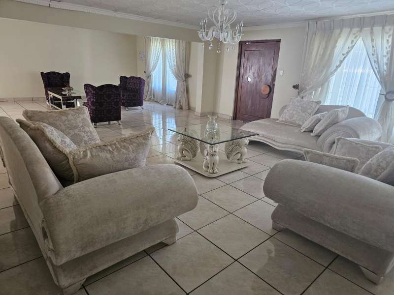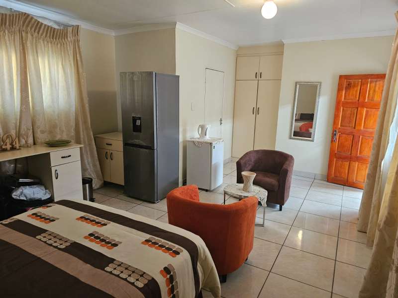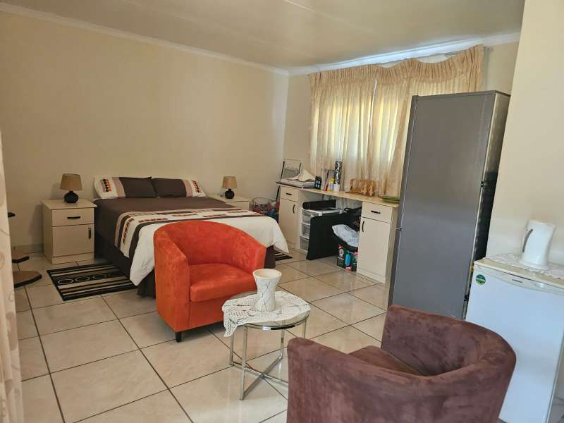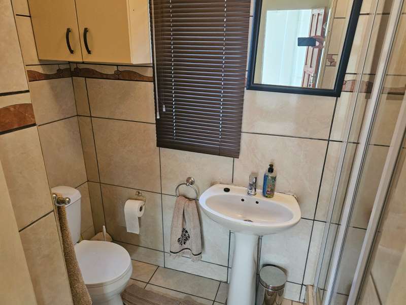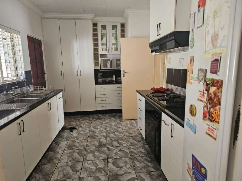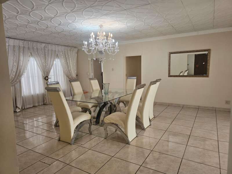Step into spacious elegance with this stunning 3-bedroom, 2-bathroom property nestled on a generous 891 sqm stand. Featuring a light-filled ambiance and impeccable neatness, this home is a sanctuary of comfort and style. The open-plan living areas, including a welcoming dining room, create an inviting space for entertaining or relaxing with loved ones. Prepare to be captivated by the gourmet kitchen adorned with sleek granite countertops and a convenient under-counter oven, perfect for culinary enthusiasts. Retreat to the expansive main bedroom, a haven of luxury featuring an ensuite bathroom and ample built-in cupboards, ensuring a clutter-free sanctuary. Step outside onto the charming patio, where you can unwind while soaking in the serene views of the meticulously landscaped garden—an oasis of tranquility right in your backyard. With 2 spacious garages, parking is never an issue. But that's not all—this property boasts two additional bachelor flats, each with its own bathroom, offering versatile options for guests, rental income, or a home office. Don't miss this opportunity to make this dream home yours—schedule a viewing today and embark on a journey to your perfect living space!