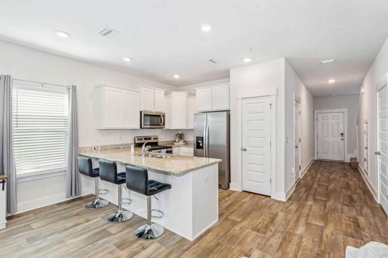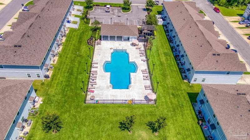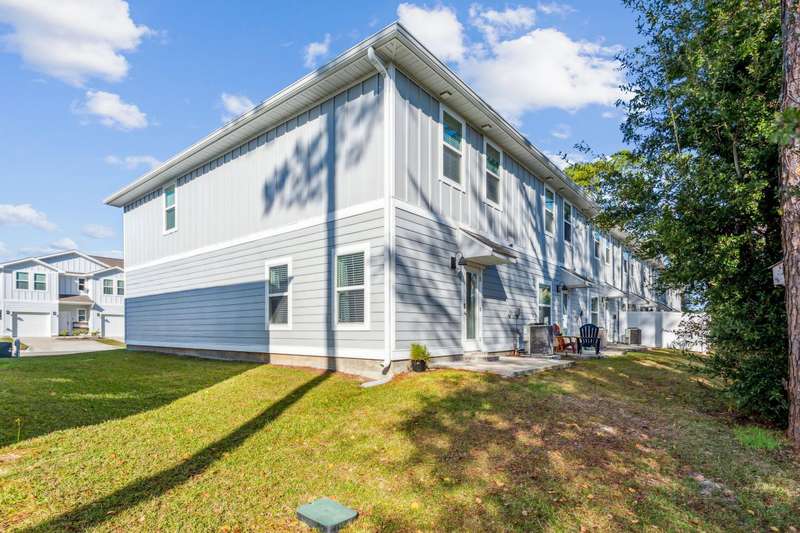 **OPEN HOUSE: Sat, 11/22, 10AM-1PM** Welcome to this charming corner townhome in the heart of Pensacola! This bright corner-unit townhouse offers 3 bedrooms, 2.5 bathrooms, and a 1-car garage, seamlessly blending modern amenities with serene natural surroundings. Spanning 1,440 sq ft, the open floor plan is an entertainer's delight with a kitchen that features white cabinetry, light granite countertops, stainless steel appliances, a pantry, and a large breakfast bar. It flows easily into the expansive living and dining areas, with wood-look luxury vinyl plank flooring and ceiling fan, creating a warm and inviting atmosphere. A powder room on the main floor adds convenience for guests. Step outside to your back patio, where tranquil wooded views provide a peaceful backdrop. The area can be easily fenced, offering additional privacy and a perfect space for outdoor relaxation or entertaining. Upstairs is a generous Primary Suite featuring a large walk-in closet and ceiling fan. The adjoining en-suite bathroom has a walk-in shower, dual sinks with granite countertops, and a handy linen closet. Two additional spacious bedrooms with ample closet space and ceiling fans share a well-appointed second bathroom with a bathtub/shower combo. The conveniently located upstairs laundry room comes complete with a washer and dryer that convey with the property. Additional features include 2-inch wood-like blinds on all windows, fabric hurricane protection for all openings, and a Smart Home Connect system featuring keyless entry, enhancing both security and convenience. Residents of Admiral's Quarter enjoy access to a large community pool, perfect for unwinding on warm days. The prime central location offers close proximity to shopping, dining, medical facilities, Naval Air Station Pensacola, Navy Federal Credit Union, Baptist Medical Park, and the University of West Florida, making commutes and daily errands a breeze.