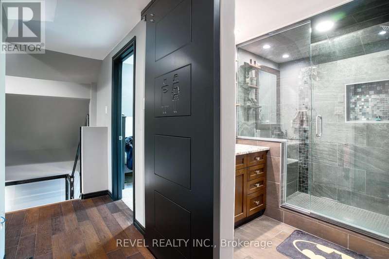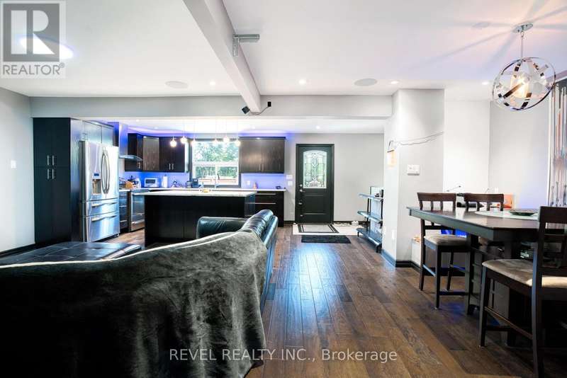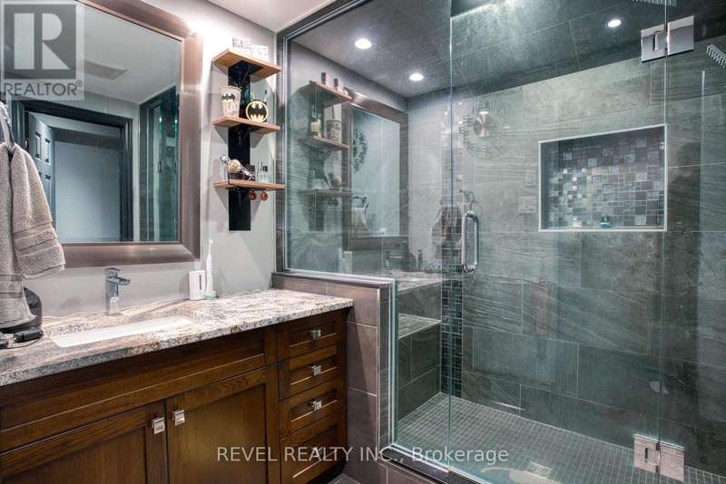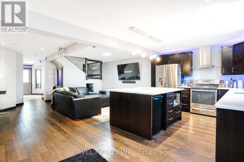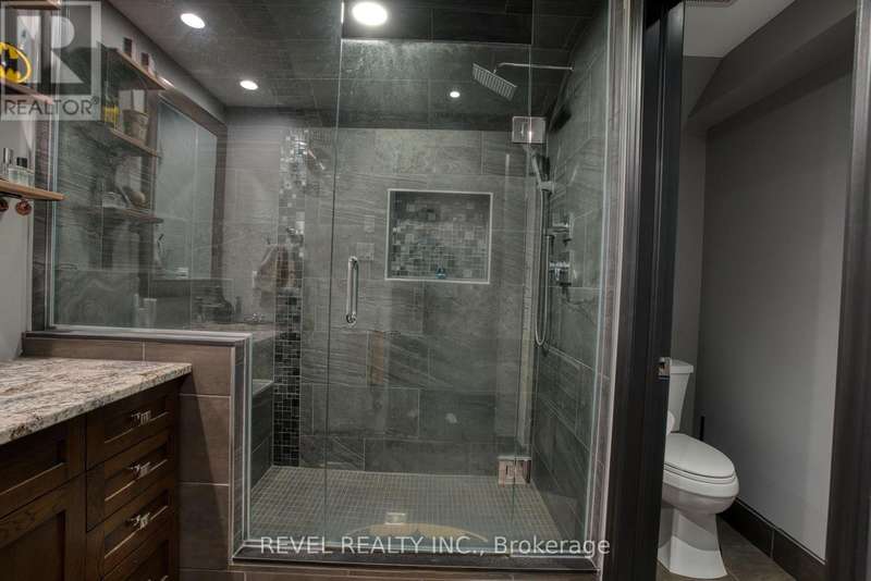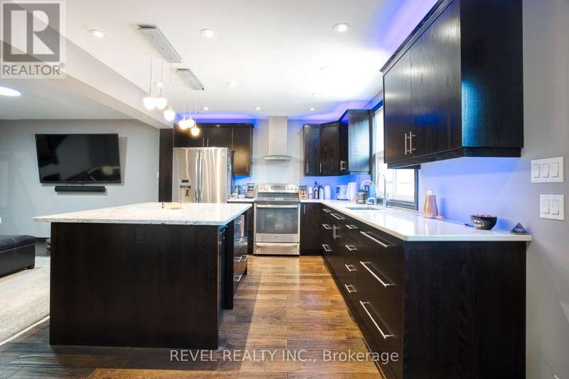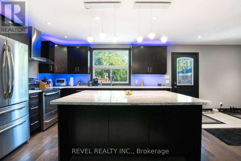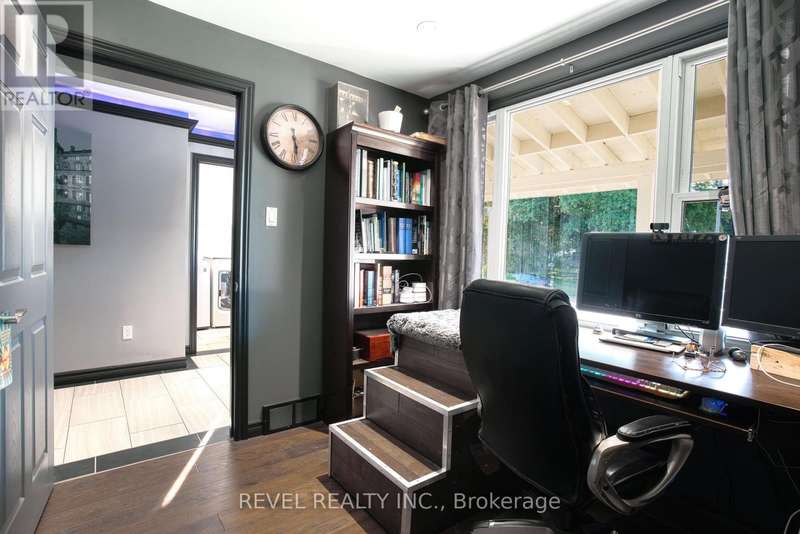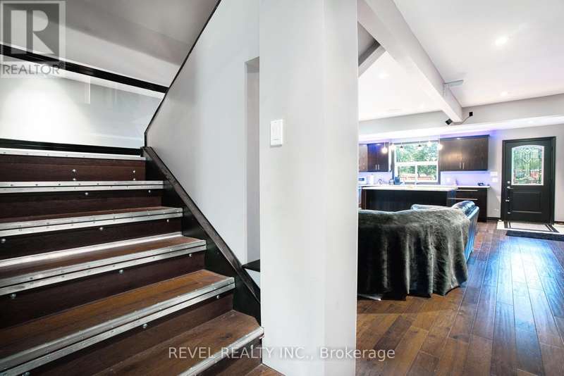 Where style and function come together to support your next chapter...this thoughtfully designed home answers the call. The chef's kitchen shines with sleek dark cabinetry, stainless steel appliances, and a cambria quartz island. The space is illuminated by carefully curated ambient lighting - perfect for crafting everything from weekday dinners to epic gatherings! The open-concept living space effortlessly balances comfort and sophistication, leading to a spacious primary suite offering generous closet space designed to keep up with a life well-equipped. Upstairs bedrooms offer serene retreats, while a dedicated home office is ready to be a brilliant control centre. Outside, a deep 503-foot lot stretches to a peaceful creek, providing a quiet backdrop for relaxation or entertaining. The custom-lit patio, putting green, and fully equipped workshops invite creativity and leisure alike. This is more than a home - it's a sanctuary designed for those who appreciate both style and substance, a place where every detail is in its rightful place and prepared to ease your mind or spark your next adventure. (id:7434)