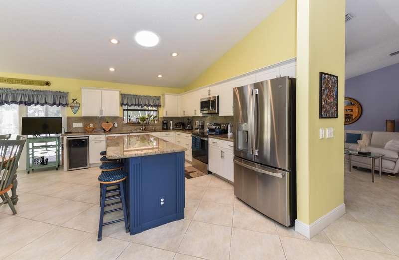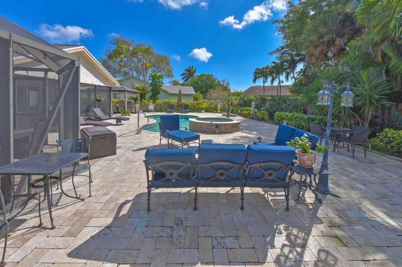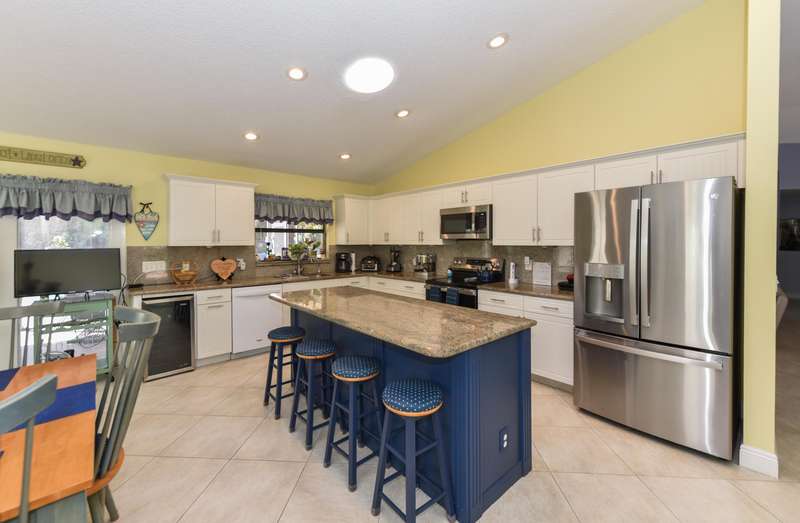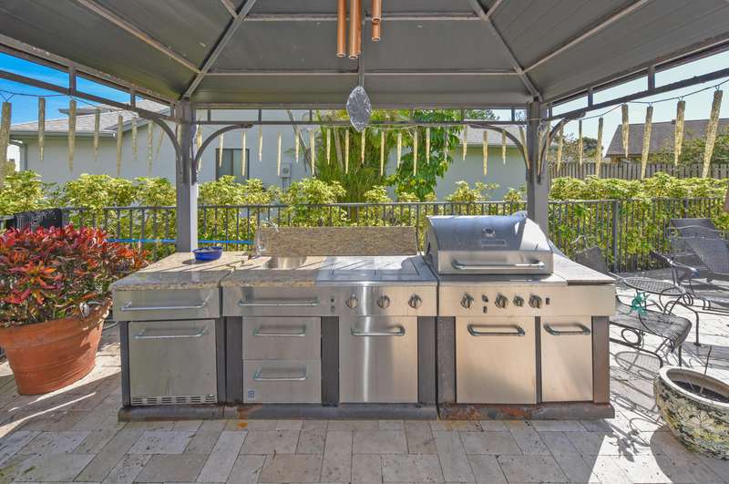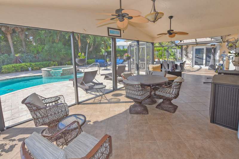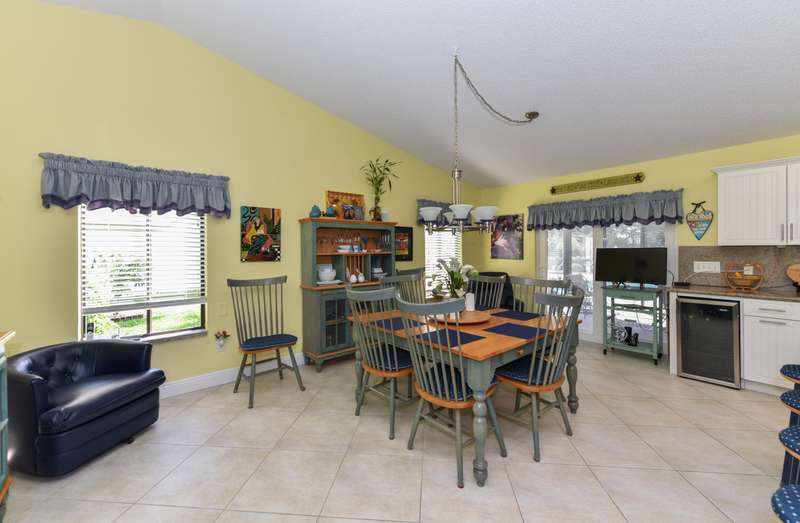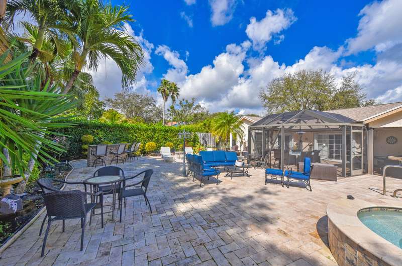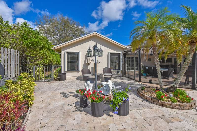 Rainberry Bay is an adult community with bocce, tennis, pickleball, and many other activities at the clubhouse. This furnished turnkey home offers 2 bedroom 2 and a half baths located in the estate section of Rainberry Bay. It has a great floor plan for entertaining and enjoying the private back oasis. There is an additional guest space, pool, sauna, and outdoor kitchen for year-round entertaining in Florida. 2 outdoor screened patios. 1 covered and 1 open. Rent includes internet, cable, electricity up to $175/month, monthly house cleaning and pool service. This a 24-hour gated community. 2 car garage, washer and dryer in laundry room inside, extra long driveway.This home has it all!