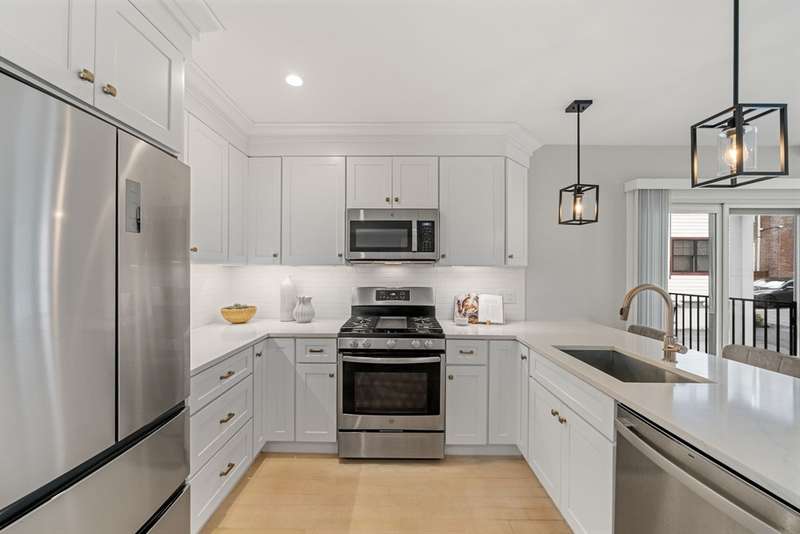 Step through your private entry into this newer construction, corner luxury townhome. Offering the perfect blend of modern finishes w/ timeless design, this stunning residence features 2 spacious levels, parking & 3 private outdoor spaces. The light-filled living room has a mantled fireplace w/ a tile surround, large windows & an adjoining deck leading to a fenced patio. The open kitchen boasts statement pendants, sleek appliances & quartz counters w/ a waterfall-edge bar for 3, plus space for a dining table. A stylish powder room completes this floor. Upstairs are 2 suites: one w/ a deck, the other w/ a showpiece Murphy bed providing flex space for a home office or gym. Two full baths offer a bespoke glass shower & soaking tub w/ brushed gold finishes & exquisite tiling. Plus: hardwood floors, central AC, in-unit W/D, a Sonos sound system & private basement w/ storage. Located minutes to the S. End & downtown, as well as Longwood, Harvard Medical, Northeastern, I-93 & Logan Airport.
