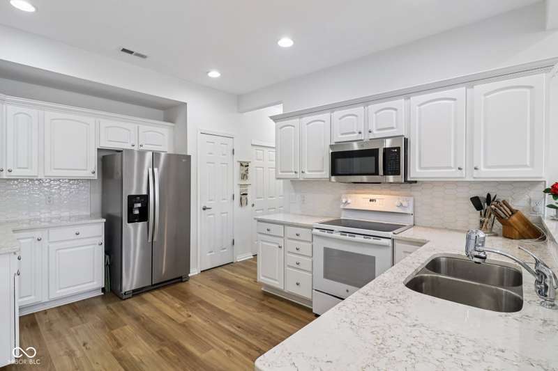 Spacious, Bright and Freshly Updated Condo with Privacy and Large Living Spaces. Many Stylish Updates include new luxury vinyl plank flooring throughout the main floor, new carpet on the stairs and 2nd level. New Quartz Kitchen and Bathroom Counters. Sparkling Tile Backsplash in the Kitchen. New Microwave and Refrigerator. New Remote-Controlled Ceiling Fans. Low-maintenance home offers a private patio with colorful perennials. Gas fireplace in Great Room with cathedral ceiling. Large Open Kitchen with white cabinets and lots of counter/cabinet space. Separate Laundry Room. Each level has a primary bedroom with a private bath. Take your pick! 2 Bedrooms on the main level, and a 3rd Bedroom upstairs with a large walkin closet and ensuite bath. Popular The Villas at Oak Ridge is close to shopping, grocery store, restaurants and schools. Clubhouse and pool are included along with lawncare and building maintenance. 2 car garage with additional attic space for storage. Ready to move in! Floor Plan and 3D Tour are linked in supplements.