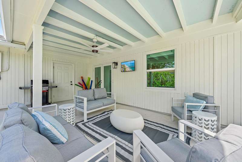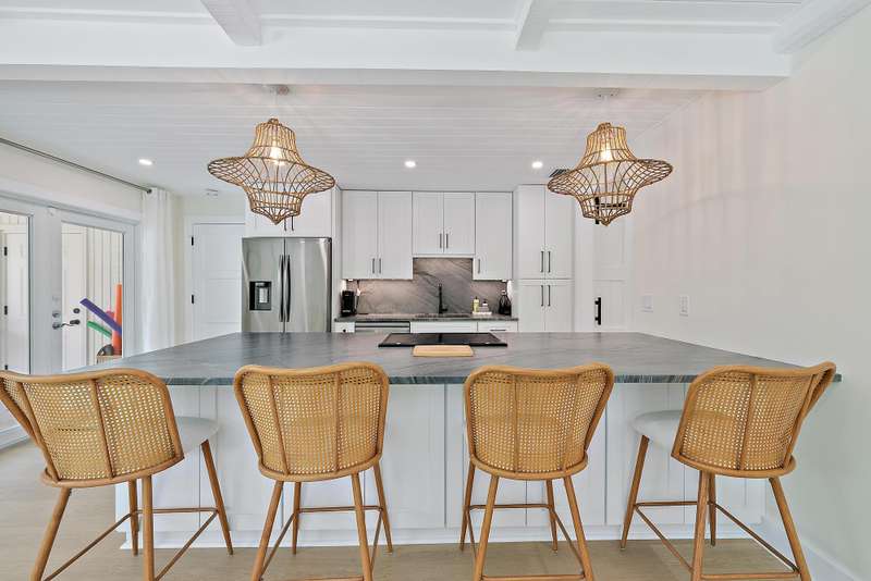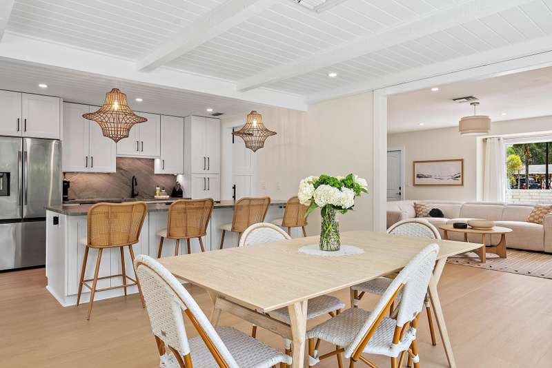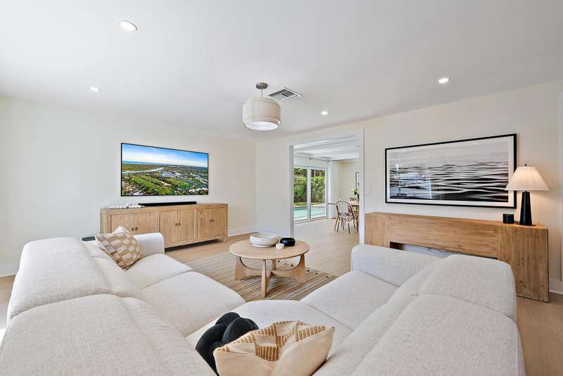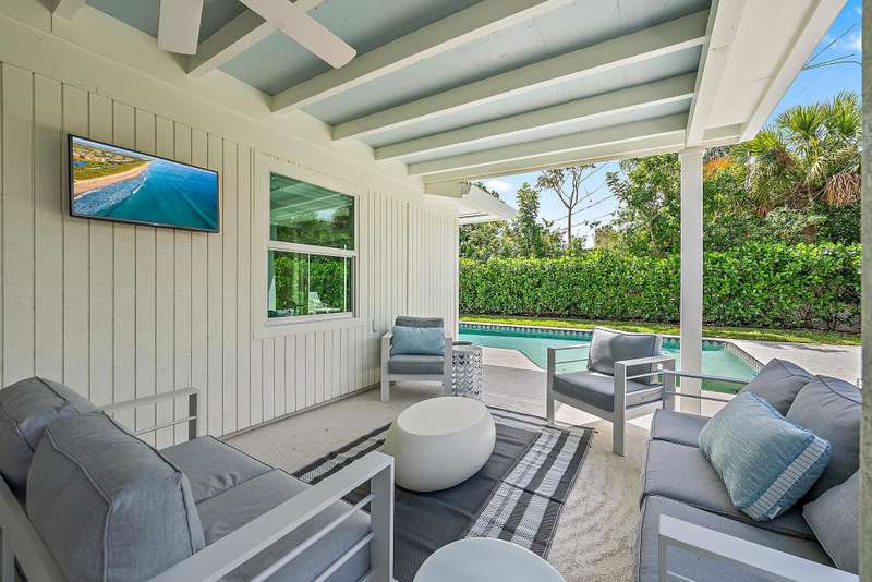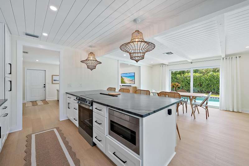 Fully furnished turnkey OFF-SEASON rental (NOT an annual or seasonal) Available starting August 1 through December 31st 2025. Charming beach cottage in Tequesta is the ultimate Florida dream getaway. Tastefully renovated, packed with modern upgrades, and perfectly positioned to soak up the coastal lifestyle. Featuring three bedrooms and two bathrooms, this light-filled home offers a spacious open floor plan complete with built-in shelving and thoughtful design throughout. The expanded kitchen is a true showstopper, boasting custom cabinetry, quartz countertops, and brand-new appliances. Both bathrooms are equally stunning, featuring designer tile work, double vanities, and modern fixtures.