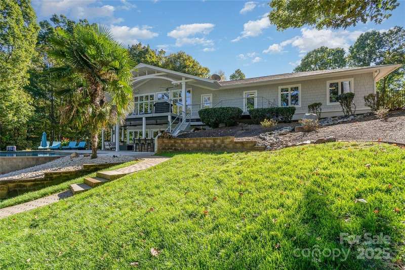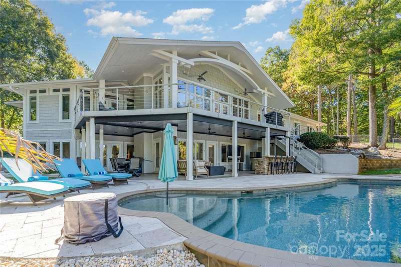 Simply Stunning and Pristine Oasis. This BEAUTIFUL 3 Bedroom 3.5 Bath waterfront home is ideal for home buyers seeking an updated modern yet classic design home retreat on a large lot & location extraordinaire with NO HOA. The list of features is extensive. Main level Primary Suite featuring it's own private deck and a spacious spa like shower and a relaxing soaking tub. Chefs kitchen area with high end appliances and a bonus 100 bottle wine refrigerator and Miel coffee station. Main level Flex room with new built in Murphy bed. Incredible long range water views from a multitude of rooms on all levels and an expansive main level wrap around deck. Two lower level bedrooms suites with generous walk in closets and a family room space with new wet bar. Let's go outside for an incredible NEW outdoor kitchen and gorgeous newly converted salt water infinity pool. New propane tank (buried), new lower level LVP, new paint throughout including garage, new under deck ceiling, new gutter leaf guards, new vapor barrier in crawl spaces, ,water softener show the care recently given to this beautiful gem. Owners currently in process of dock permit transfer.