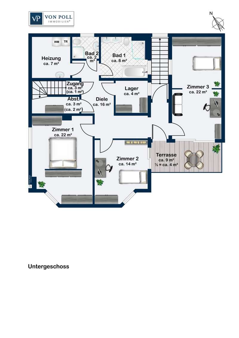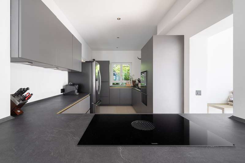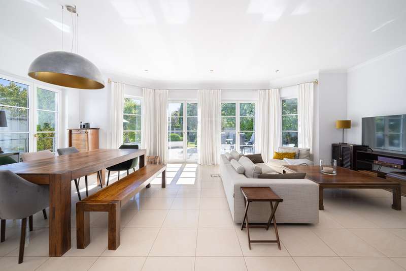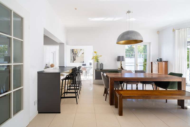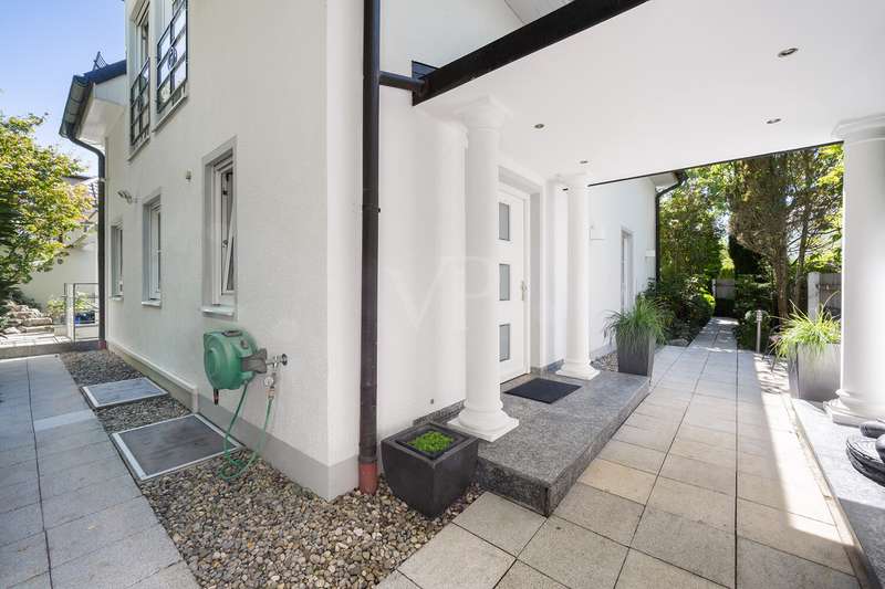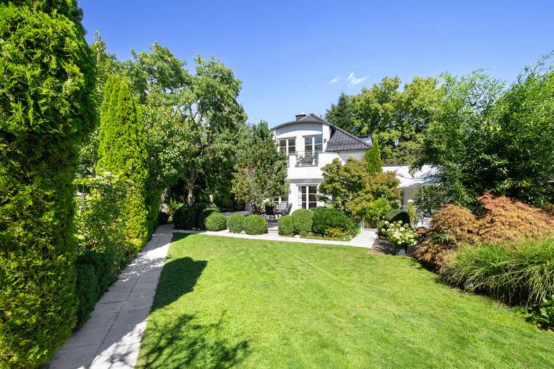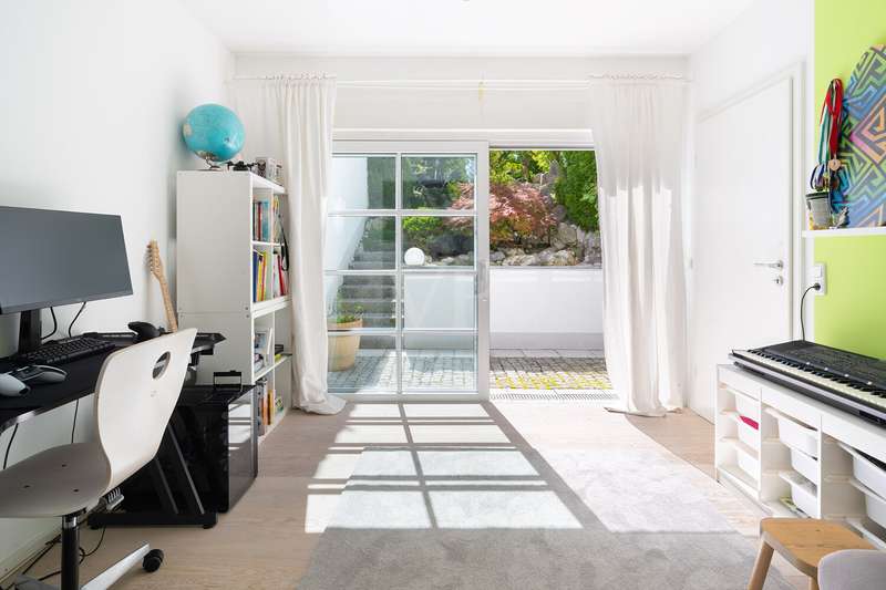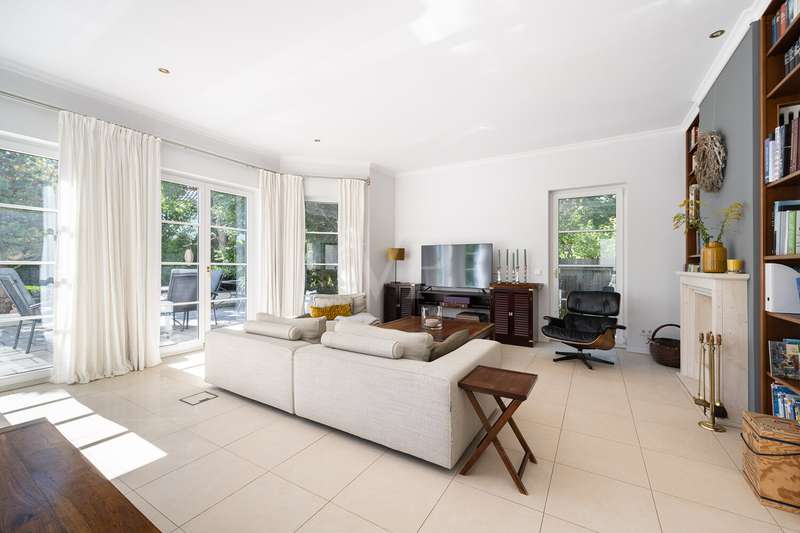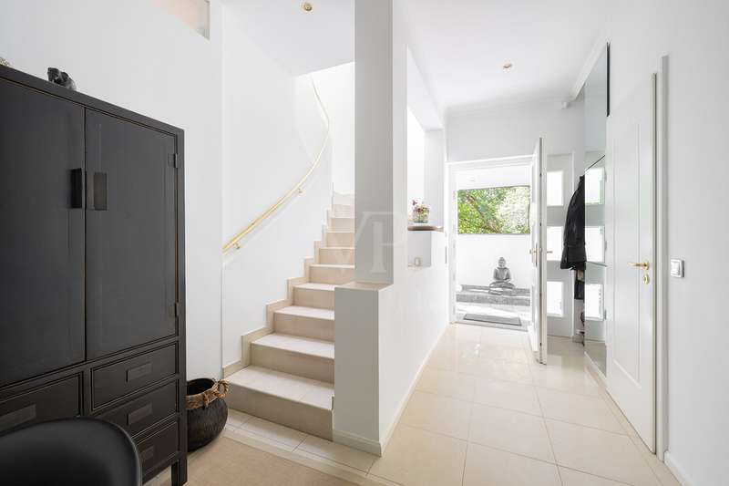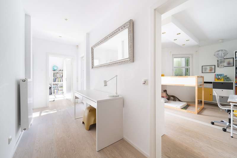 Welcome to your new home! A very well-maintained detached house built in 2002 that combines modern living in a quiet location with high-quality furnishings. The living space of approx. 257 m² is distributed over a well thought-out room concept that allows for many living ideas and offers a high level of comfort. The house is situated on a plot of approx. 628 m² and impresses with maximum privacy. Thanks to the secluded garden area and the well-tended south-facing garden, you can relax here without disturbance and enjoy absolute seclusion. The detached house, completed in 2002, impresses with its high-quality fittings and is in a very well-kept condition. As soon as you enter, the spacious hallway conveys an inviting feeling of living. The first floor is characterized by the spacious living/dining area, which receives plenty of natural light thanks to large windows and is equipped with a fireplace. The fireplace creates a cozy atmosphere in the colder months of the year. There is direct access to the spacious south-facing terrace with awning, which is ideal for socializing outdoors. The stylish, newly designed kitchen is equipped with high-quality BORA built-in appliances and meets the highest standards of functionality. The open-plan design makes this area a meeting place for family and guests. An additional room is currently used as an office and is seamlessly connected to the kitchen and living/dining area. From here you have access to the covered outdoor area on the north side. A guest WC and two checkrooms are also available on the first floor. The upper floor currently has a bedroom, a spacious bathroom with bathtub and shower, a bright and friendly living/dining area and an open kitchen. A use with two or three bedrooms and/or one or two bathrooms is also conceivable and possible - so there are a variety of possible uses. The artium in the basement also provides additional, fully usable living space. Two bedrooms with floor-to-ceiling windows as well as a bathroom and guest WC are available here. There is also an individually usable hobby room. You will also find plenty of storage space and the heating and laundry cellar. The successful room layout offers every generation enough space to retreat and develop. Further features include modern central heating, an alarm system and a spacious double garage. The well-tended south-facing garden was laid out according to Feng Shui and creates a natural living atmosphere with mature trees and plenty of space. The use of the two terraces also opens up numerous possibilities, for example for barbecues or quiet hours in the countryside. The quiet location makes this house a retreat from everyday life, without having to forego good connections to infrastructure and local amenities. The neighborhood is characterized by detached houses in a mature environment. Here you benefit from a familiar, friendly atmosphere. This detached house not only impresses with its size and location, but also with its high-quality and well thought-out fittings. See for yourself and arrange a viewing appointment to get to know your future home in person. This offer provides numerous prospects for couples, families and all those who value a well-kept environment with a wide range of possible uses.