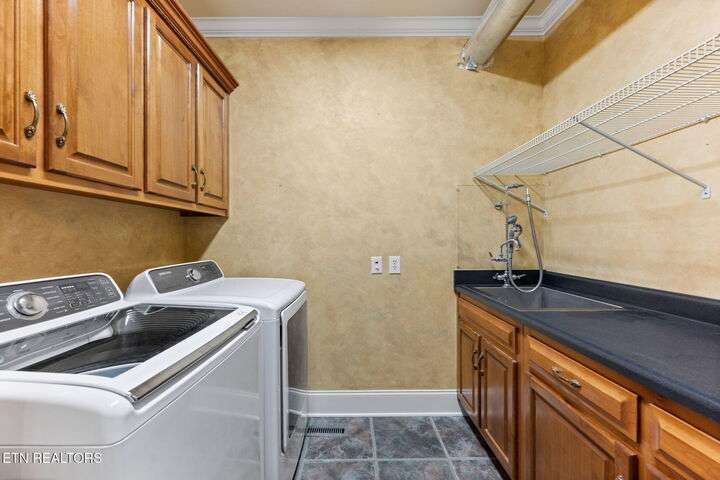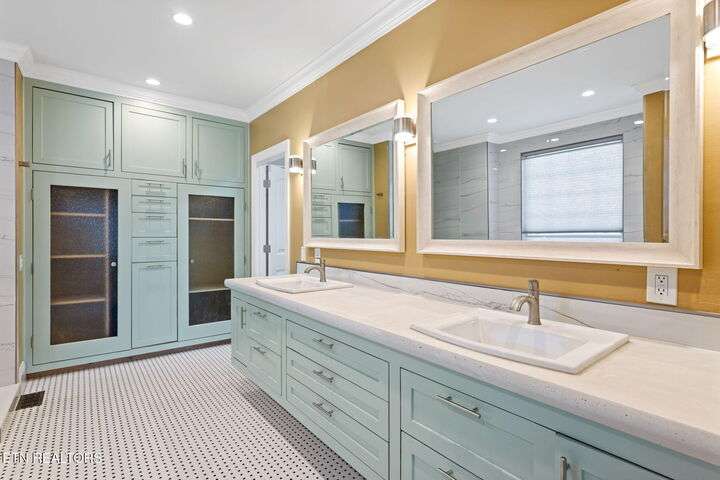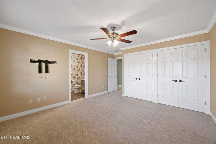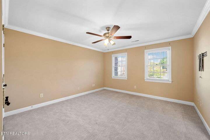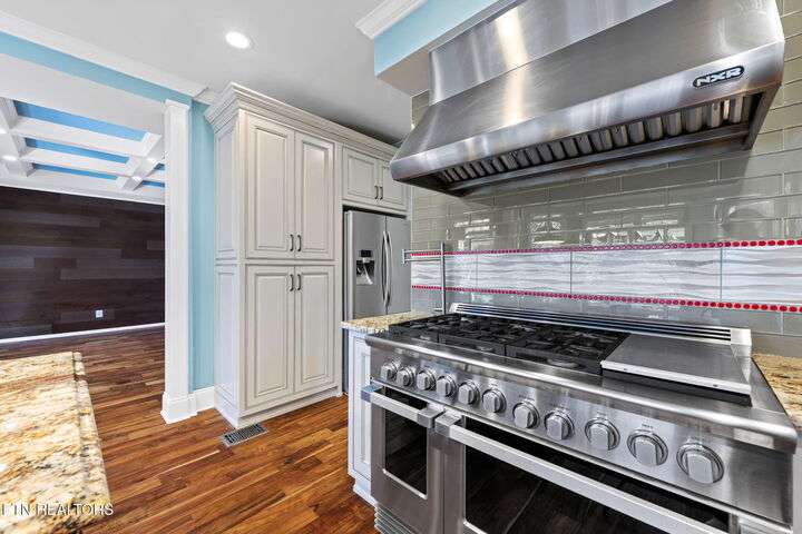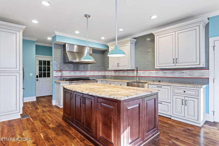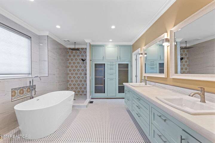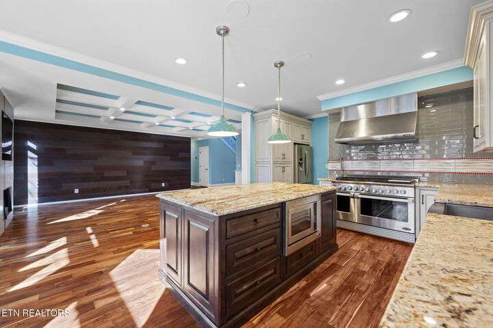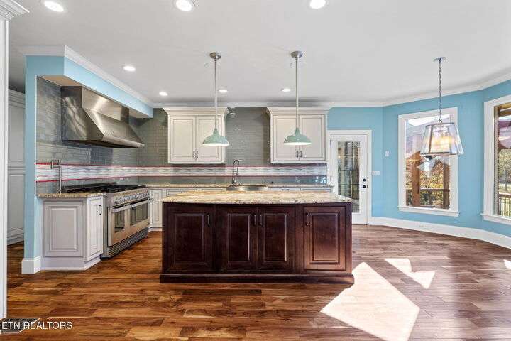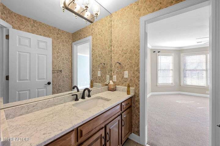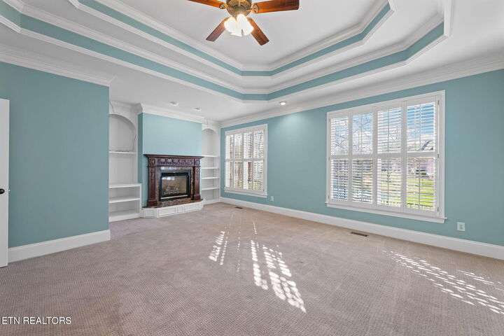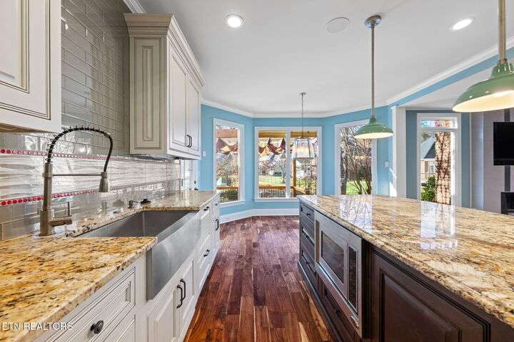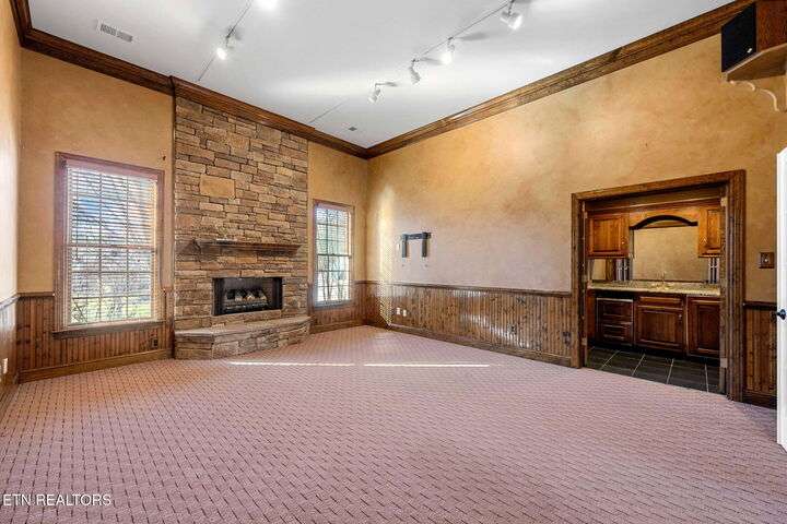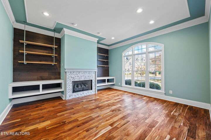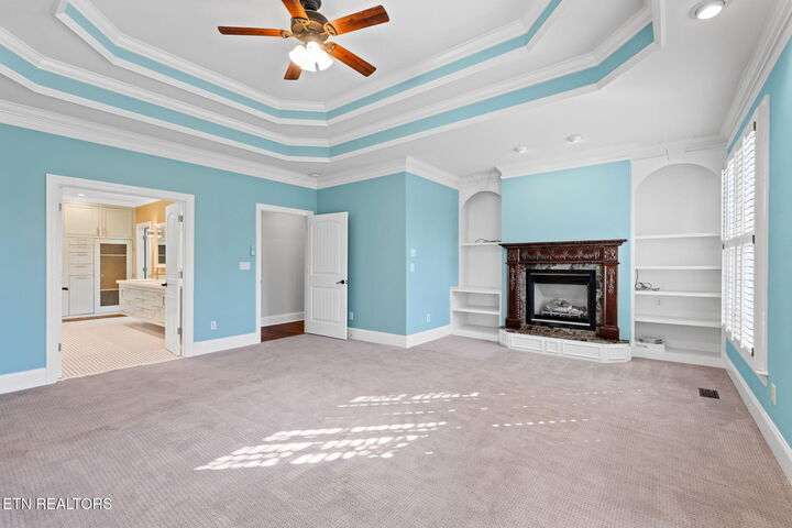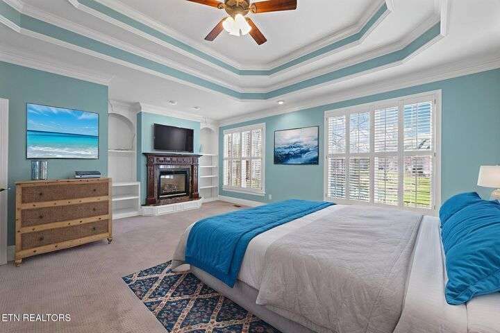 Welcome to luxury living in the desirable Ramsgate neighborhood. This exceptional custom-built home (formerly custom builder, Dexter Whites personal residence) offers elegance, space and serenity. You will be immediately wowed upon entering the homes grand entrance that allows for an open floorplan with an office equipped with its own fireplace, formal dining area, living room and a custom gourmet kitchen with a 6 burner-gas range and griddle. Also, on the main level you will find the primary suite equipped with double coffered ceilings, an antique fireplace, soaker tub, walk in shower and expansive custom closet. Upstairs you will find another suite with 2 additional guest rooms sharing a jack and jill ensuite. That is not all, there is a great room with the homes 4th stone stacked fireplace and mini-bar and down the hall, a media room wired for surround sound. For the colder Tennessee days, you can enjoy your fountain lake view from the comfort of your 4-season room and on the days, you want to enjoy the fresh air, step out to your paver patio with a partially covered awning and gas hookup for your outdoor kitchen or grill. Other customizations of the home include- easily accessible attic storage, UV tinted windows for energy efficiency, an automatic lift for the chandelier for cleaning and an assumable VA Loan option. Contact your luxury agent to schedule your showing today!