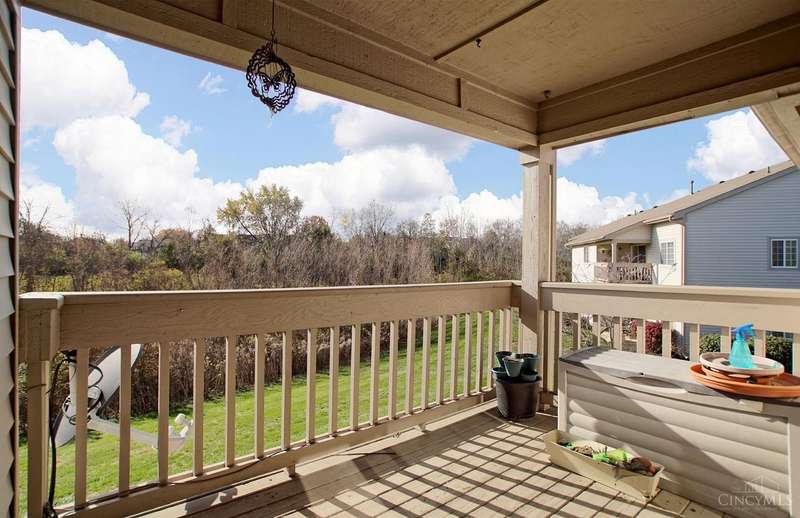 Three bedroom Condo Within Walking Distance to the Heart of Mason! Open floor plan! Spacious Bedrooms! Large Great Room with Cathedral Ceiling & Gas Fireplace & Walkout to the Balcony Overlooking the Woods Behind! Vaulted Dining Room! Great kitchen with Lots of Wood cabinets! Vaulted Primary Suite with 2 Walk-in Closets! All Appliances Stay! Attached Oversized 1 car Garage! Pool & Tennis Community! Trash included in HOA!