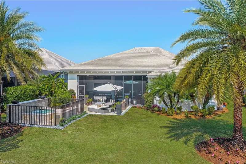 Discover your slice of paradise within the Isles of Collier Preserve. This stunning 3-bedroom, 3-bathroom, and den home boasts the award-winning Jasmine Grande floor plan. Meticulously maintained and equipped with top-notch upgrades, it seamlessly blends elegance with comfort. As you step inside, you re greeted by soaring ceilings and an open floor plan. The 10 pocketing impact sliding doors and pocketing kitchen window create a seamless transition between indoor and outdoor living. The dream kitchen is a culinary enthusiast s haven, featuring a Wolf gas cooktop, a Sub-Zero refrigerator, and a spacious island perfect for meal prep and entertaining. Luxury features and upgrades abound throughout the home, including rich oak wood flooring, ceramic tile in the bathrooms, plantation shutters, crown molding, and electric Storm Smart shutters for ultimate protection. The hip roof design and transferable flood insurance provide peace of mind. Step outside to the screened lanai, which offe