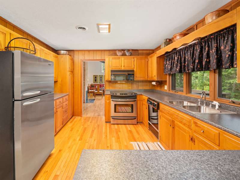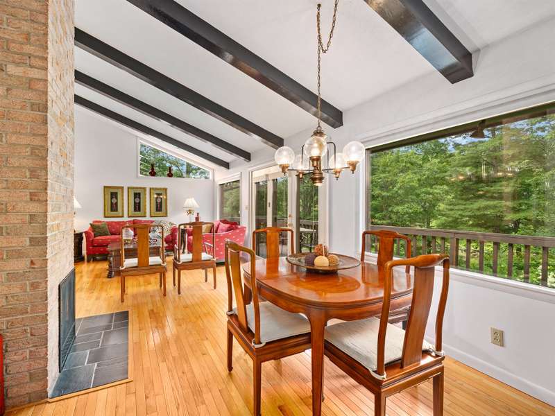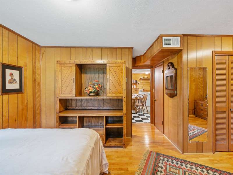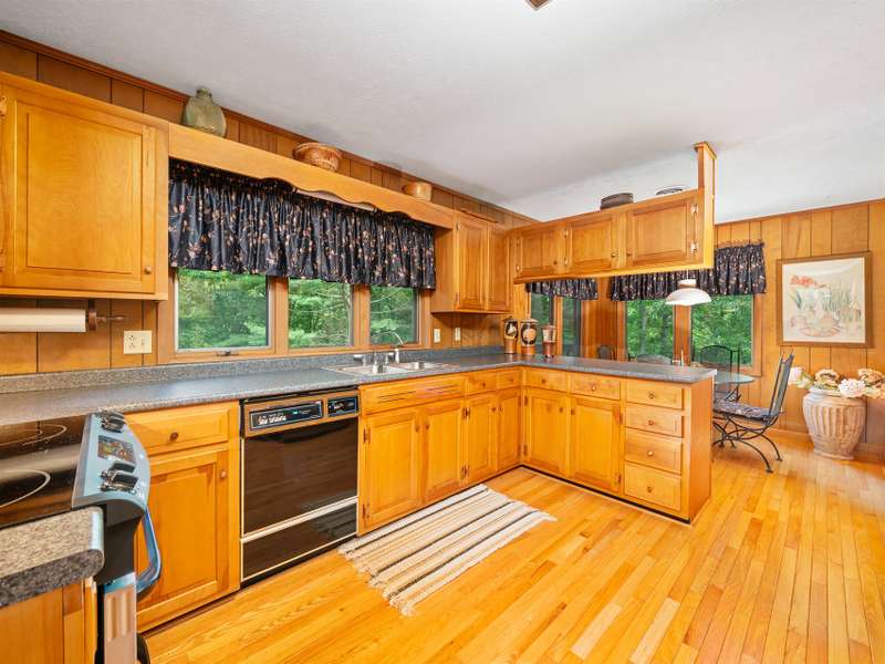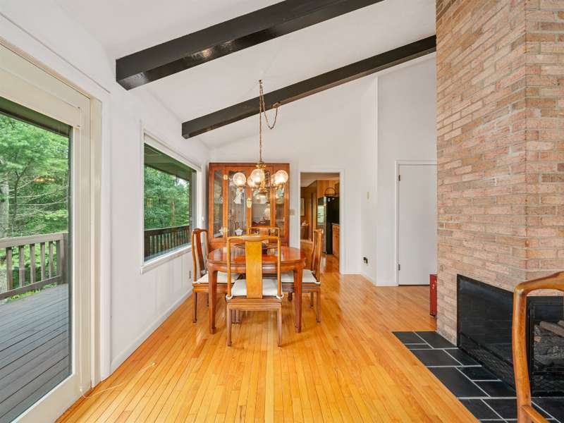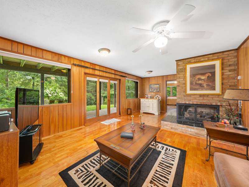 Private Setting! Minutes from Burnsville, Spruce Pine or Bakersville!! This beautiful, well maintained Mid Century home is perfect for one level living with a second living area on the ground level. Ease in and out is provided by the paved level driveway and carport. The main level has hardwood floors throughout in pristine condition. The kitchen is spacious with wood cabinets and a breakfast dining area. The living room and dining room has a beautiful brick fireplace with gas logs and large windows, flooding the home with light. Two spacious bedrooms and a full bath on the main level are convenient, but if more room is needed, there's plenty more downstairs. Outfitted for a separate living quarters, the basement level has its own exterior and interior entrance, kitchen, den with fireplace and gas logs, bedrooms, a large bedroom and a bathroom. The roof with architectural shingles was installed in 2022 and the original windows and doors have been replaced with Andersen.