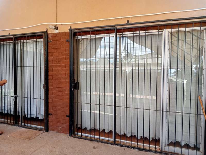 This sturdy house has 3 bedrooms with 2 x bathrooms. The Kitchen has separate laundry area. A large lounge, dining room and lapa with built-in braai ensures relaxing living. The property has two flats. There is an apartment attached to the house as well as an additional apartment on the property. This property offers the opportunity for rental income as it has two flats. Rental income for these is in the R 8000 – R 10000 per month. For security purposes the home has burglar proof and is fenced off with devils fork fencing. This property is in near proximity of the business hub and location offers opportunity to be used as business property, for clinic or practice for doctors should buyer rezone the site. The property has a borehole which is fitted with a pump and provides water to the garden. Pre-approval is essential before viewing.